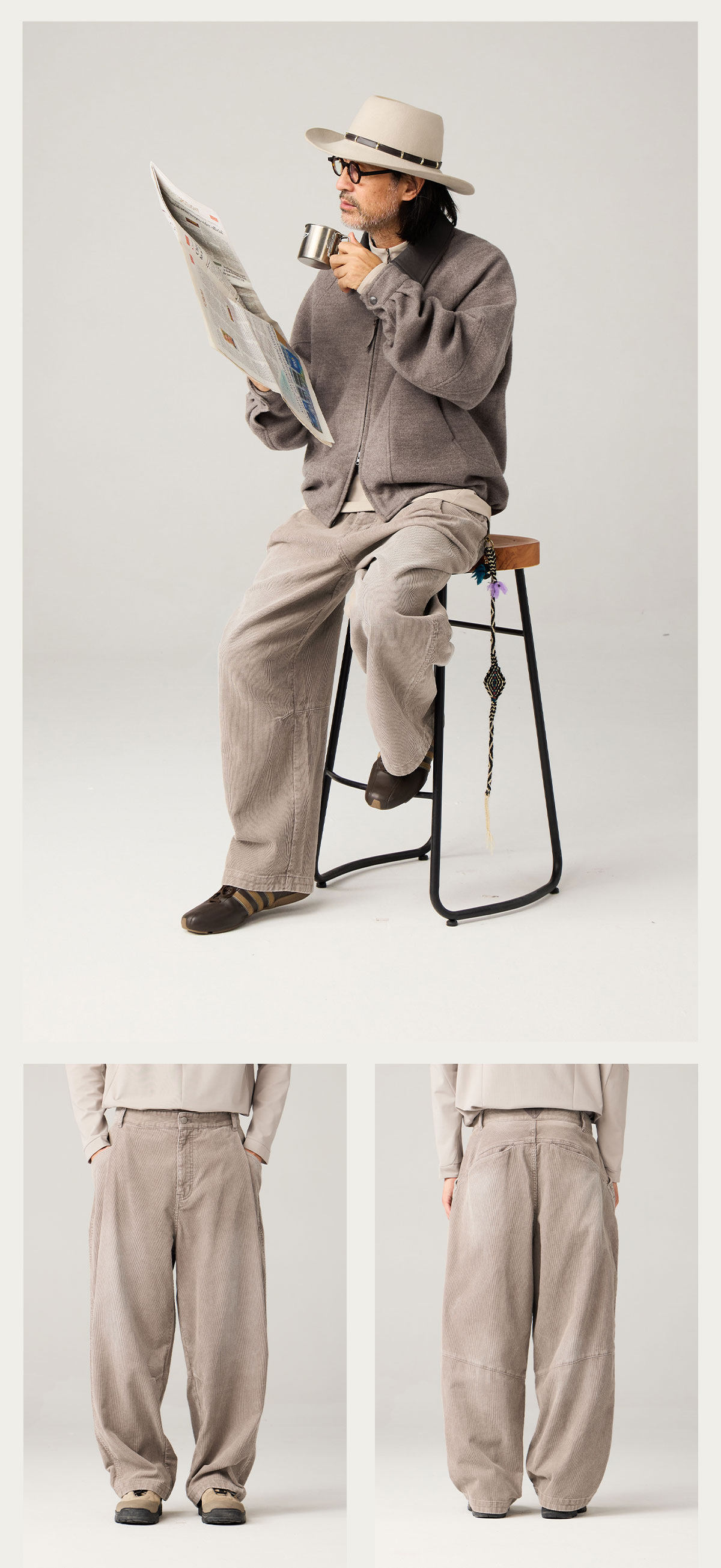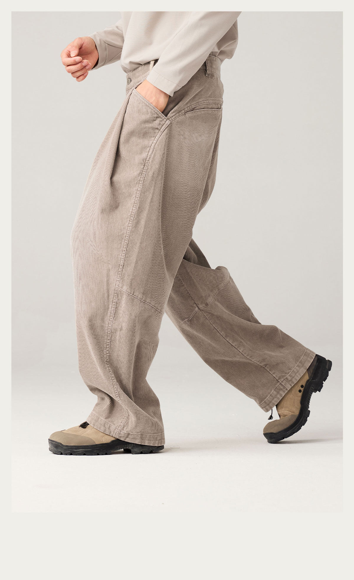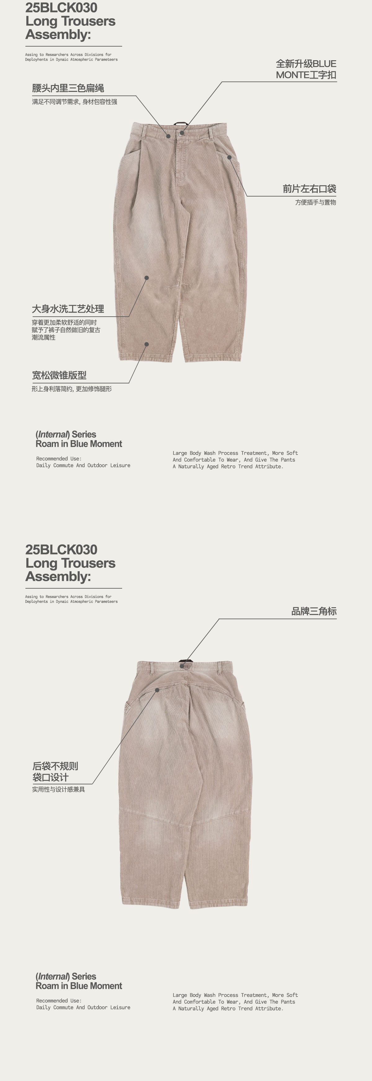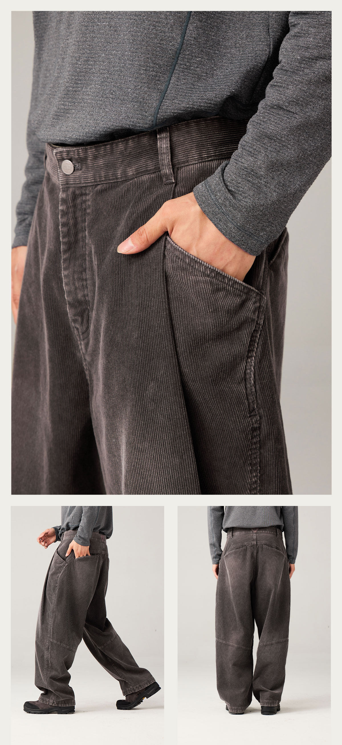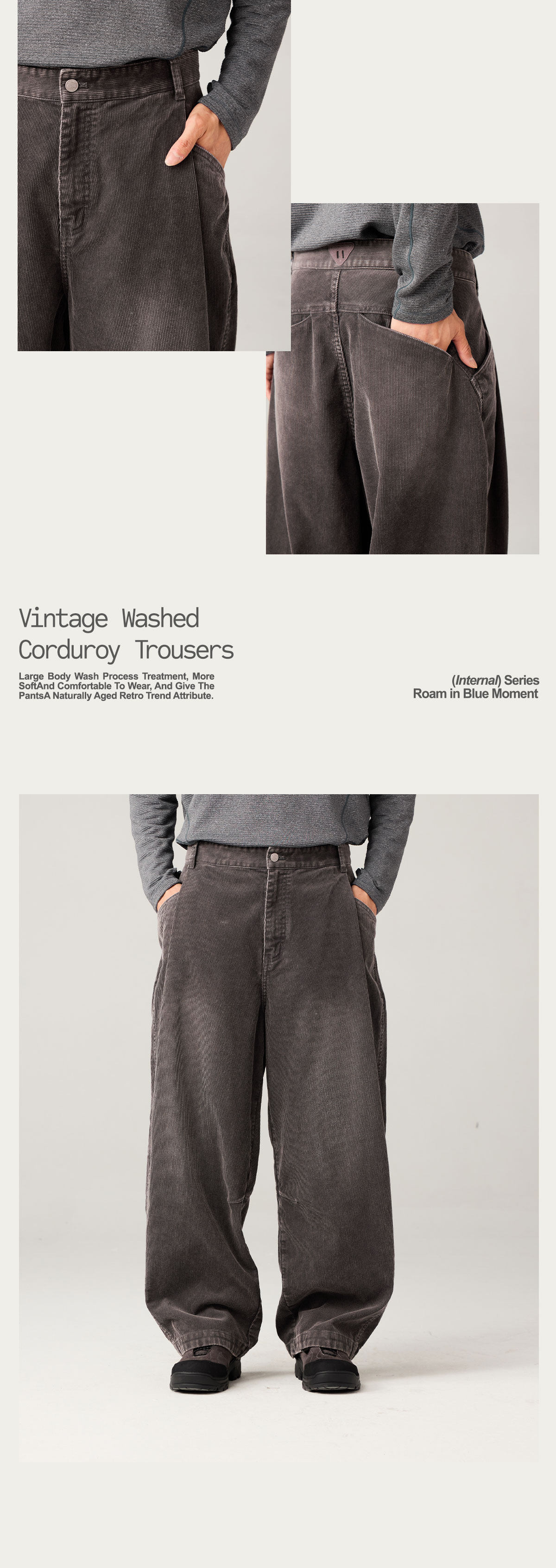Lanqi Retro Trendy Washed Vintage Corduroy Pants Autumn and Winter New Irregular Pocket Loose Tapered Pants for Men