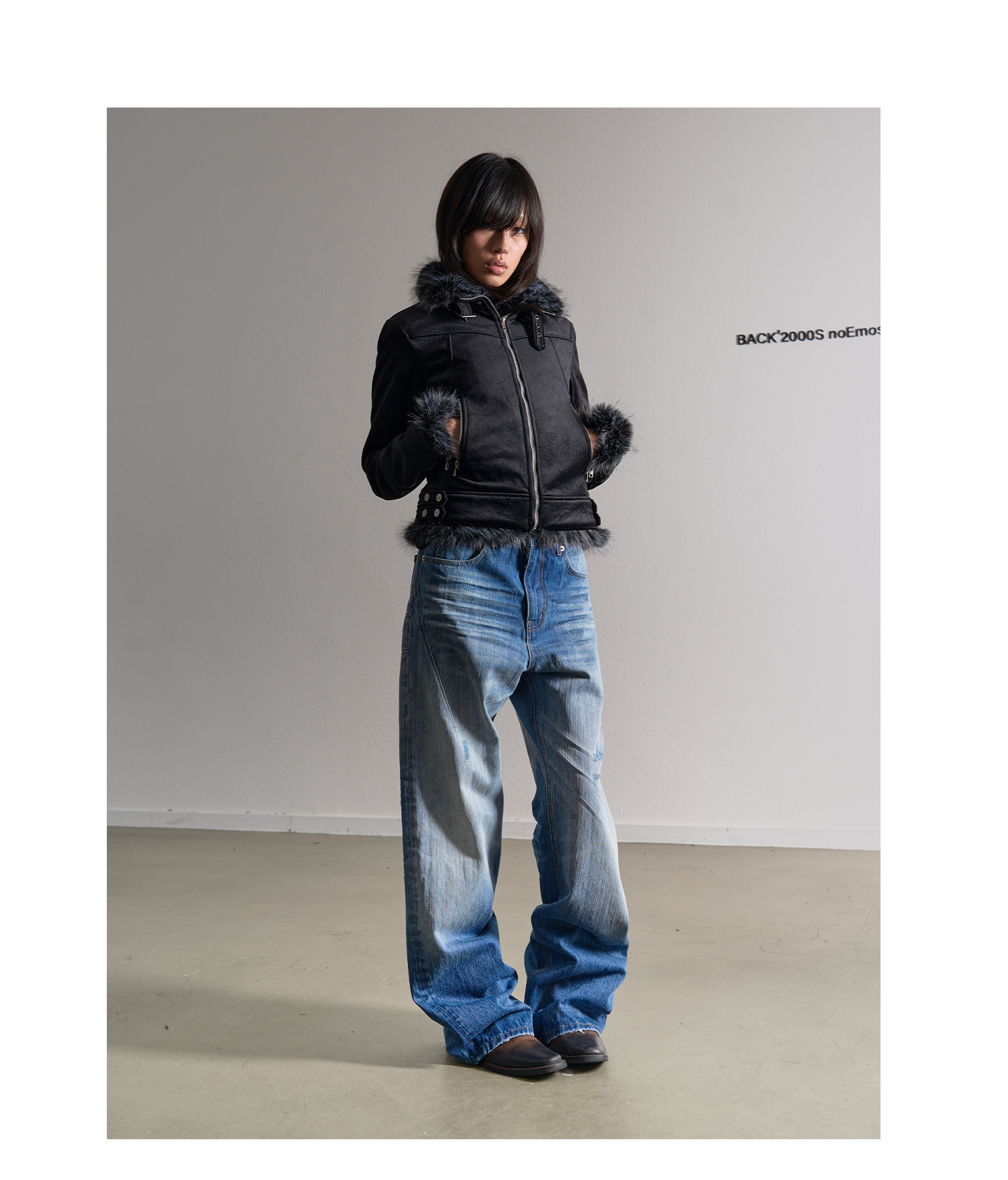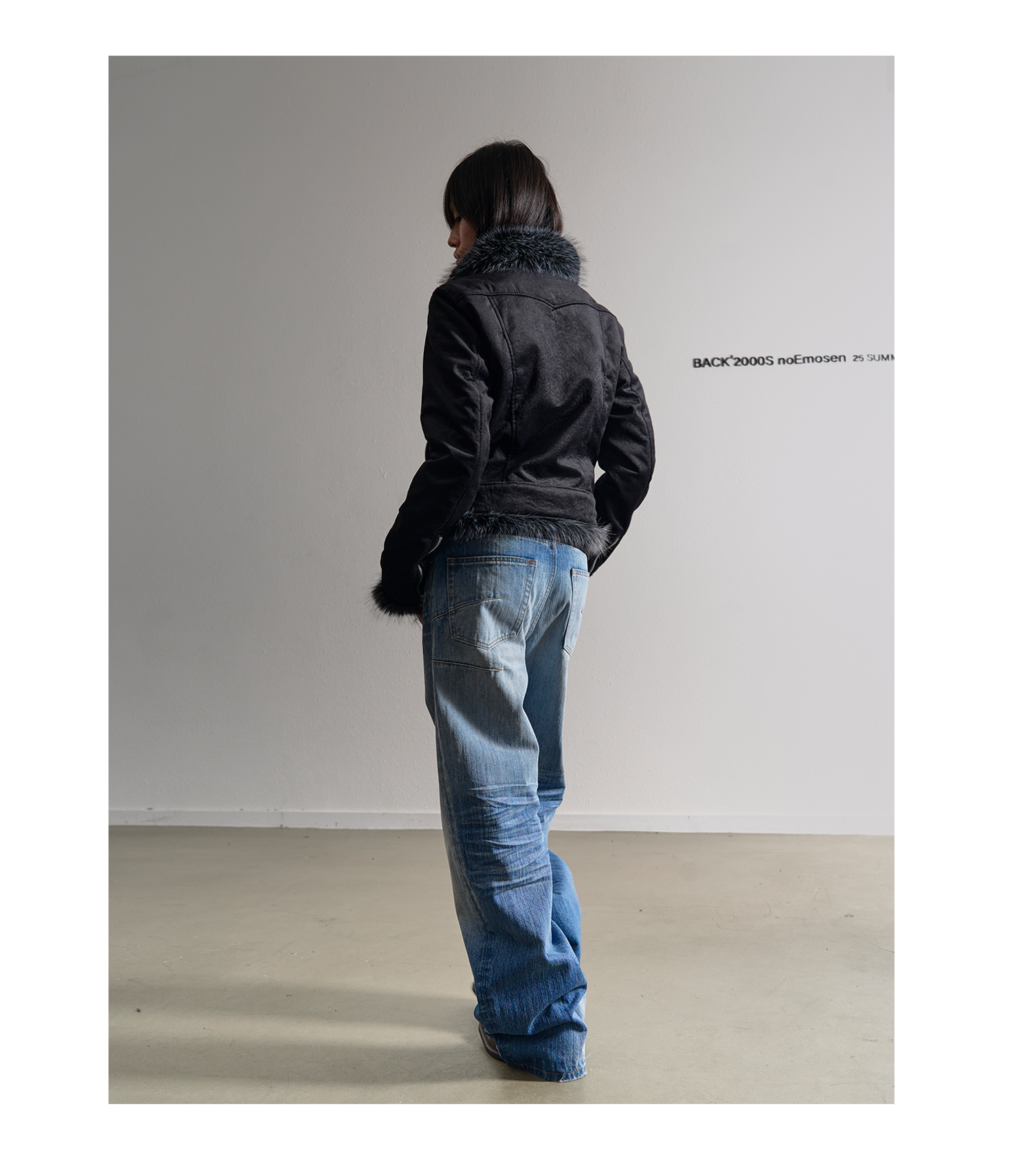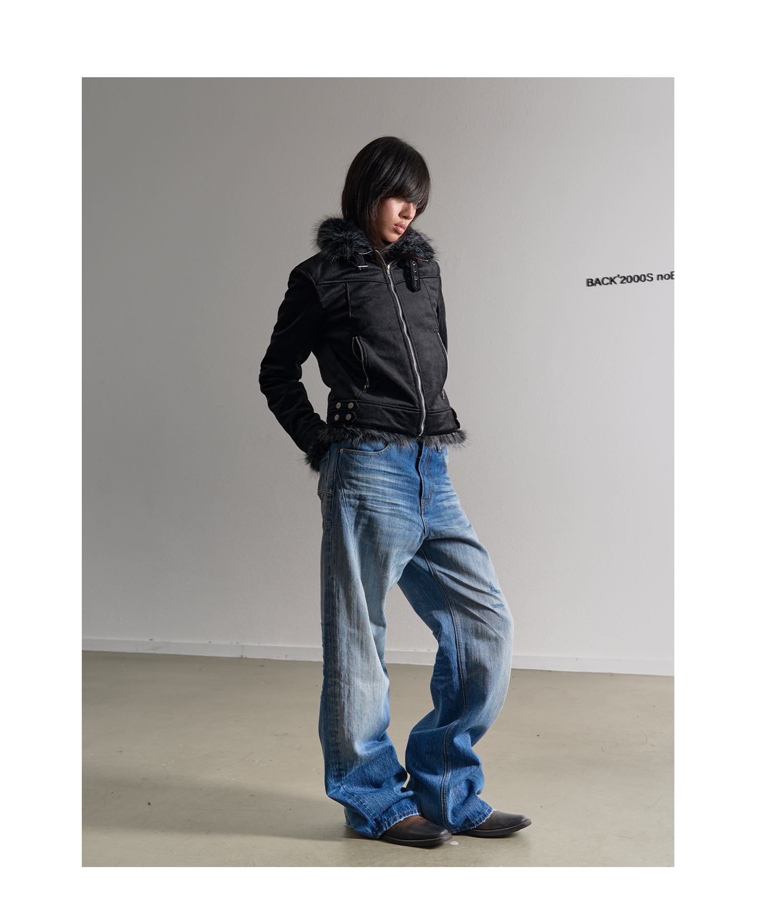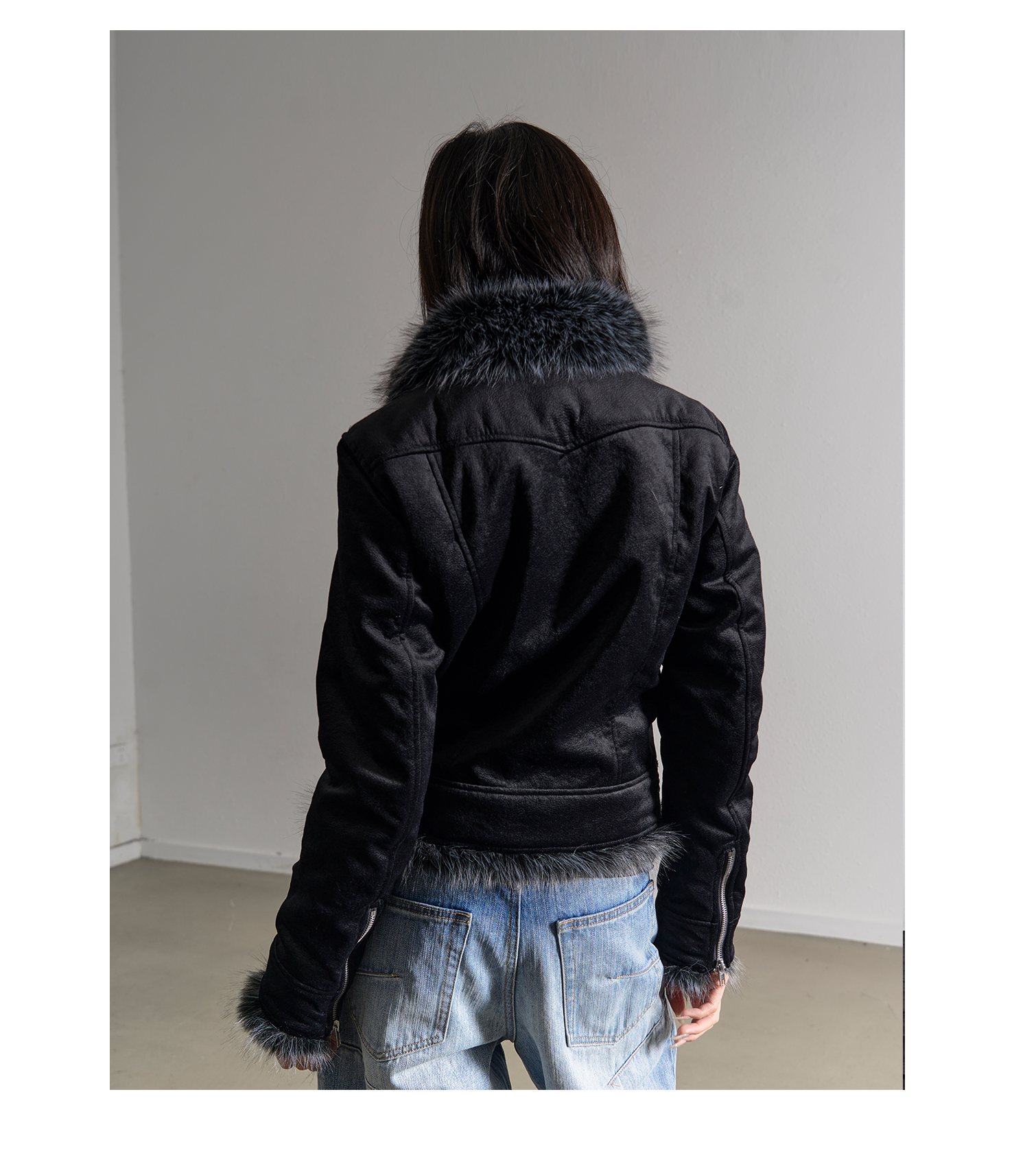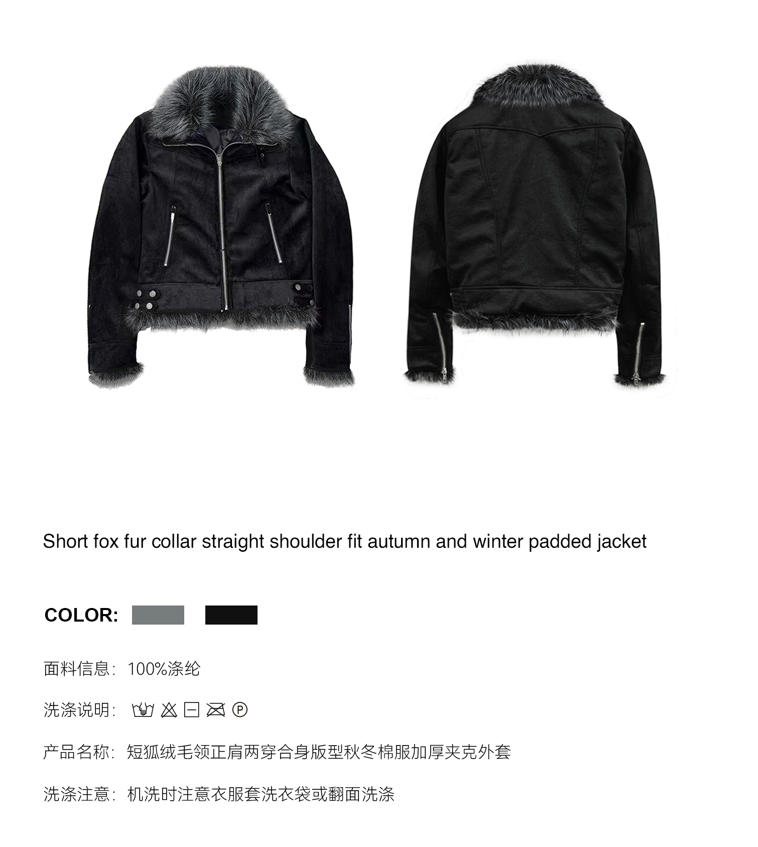 Noemosen(Noe) Short Fox Fur Collar, Convertible Shoulder Design, Fitted Fit, Autumn and Winter Cotton Padded Thickened Jacket