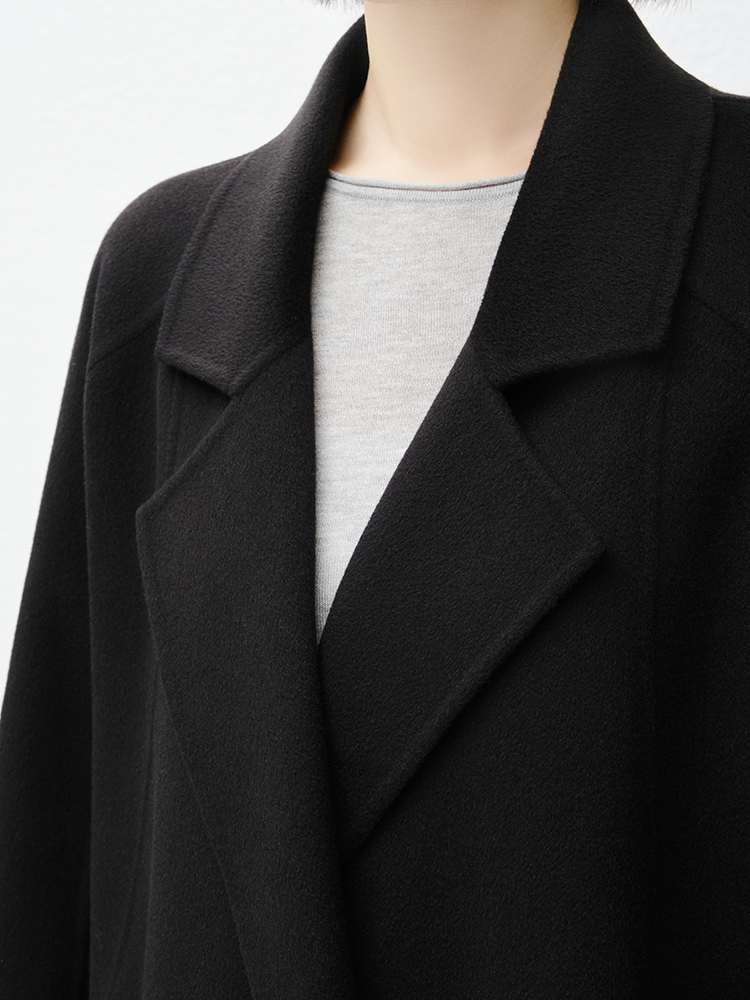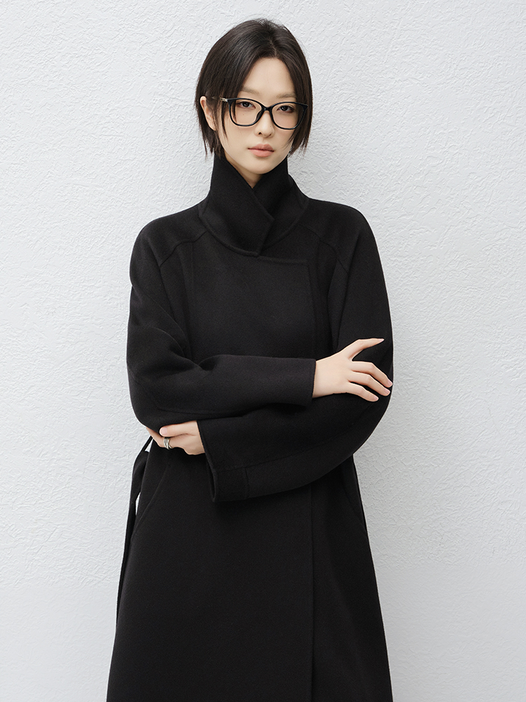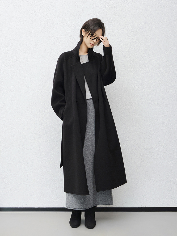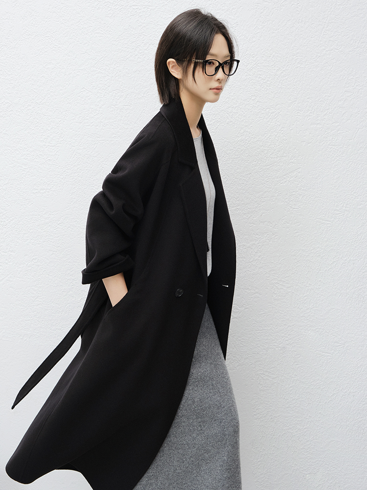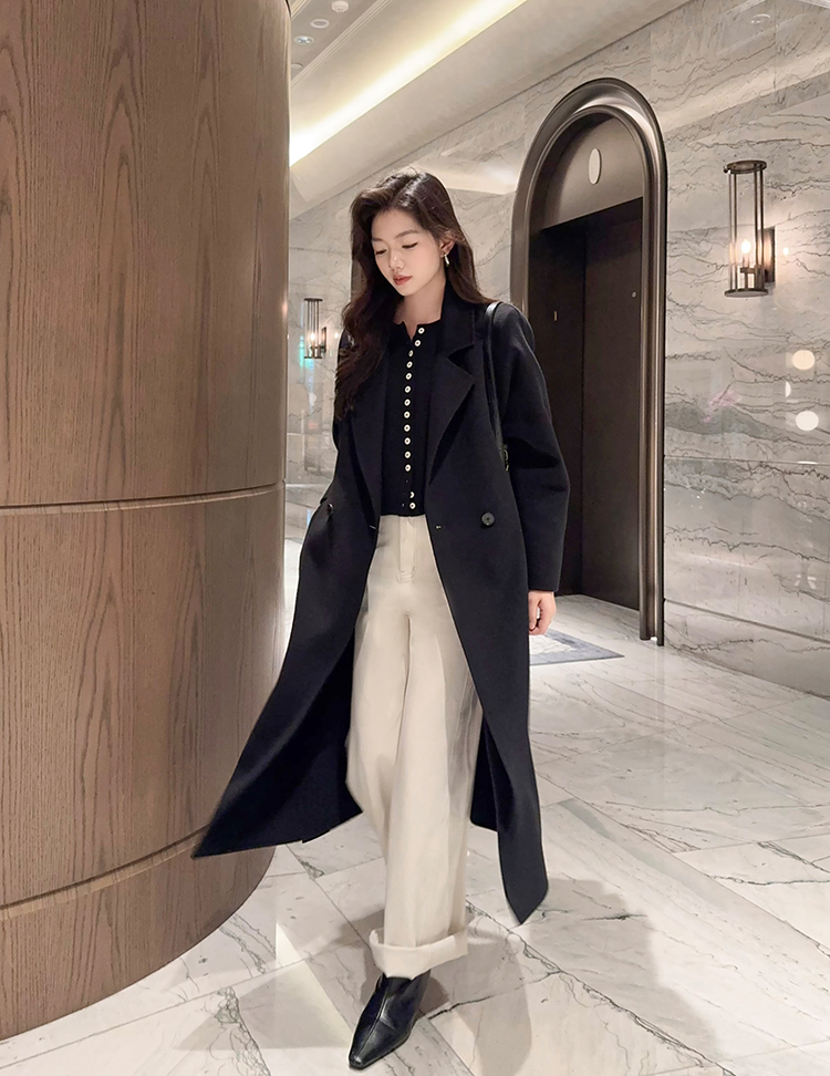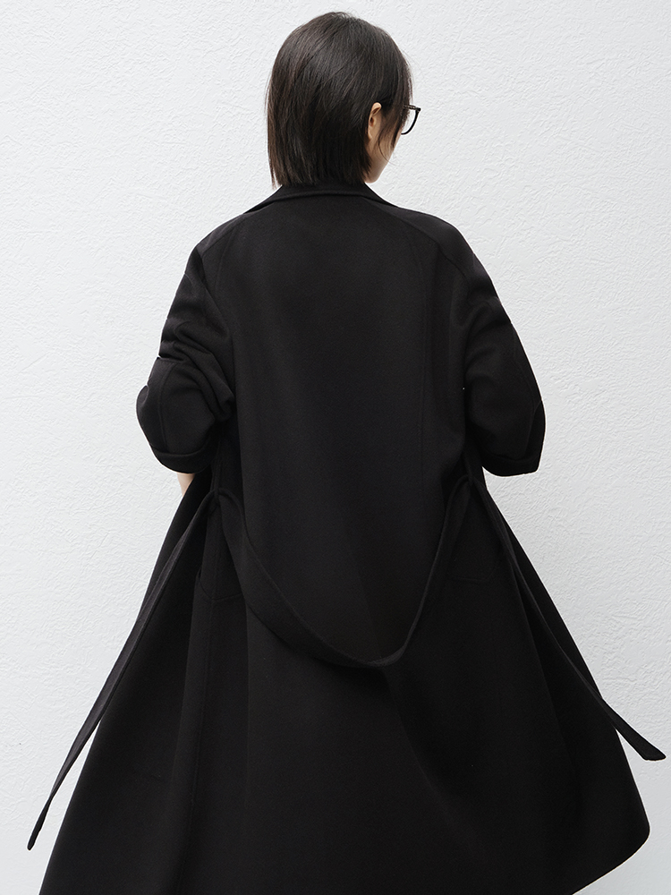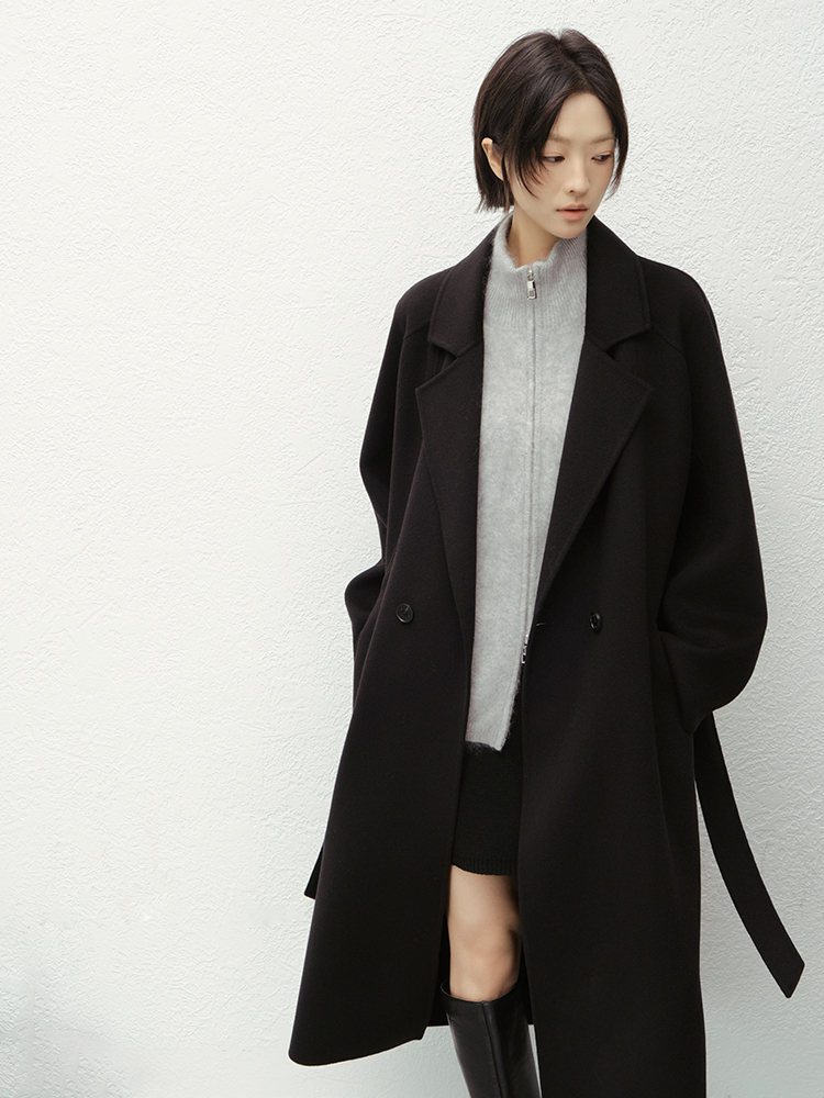 MEIYANG MEIYANG 10,002 full cashmere coat 110 + lapel round buckle belt woolen Outwear-Monday