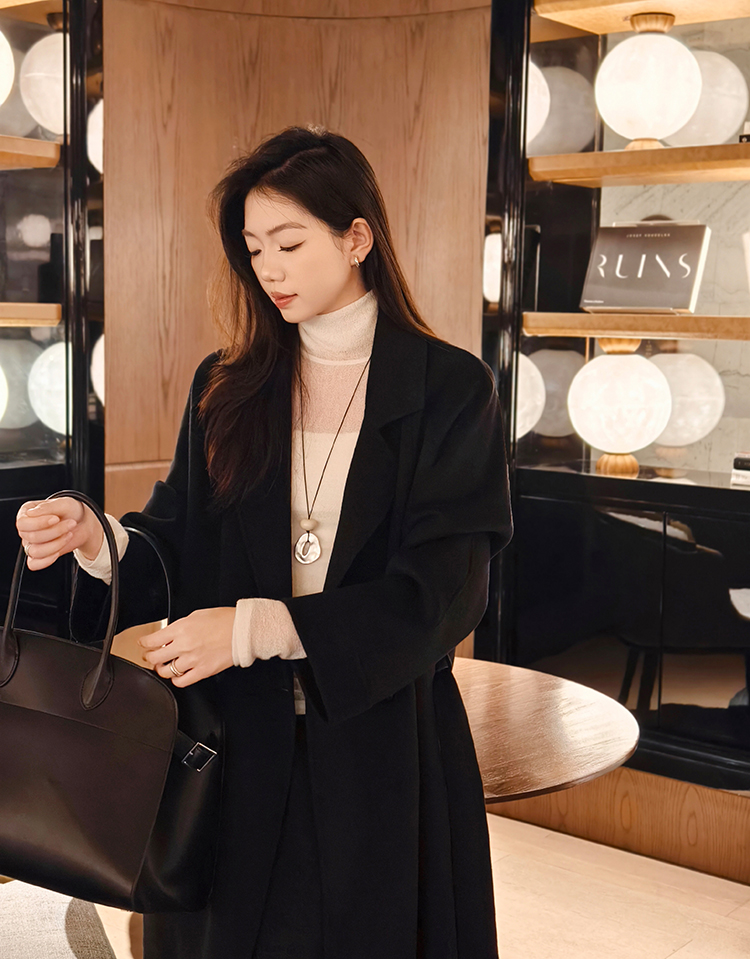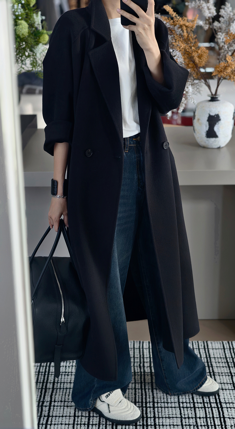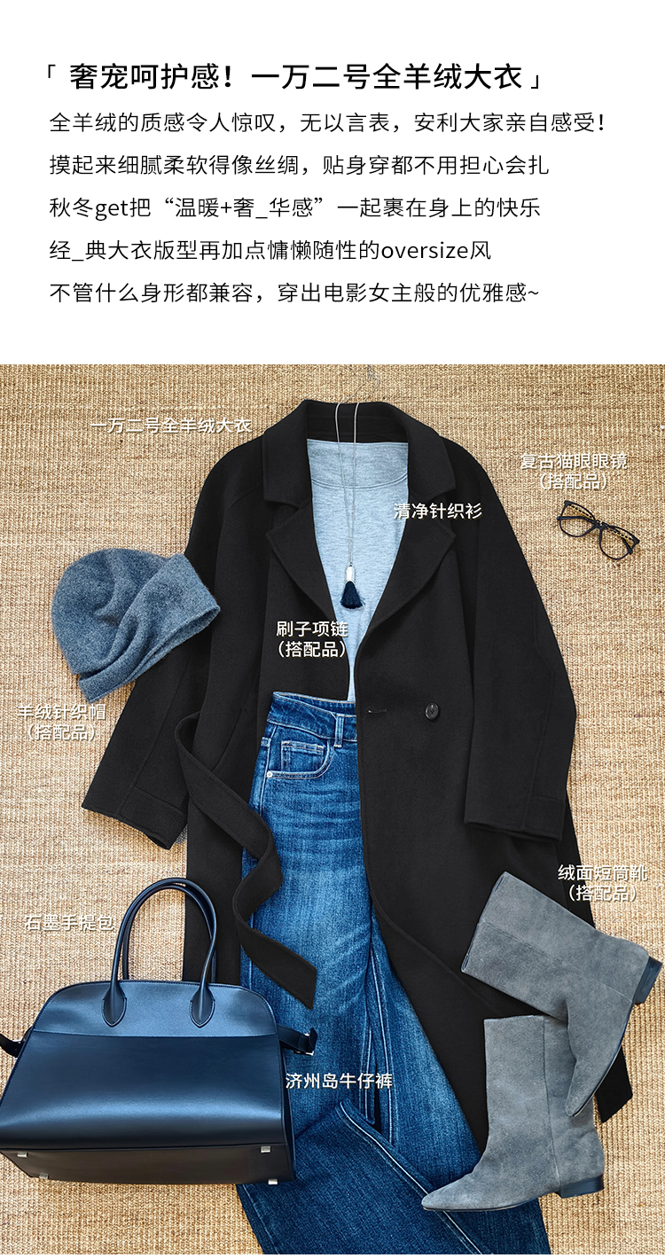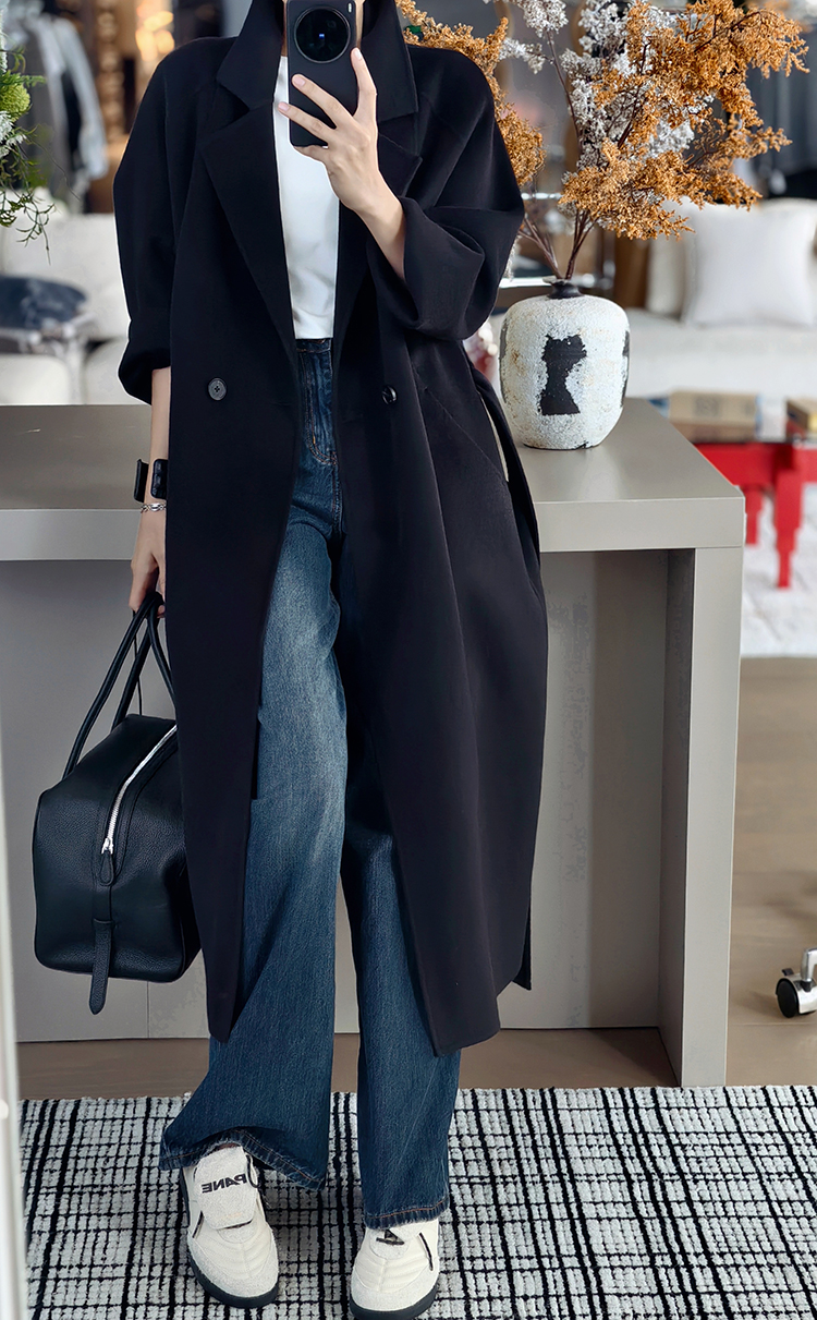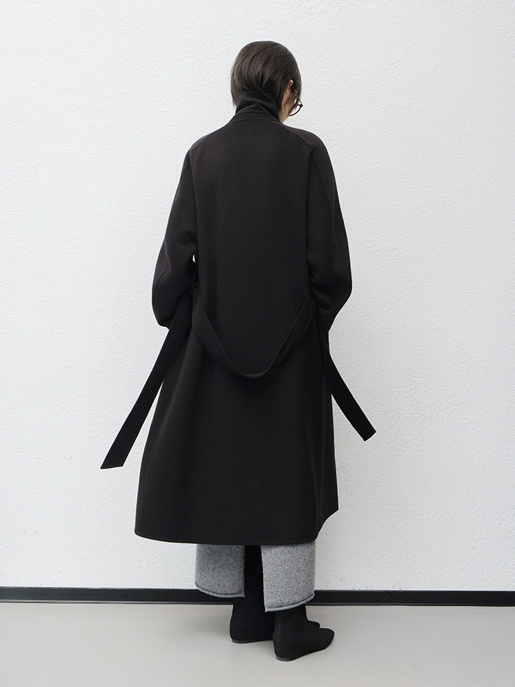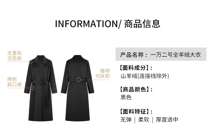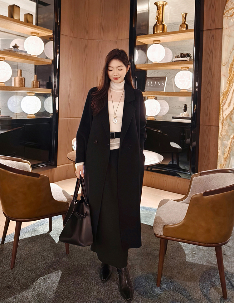 MEIYANG MEIYANG 10,002 full cashmere coat 110 + lapel round buckle belt woolen Outwear-Monday