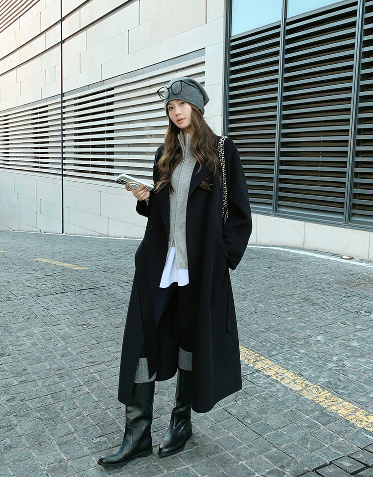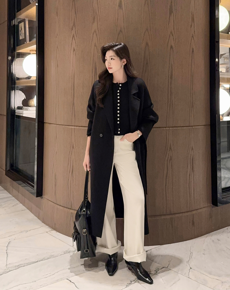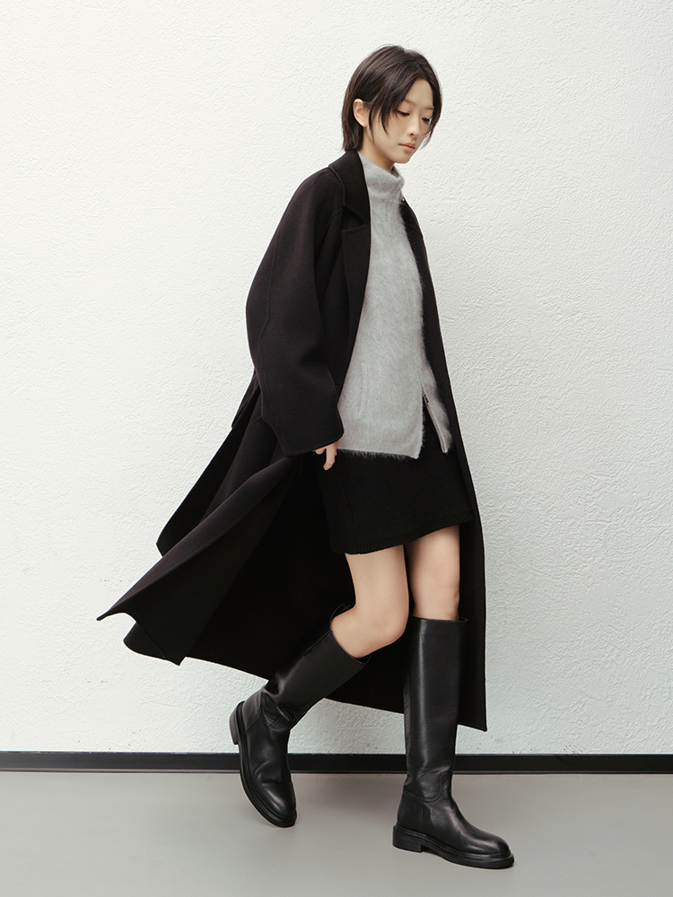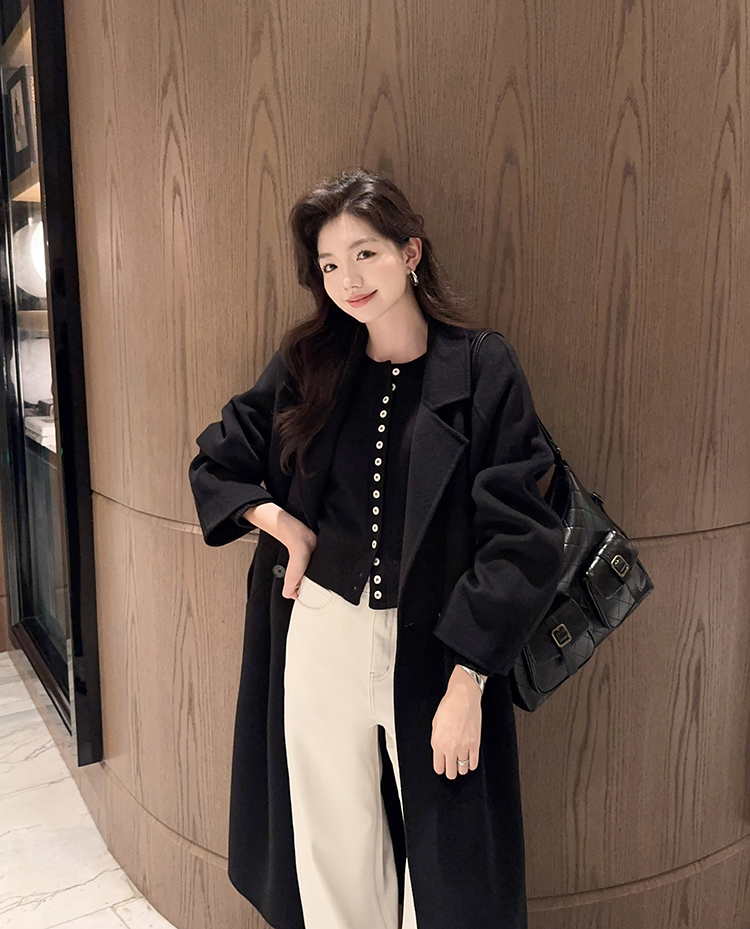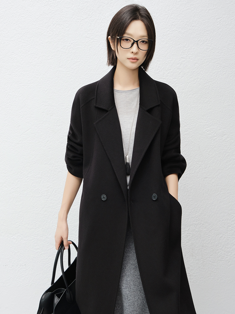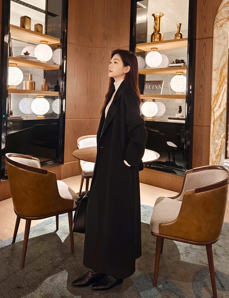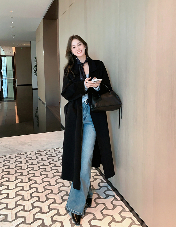 MEIYANG MEIYANG 10,002 full cashmere coat 110 + lapel round buckle belt woolen Outwear-Monday