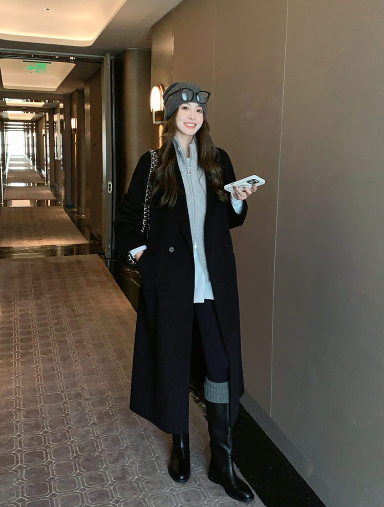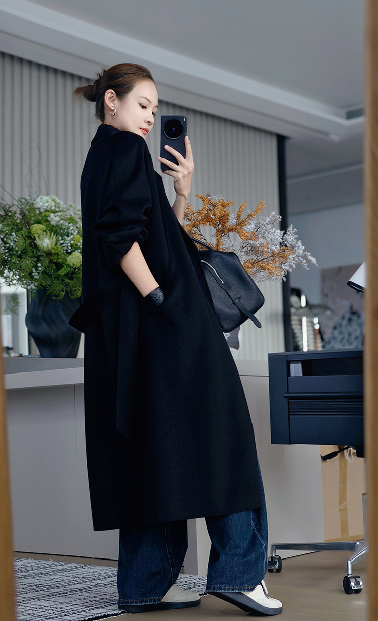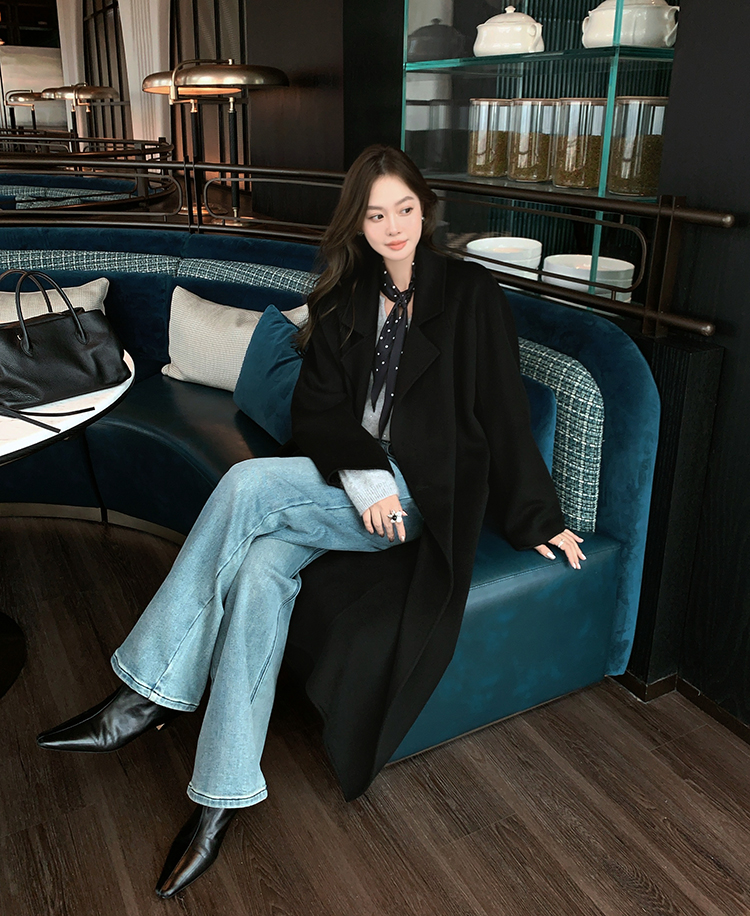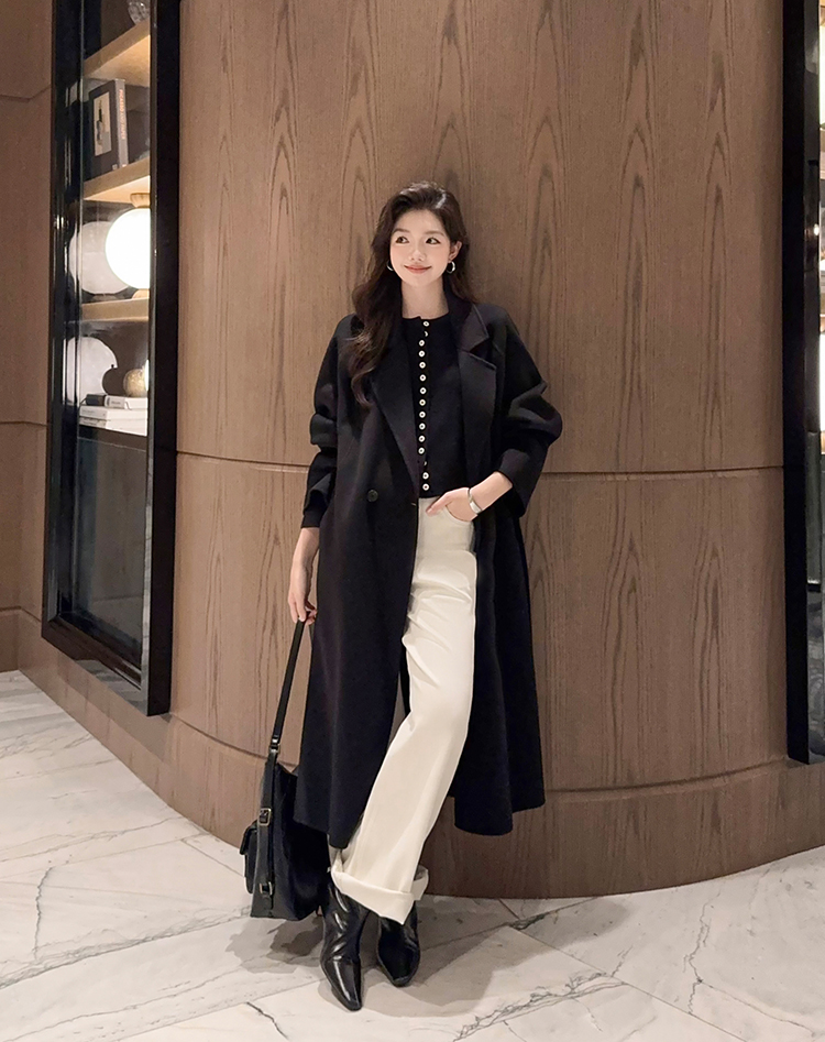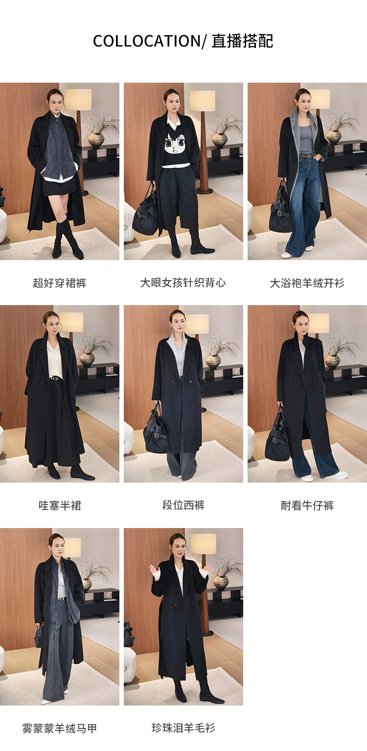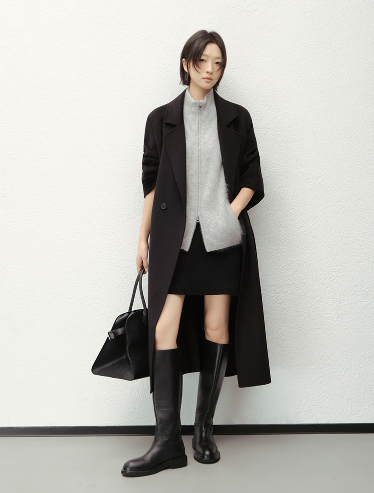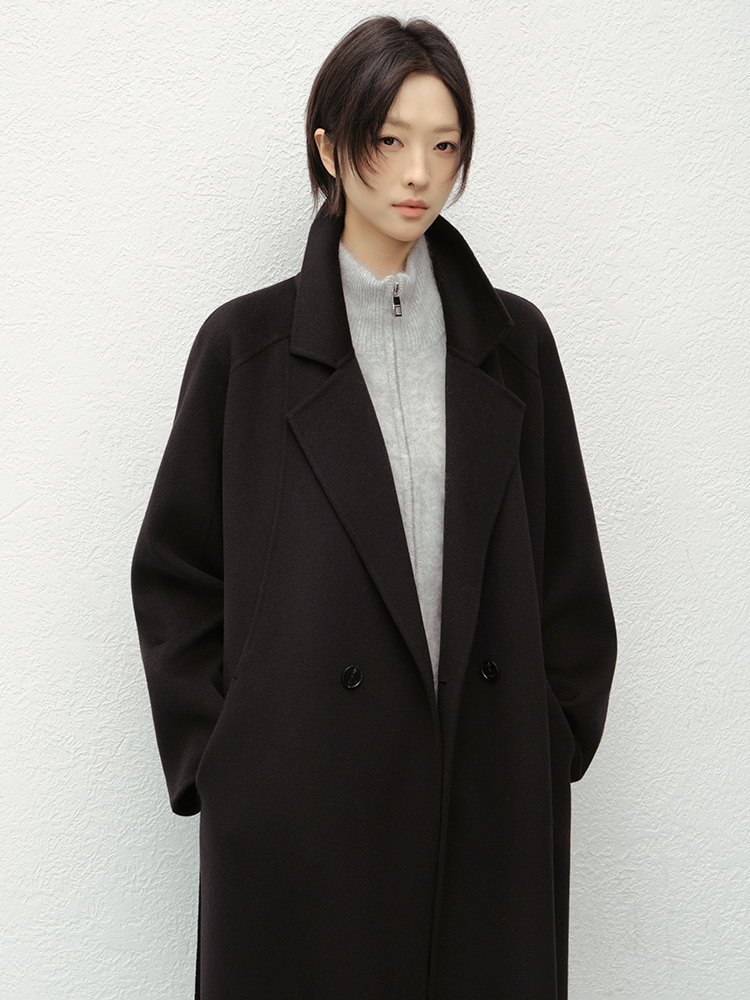 MEIYANG MEIYANG 10,002 full cashmere coat 110 + lapel round buckle belt woolen Outwear-Monday