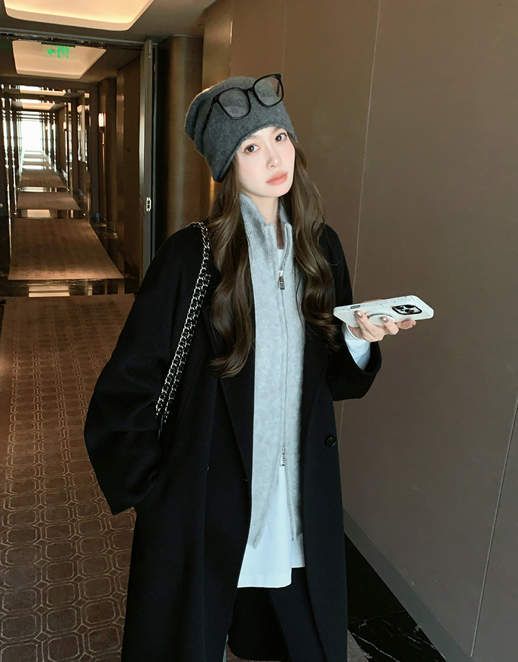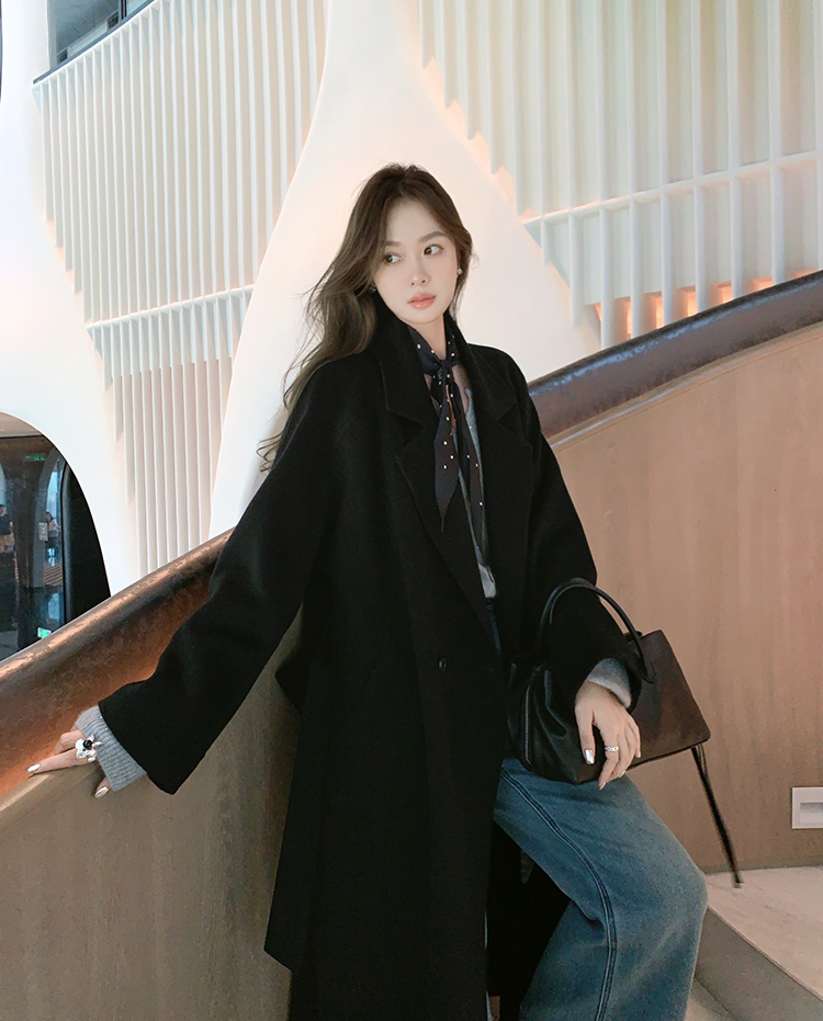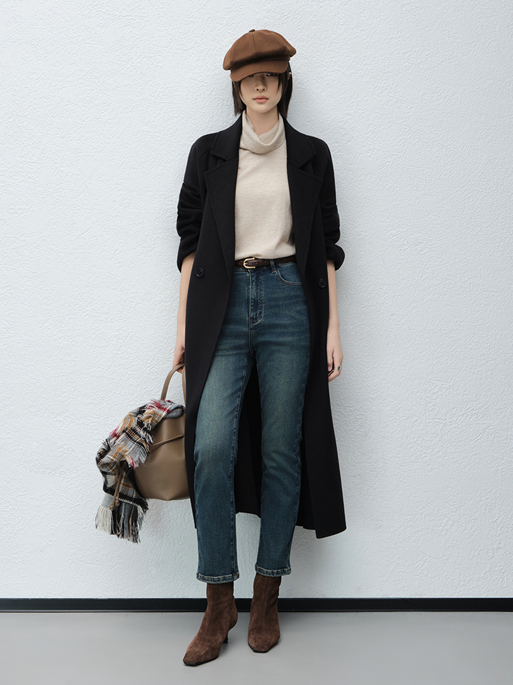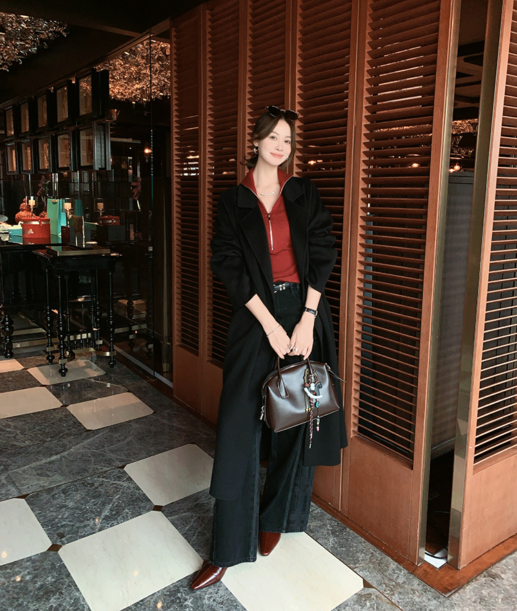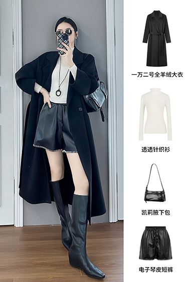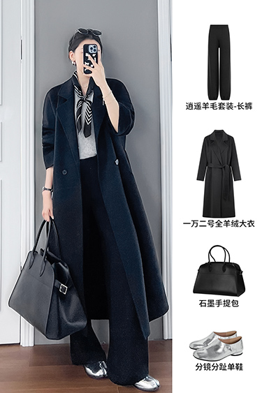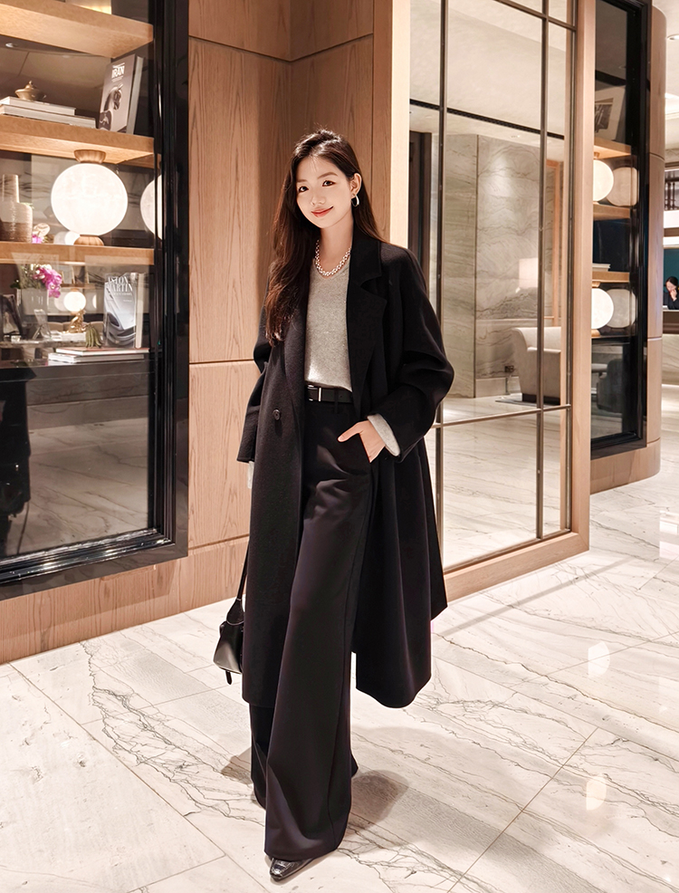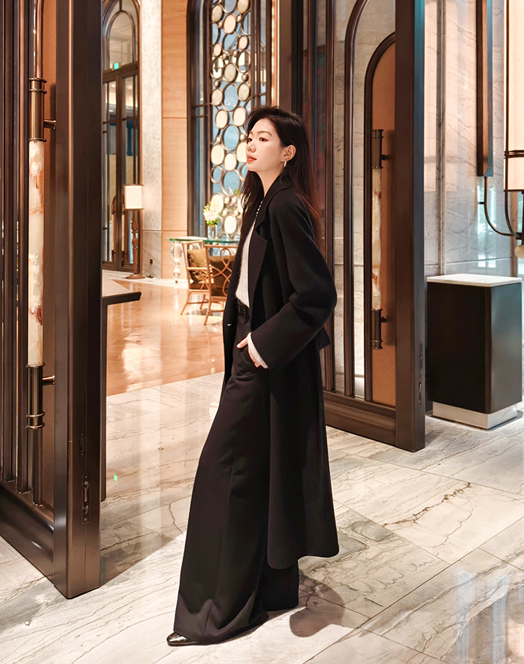 MEIYANG MEIYANG 10,002 full cashmere coat 110 + lapel round buckle belt woolen Outwear-Monday