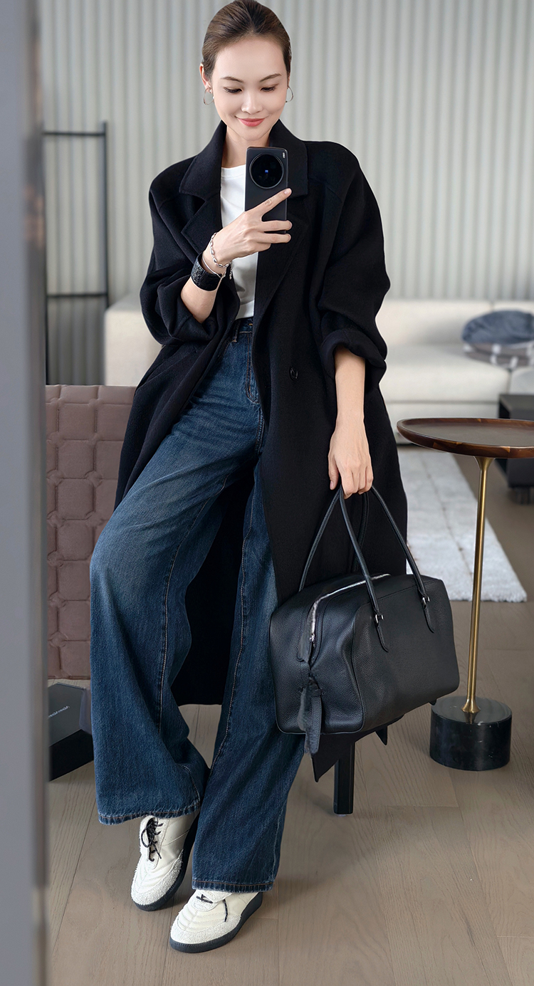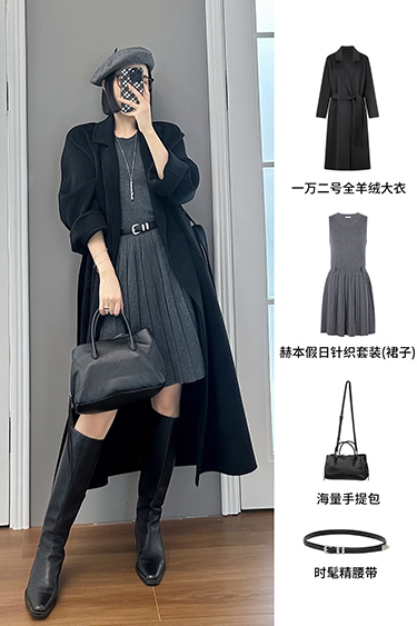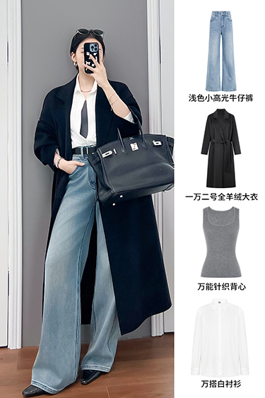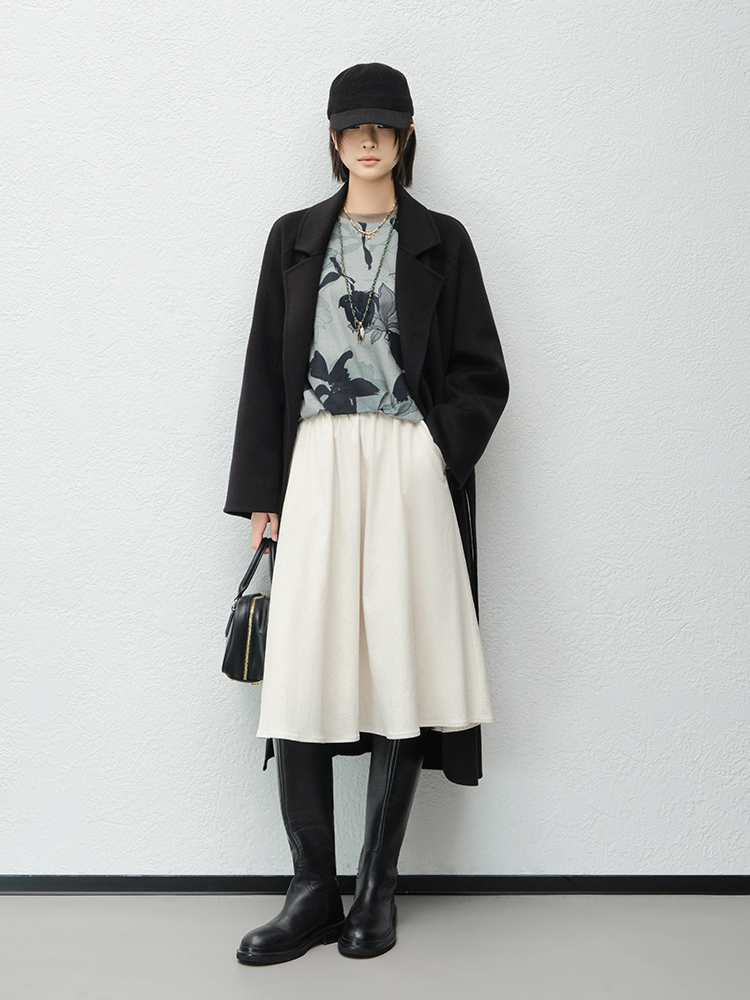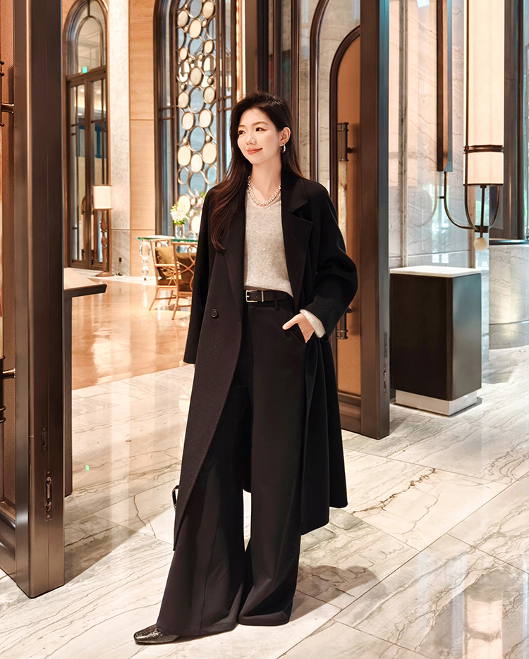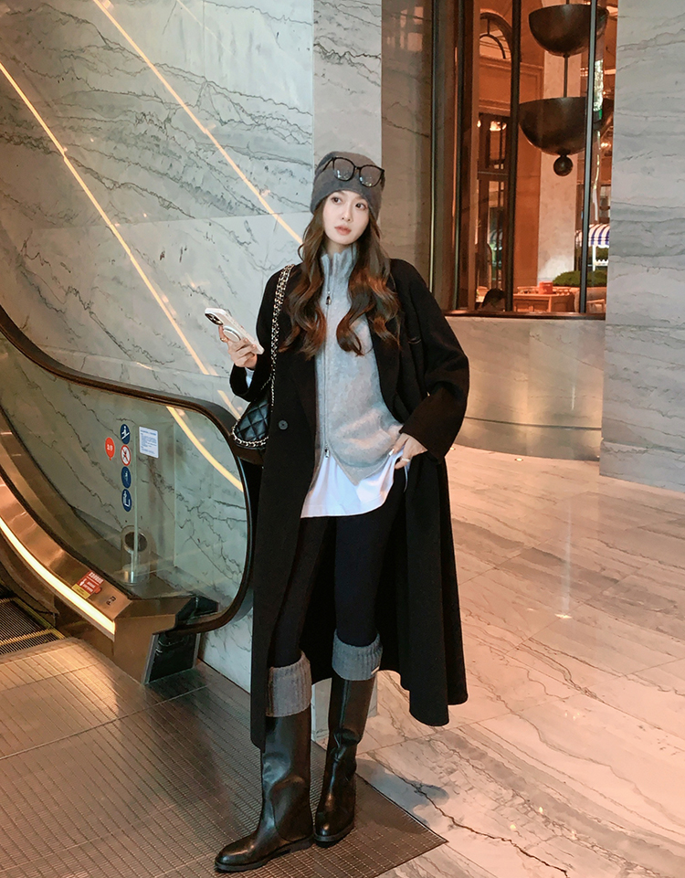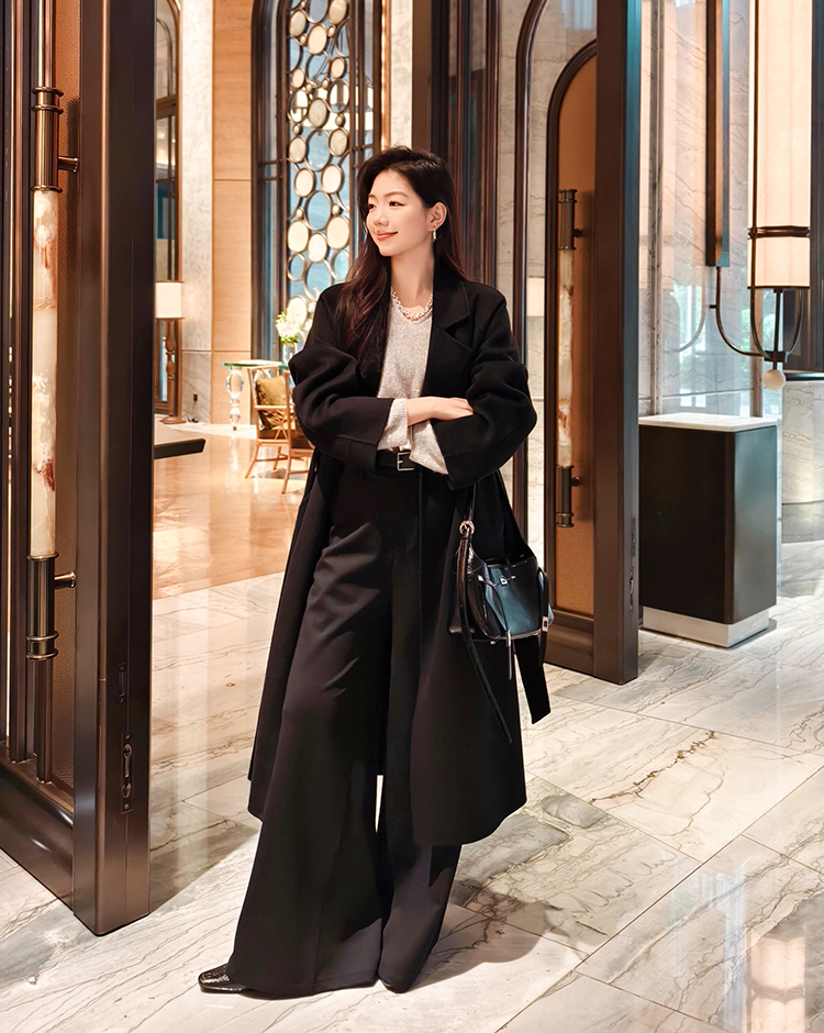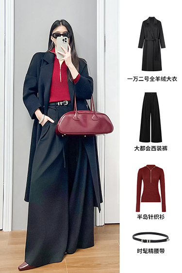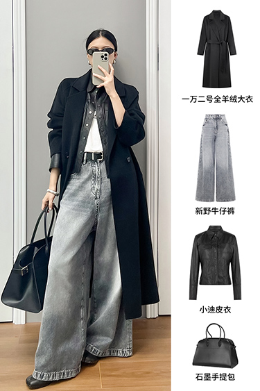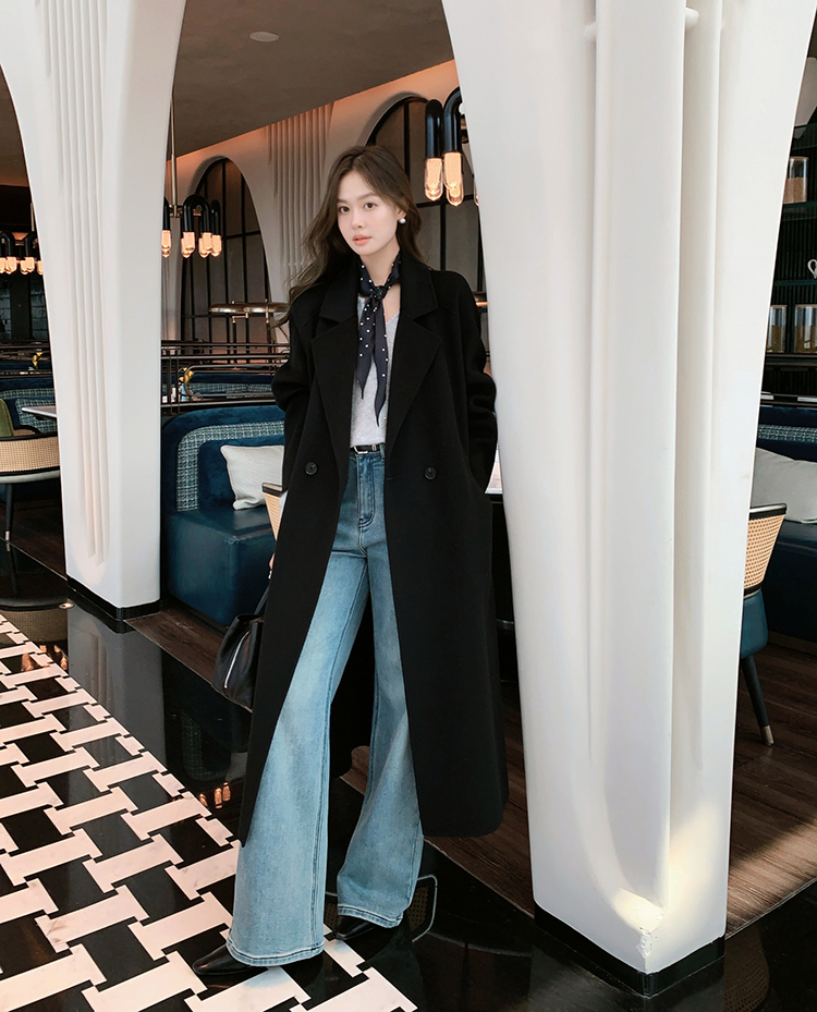 MEIYANG MEIYANG 10,002 full cashmere coat 110 + lapel round buckle belt woolen Outwear-Monday