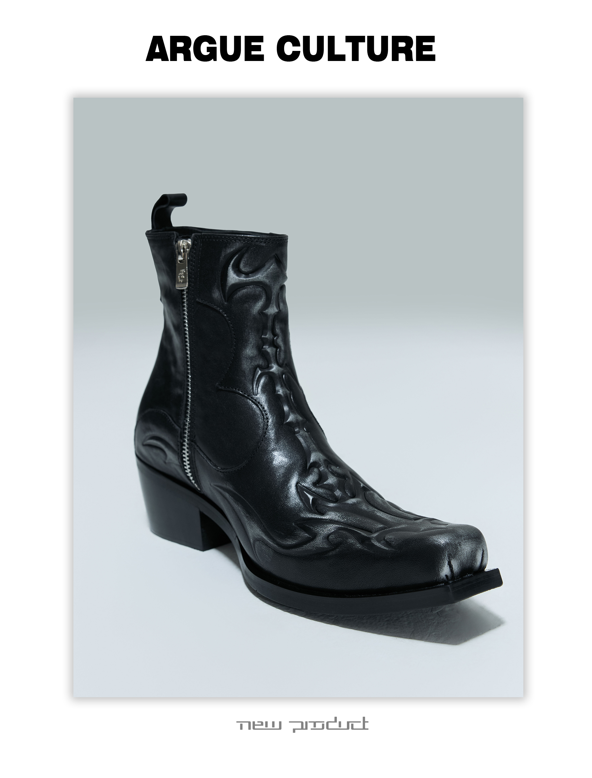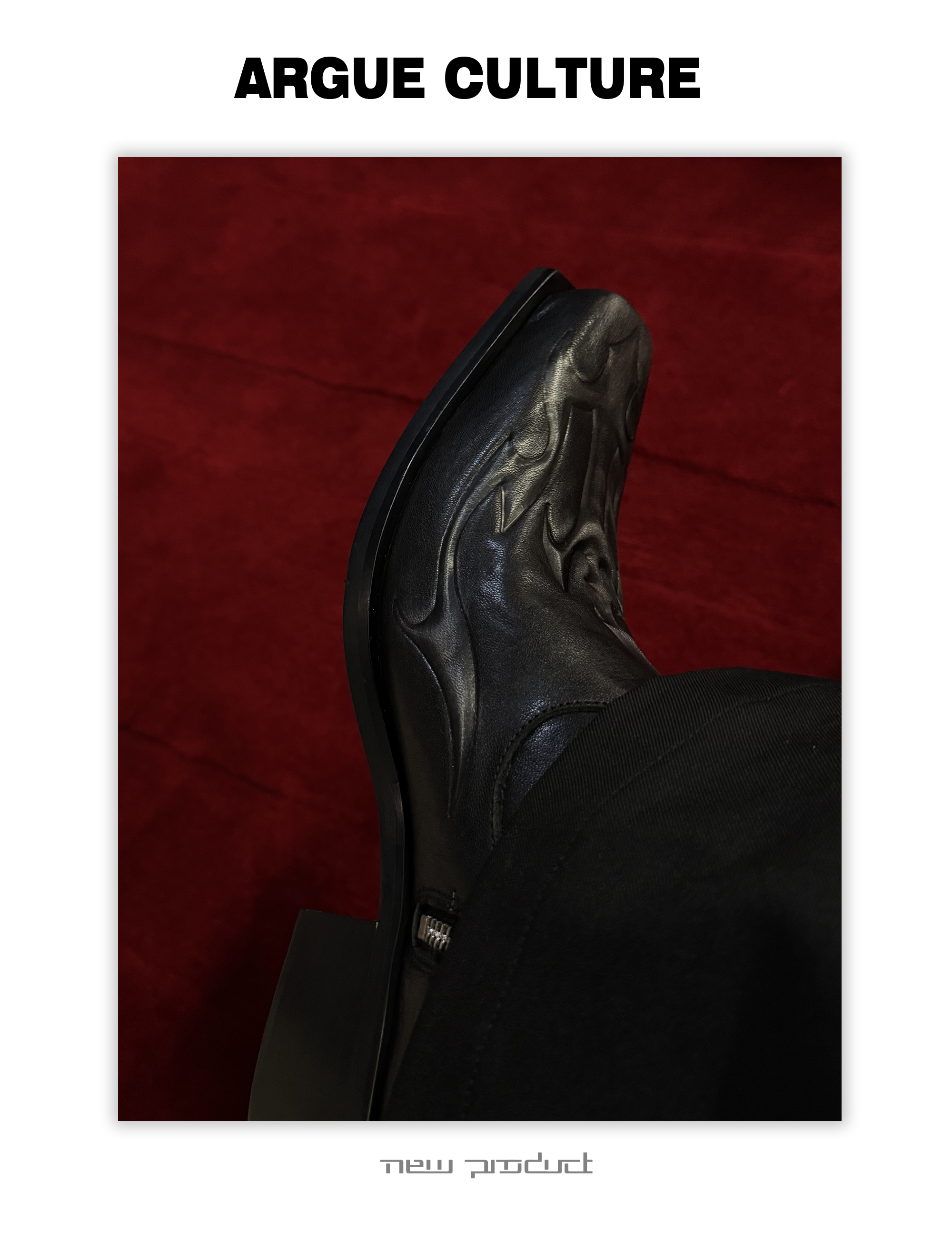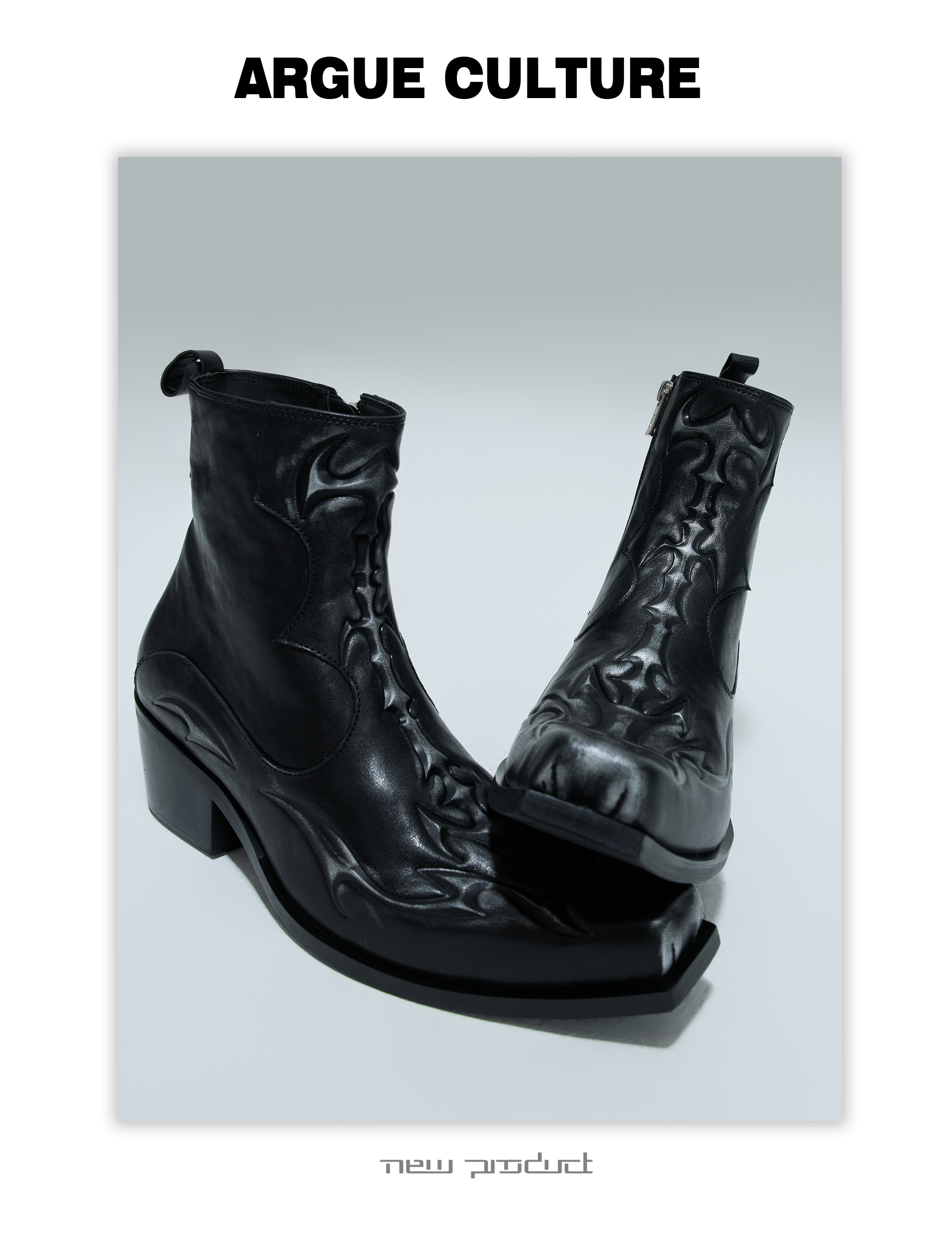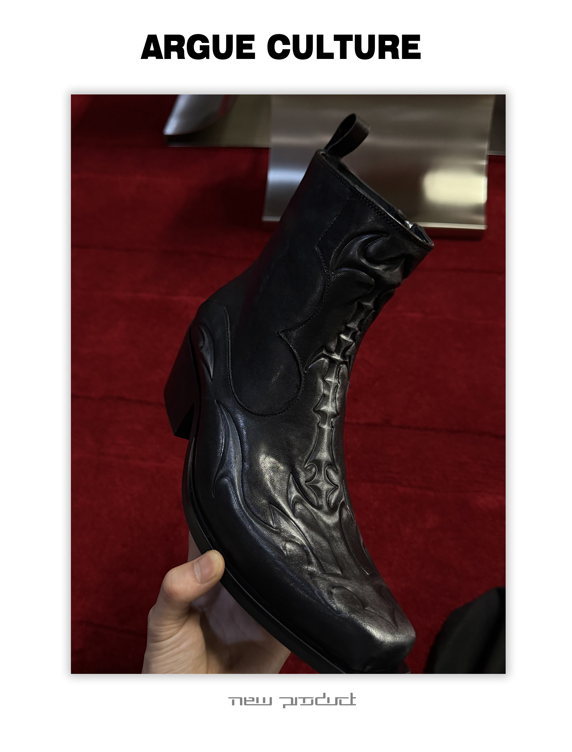 ArguE CulturE Xuan Ridge Carved Soul Head Layer Cowhide Chelsea Ankle Boots Distressed Embossed Spine Leather Shoes Boots