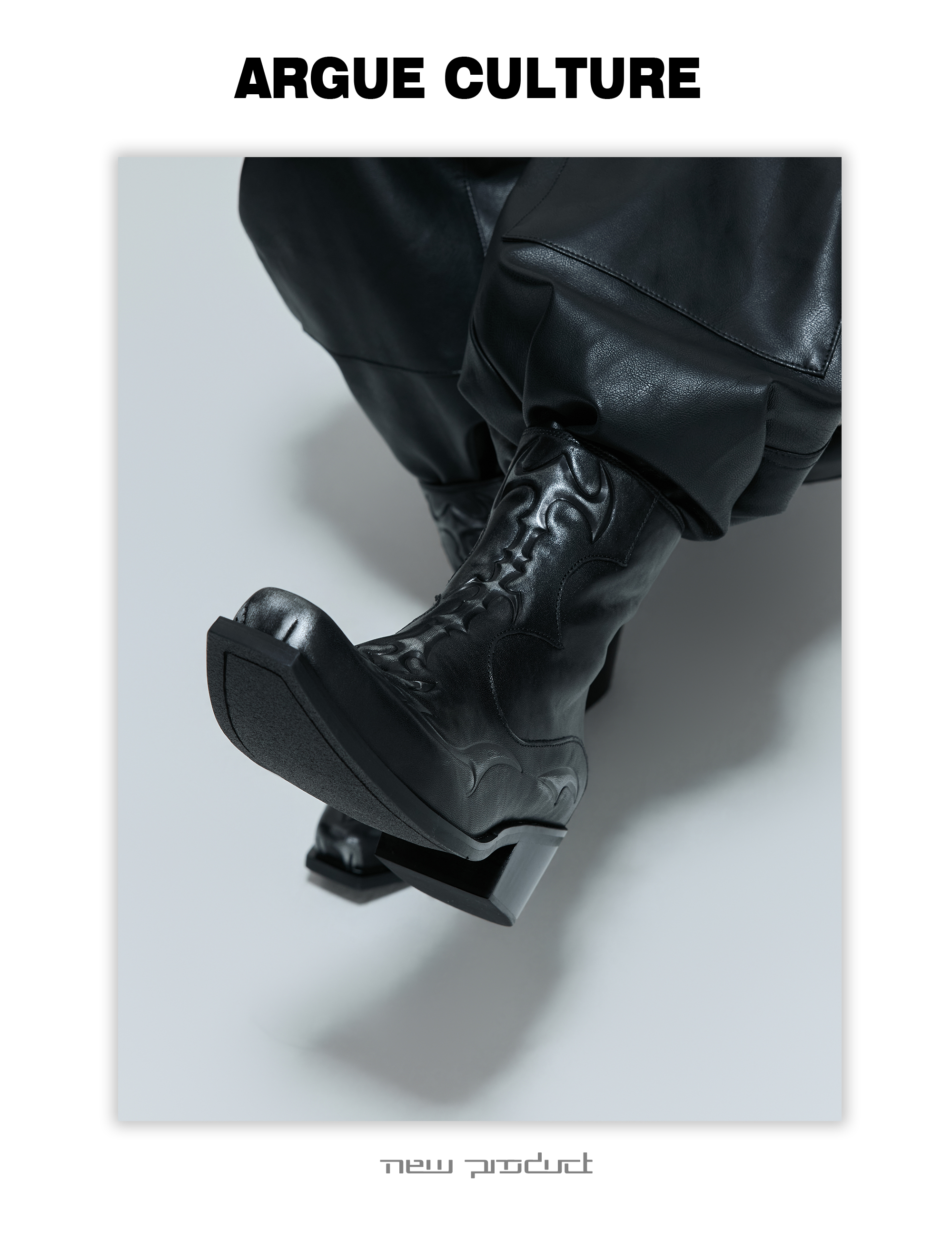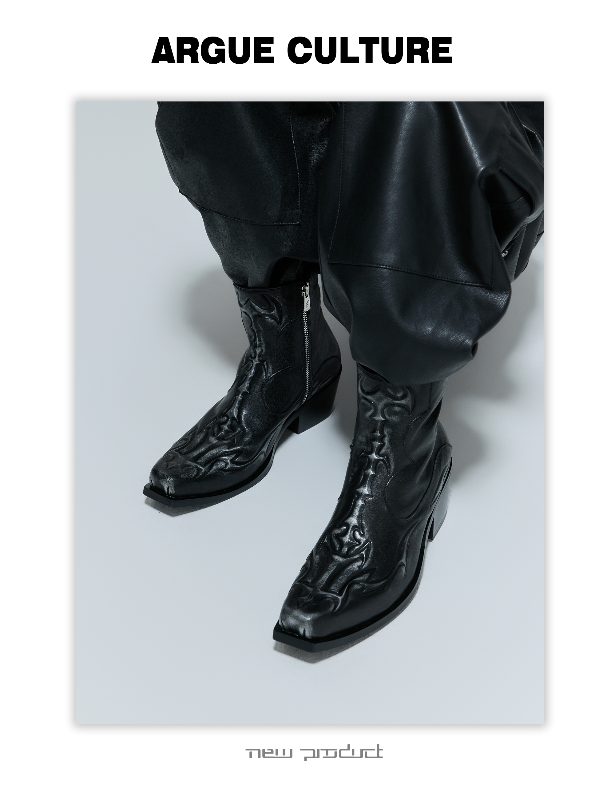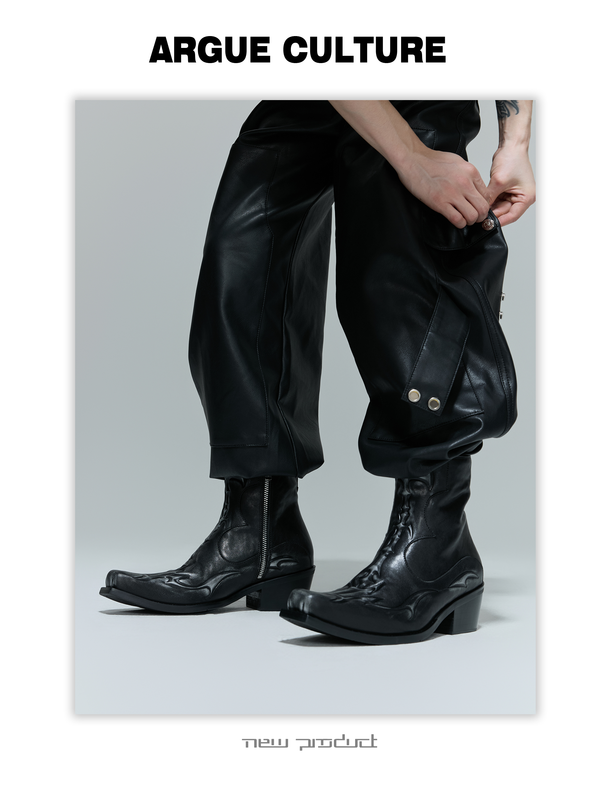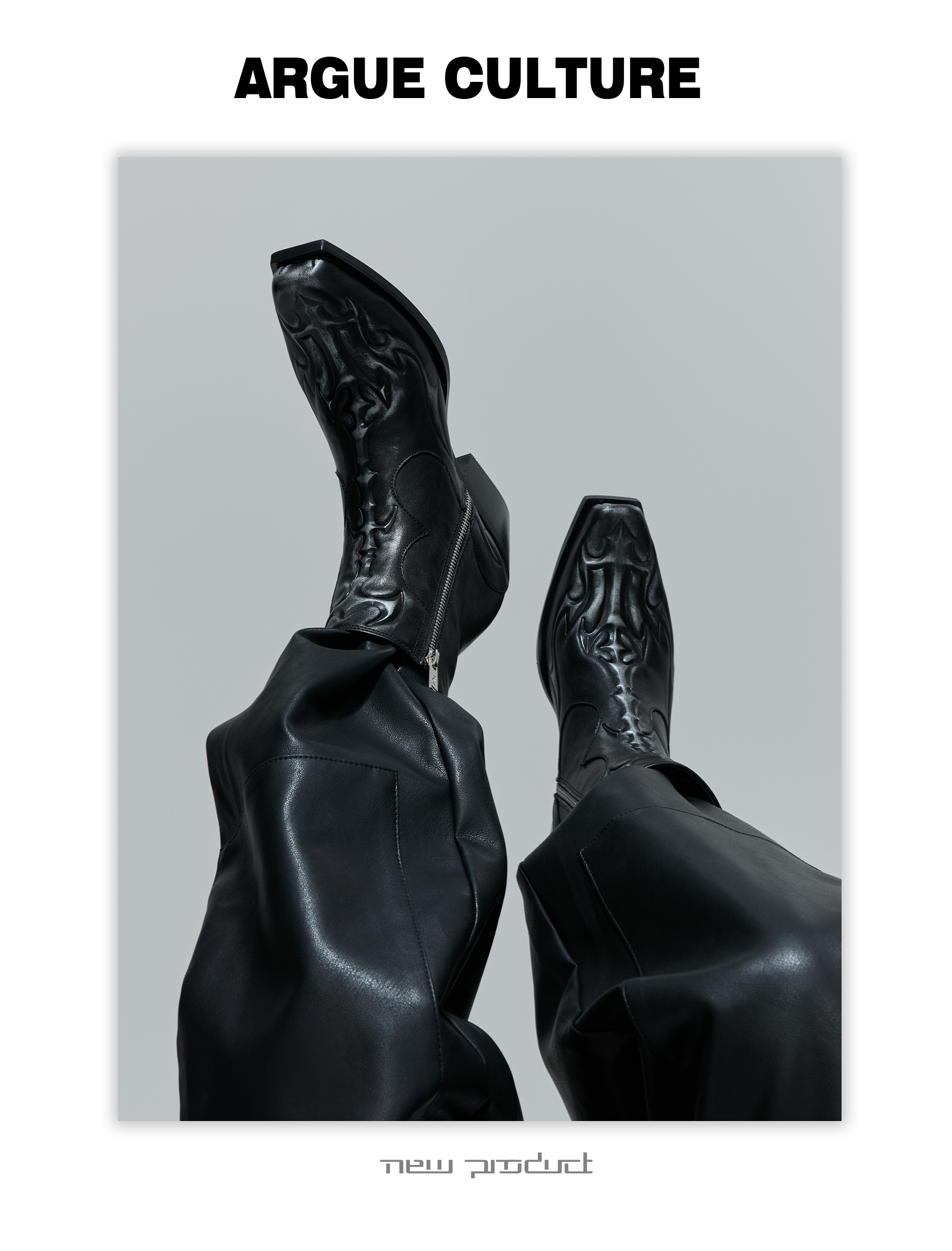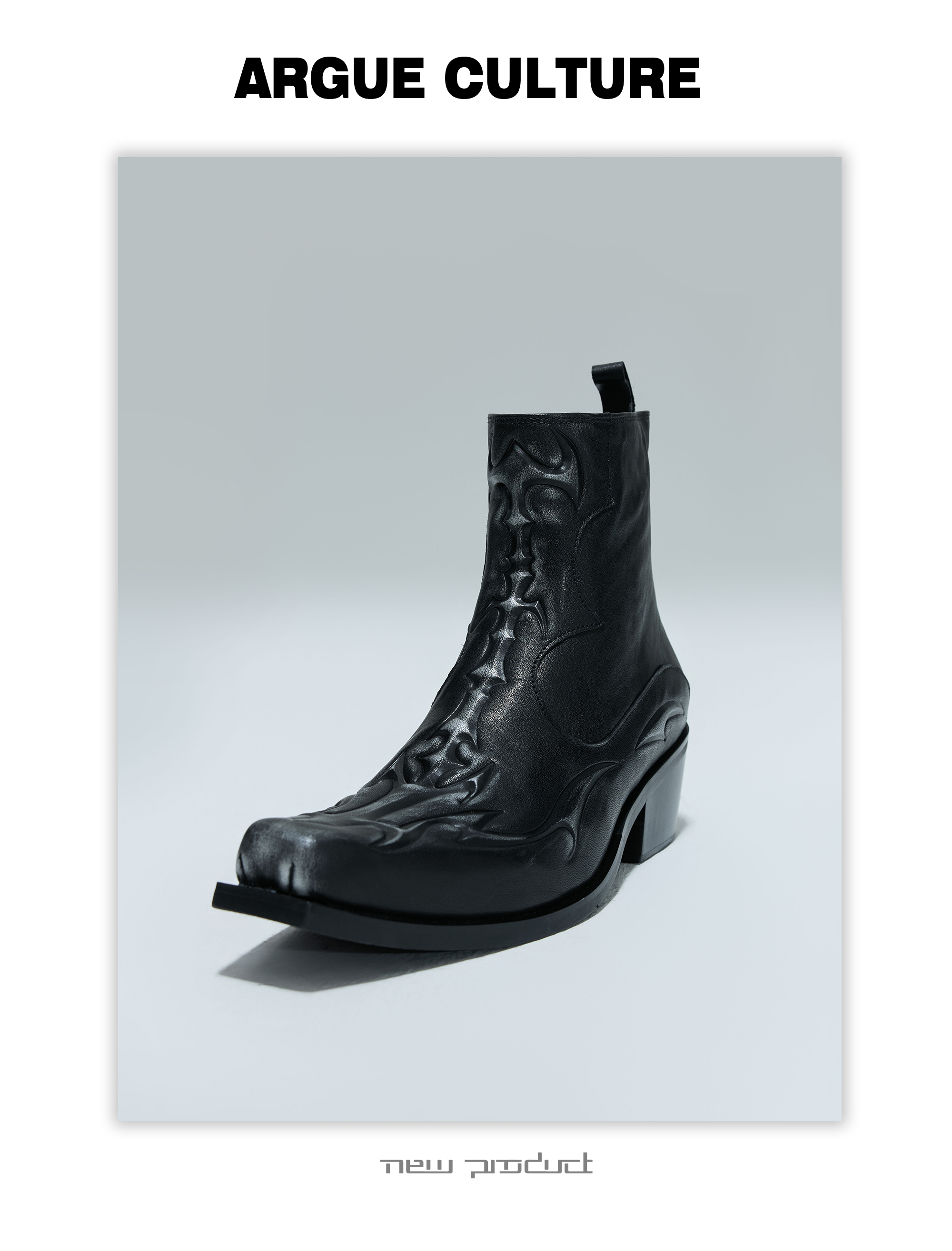 ArguE CulturE Xuan Ridge Carved Soul Head Layer Cowhide Chelsea Ankle Boots Distressed Embossed Spine Leather Shoes Boots