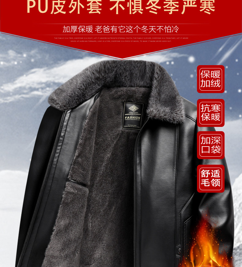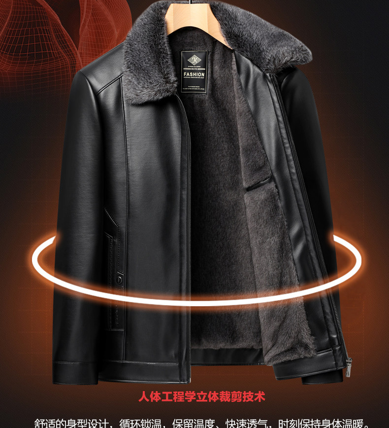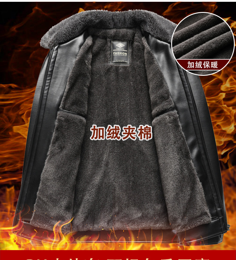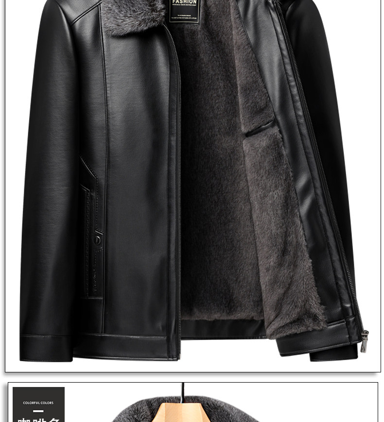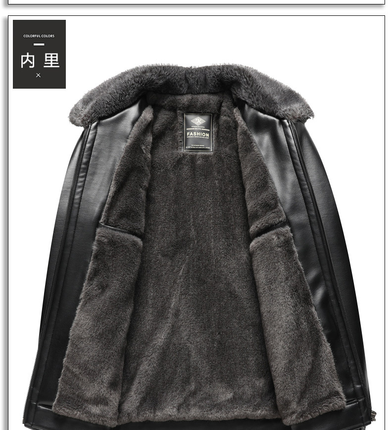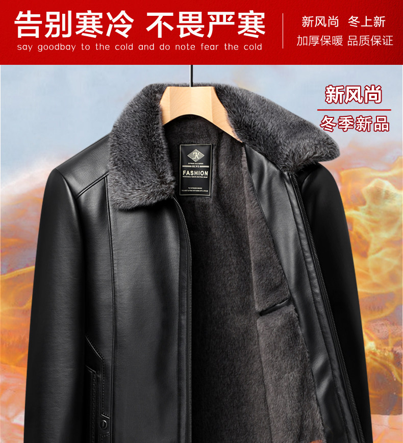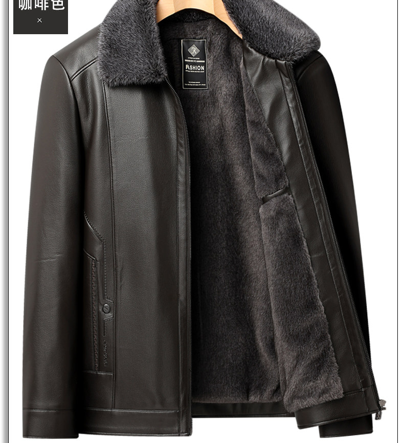 Woodpecker Brand Men's Leather Jacket for Middle-Aged and Elderly Men, Fleece-Lined and Thickened, Winter Leather and Fur Integrated Dad's Leather Coat
