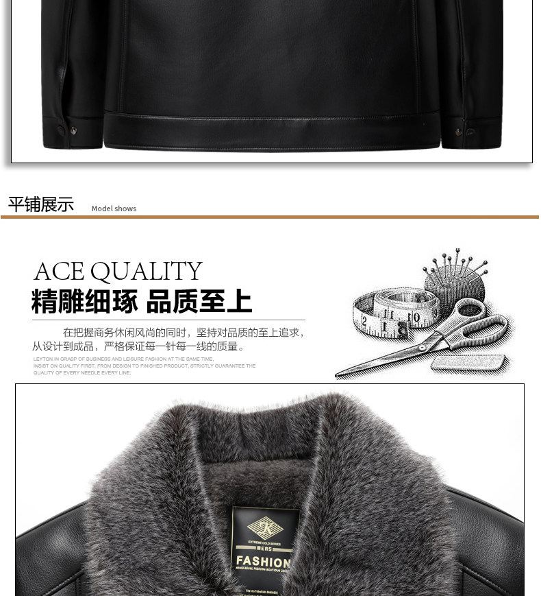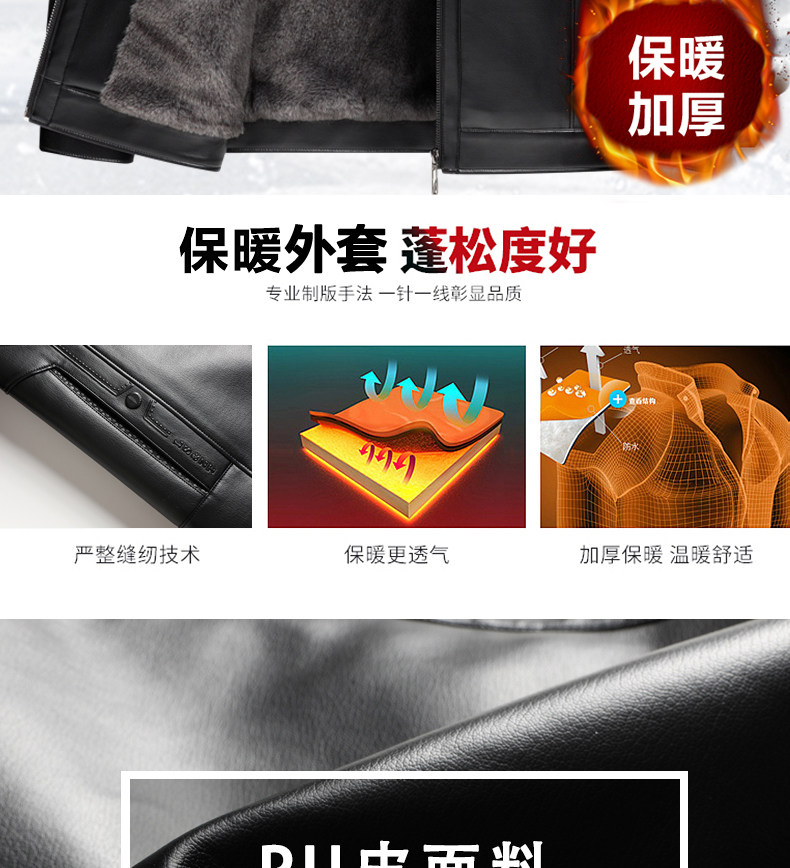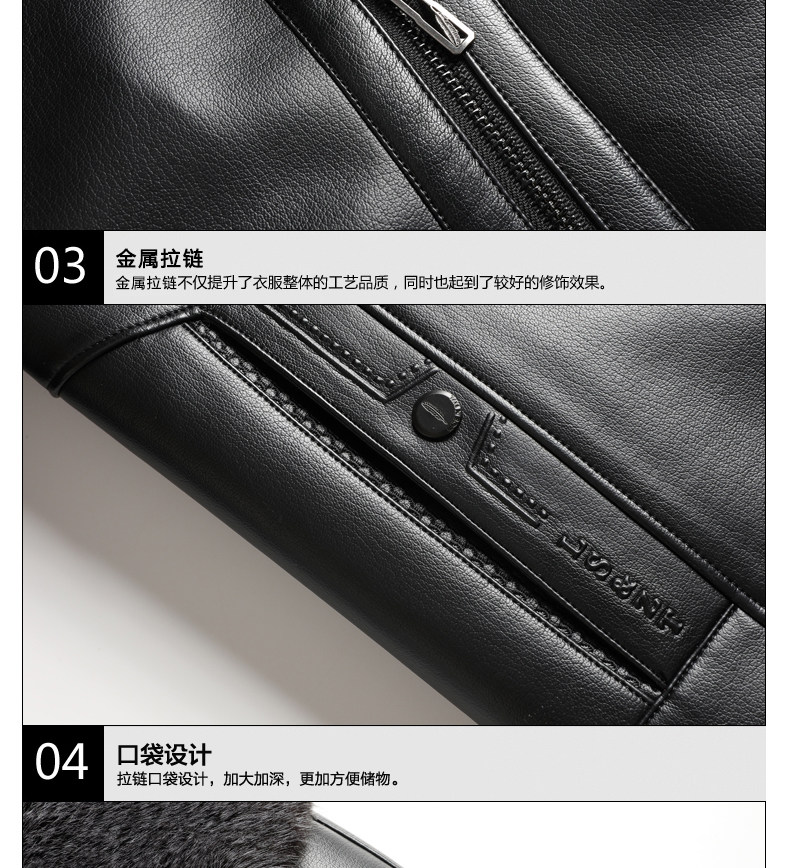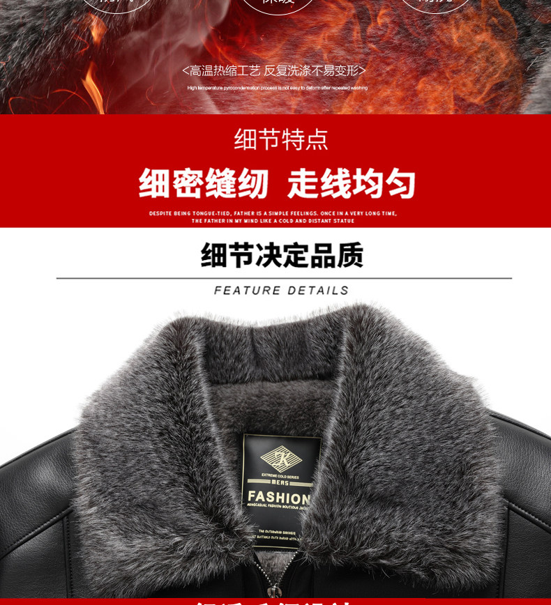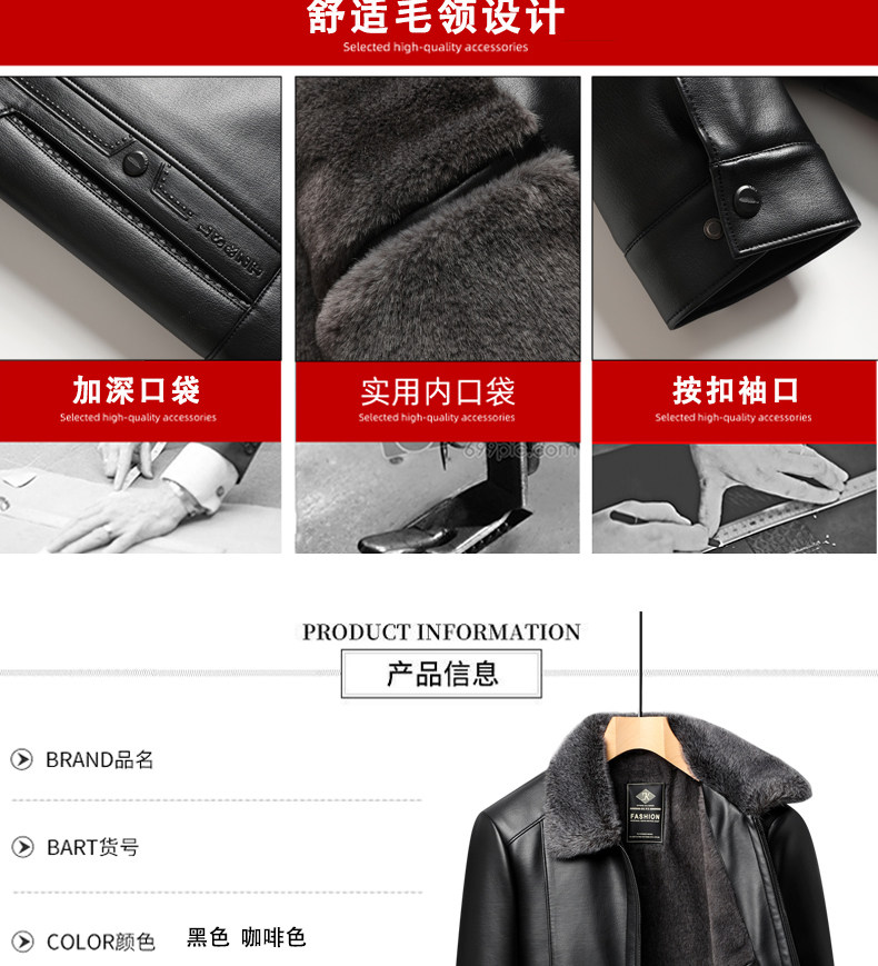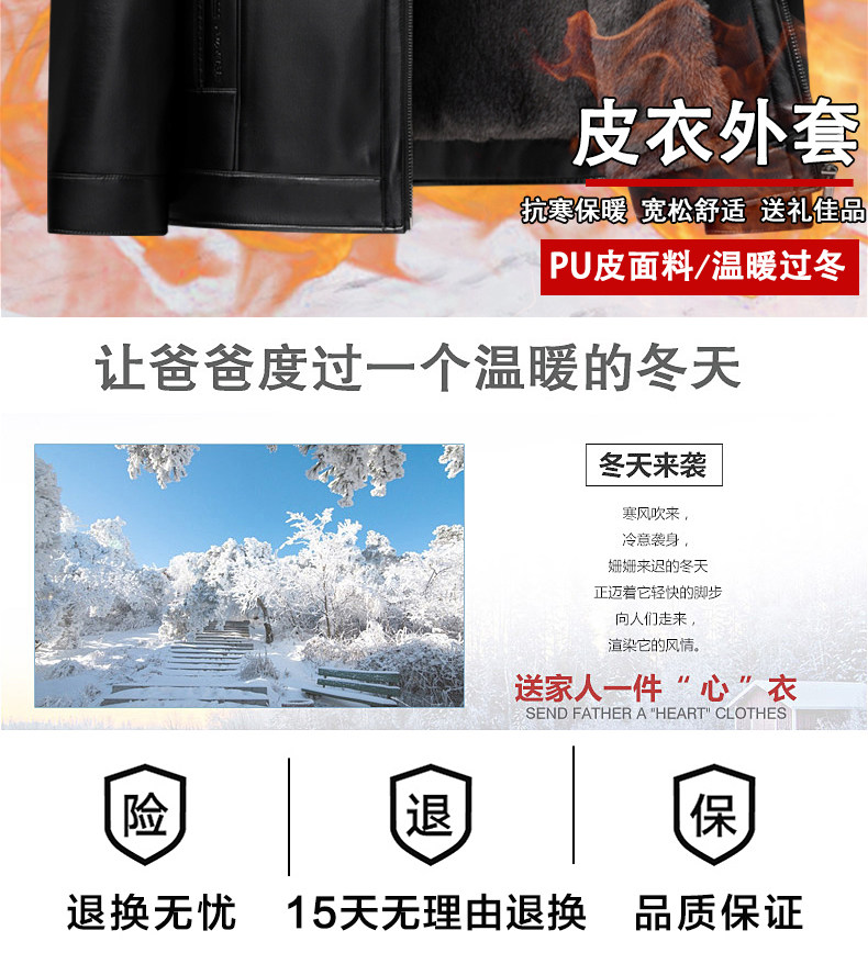 Woodpecker Brand Men's Leather Jacket for Middle-Aged and Elderly Men, Fleece-Lined and Thickened, Winter Leather and Fur Integrated Dad's Leather Coat