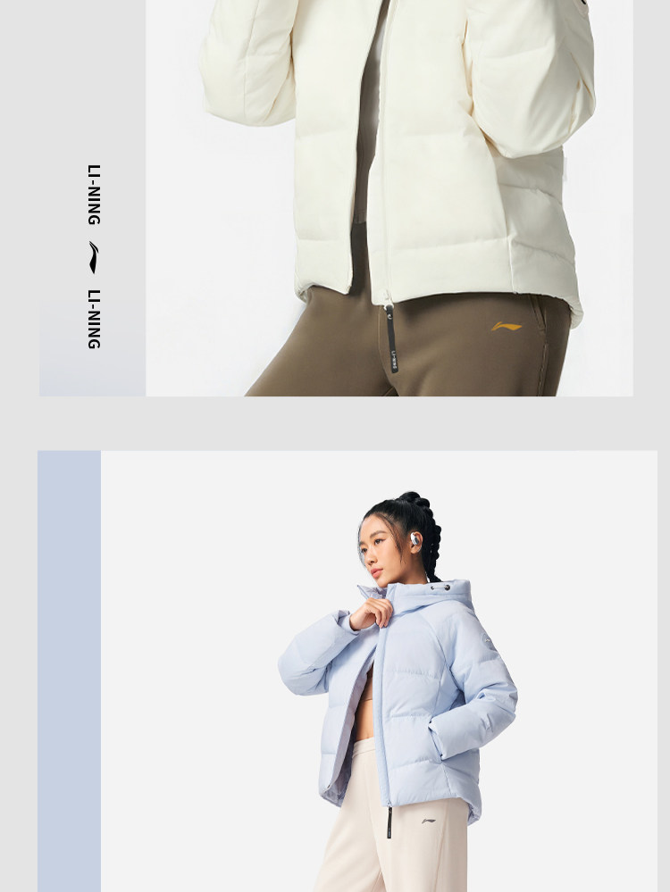 Li-Ning Aerospace Dynamic Thermal down Jacket for Women, Winter Official New Short Style Women's Hooded Duck down Sports Coat
