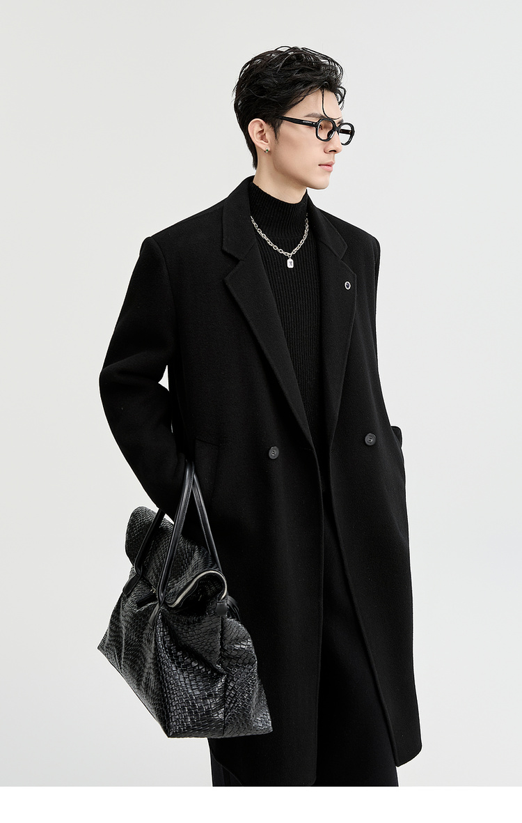All-Wool/Goose down Jacket Lining/Earl Zhuoer Double-Sided Woolen Coat Men's Shoulder-Padded Long Winter Coat