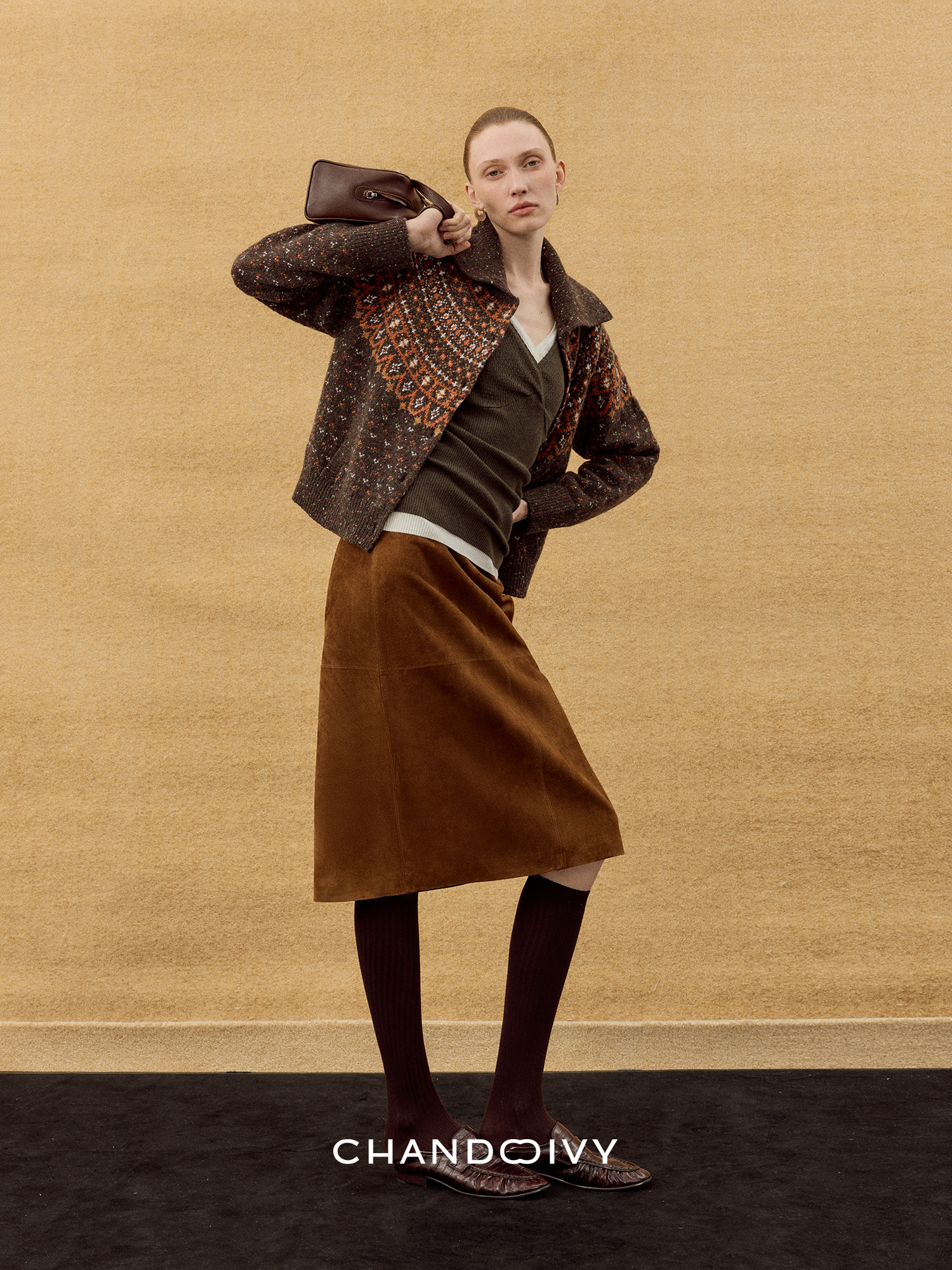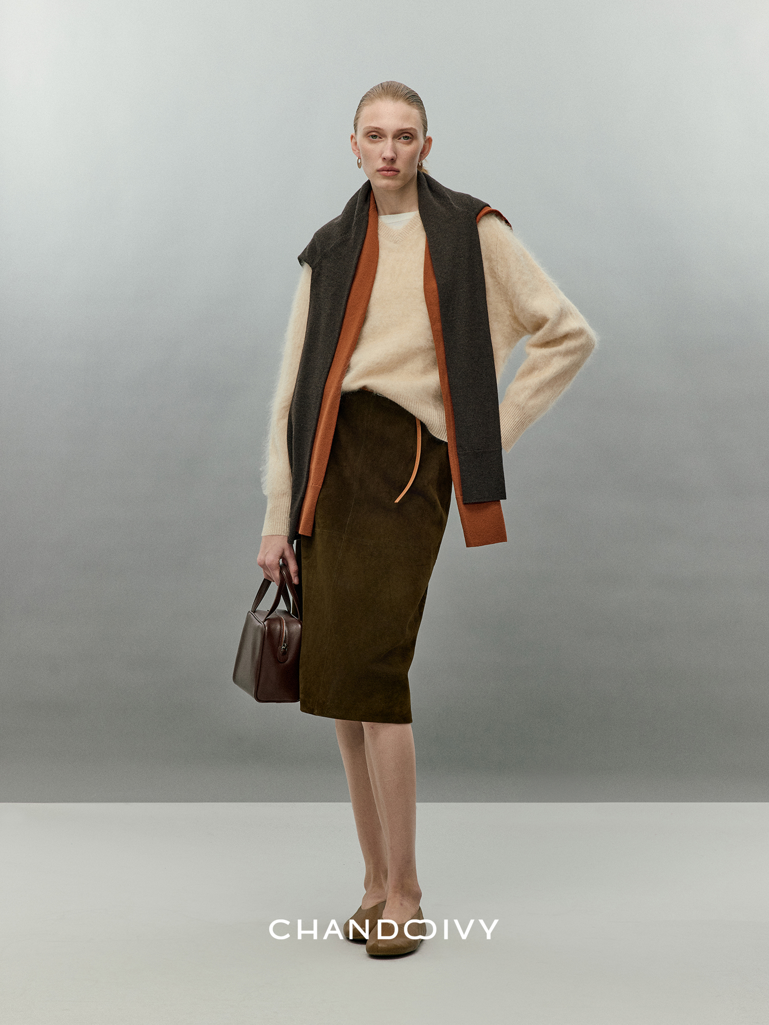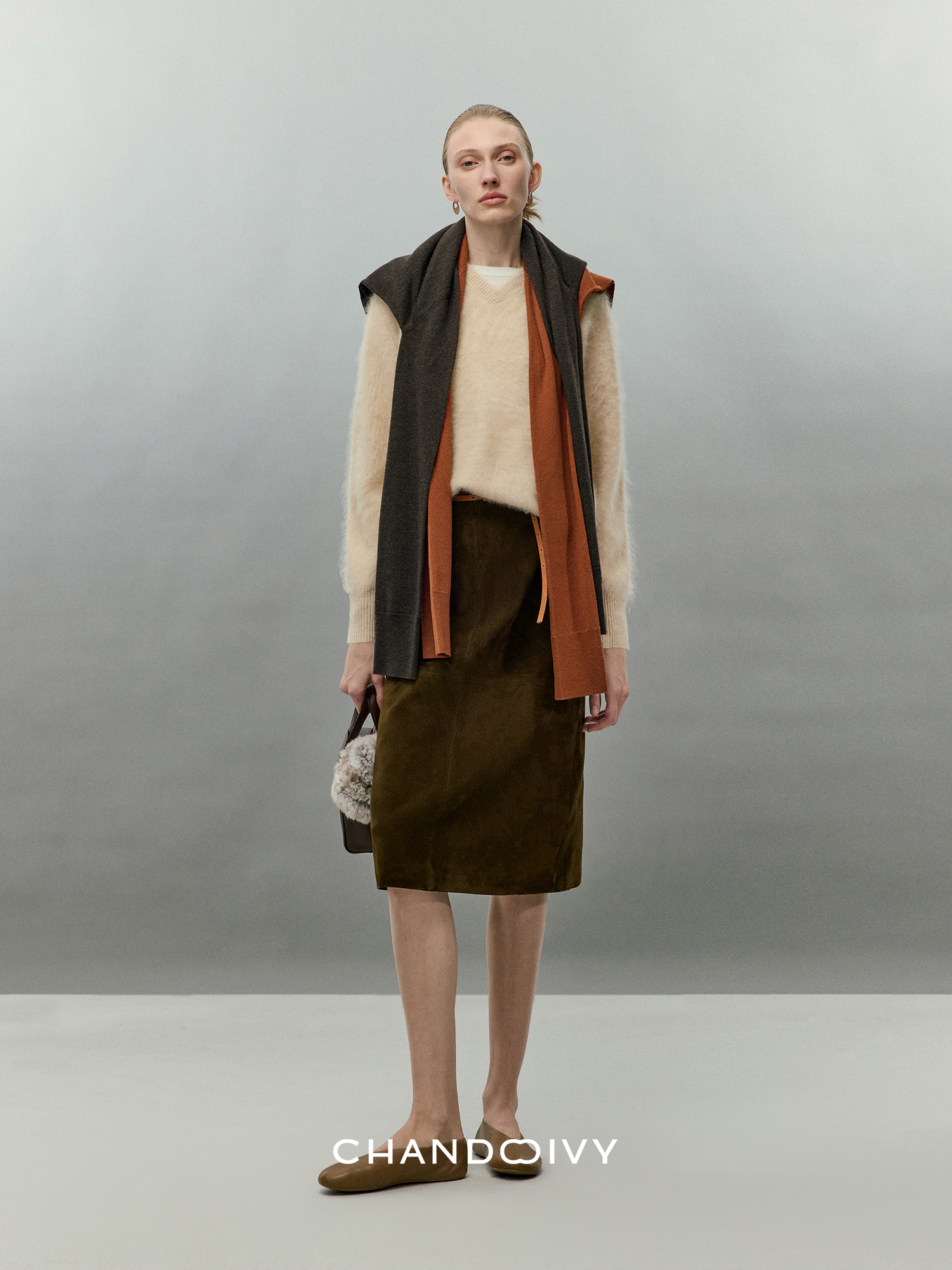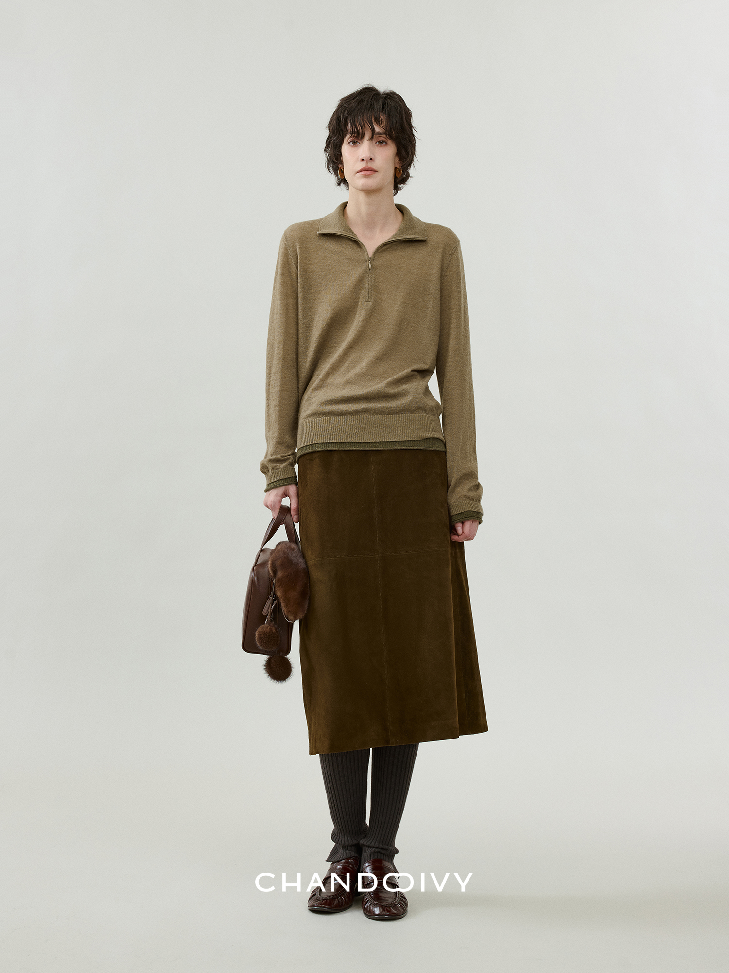 Chandooivy Imported Sheep Suede Exclusive Custom-Dyed Simple Distressed High-Waisted Slimming Mid-Length Skirt