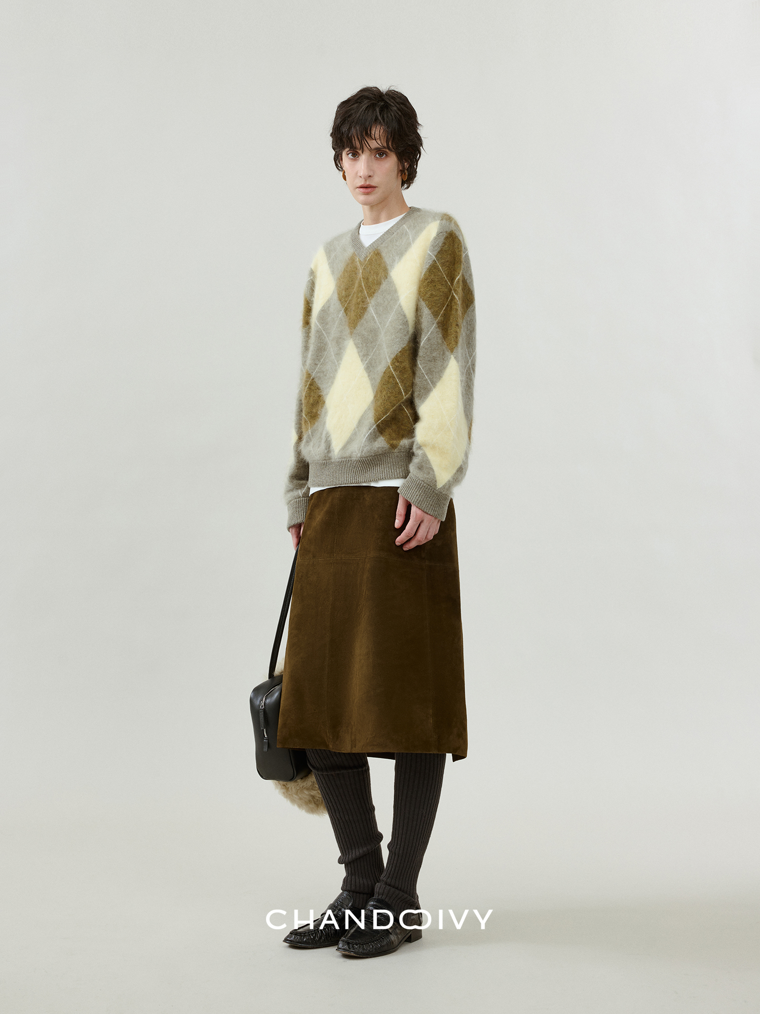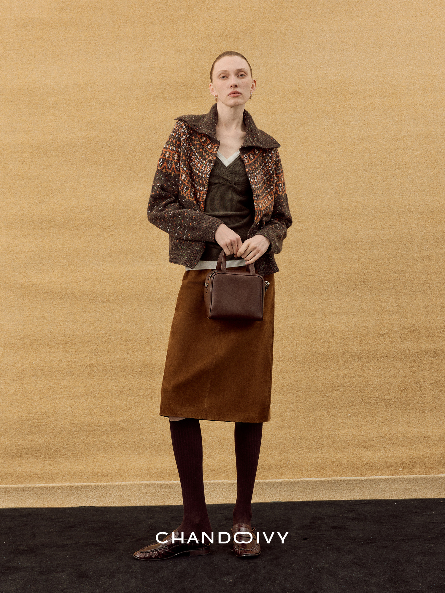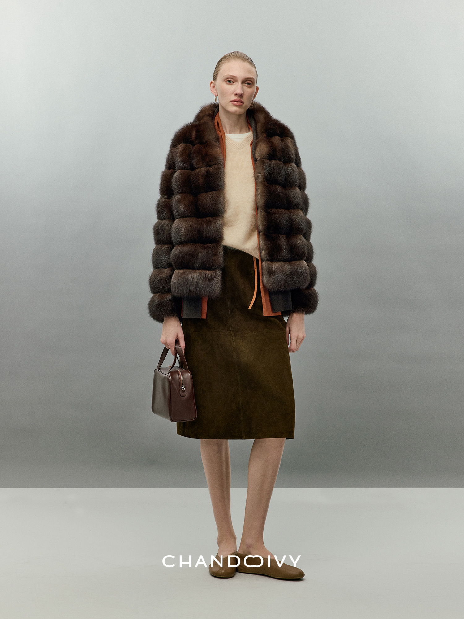 Chandooivy Imported Sheep Suede Exclusive Custom-Dyed Simple Distressed High-Waisted Slimming Mid-Length Skirt