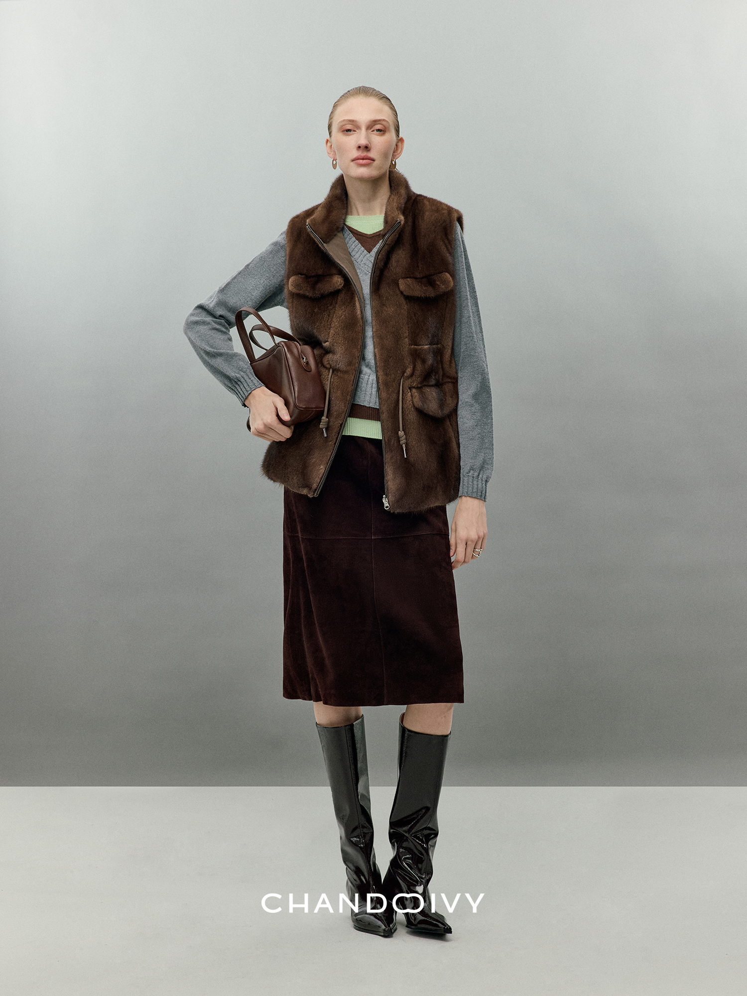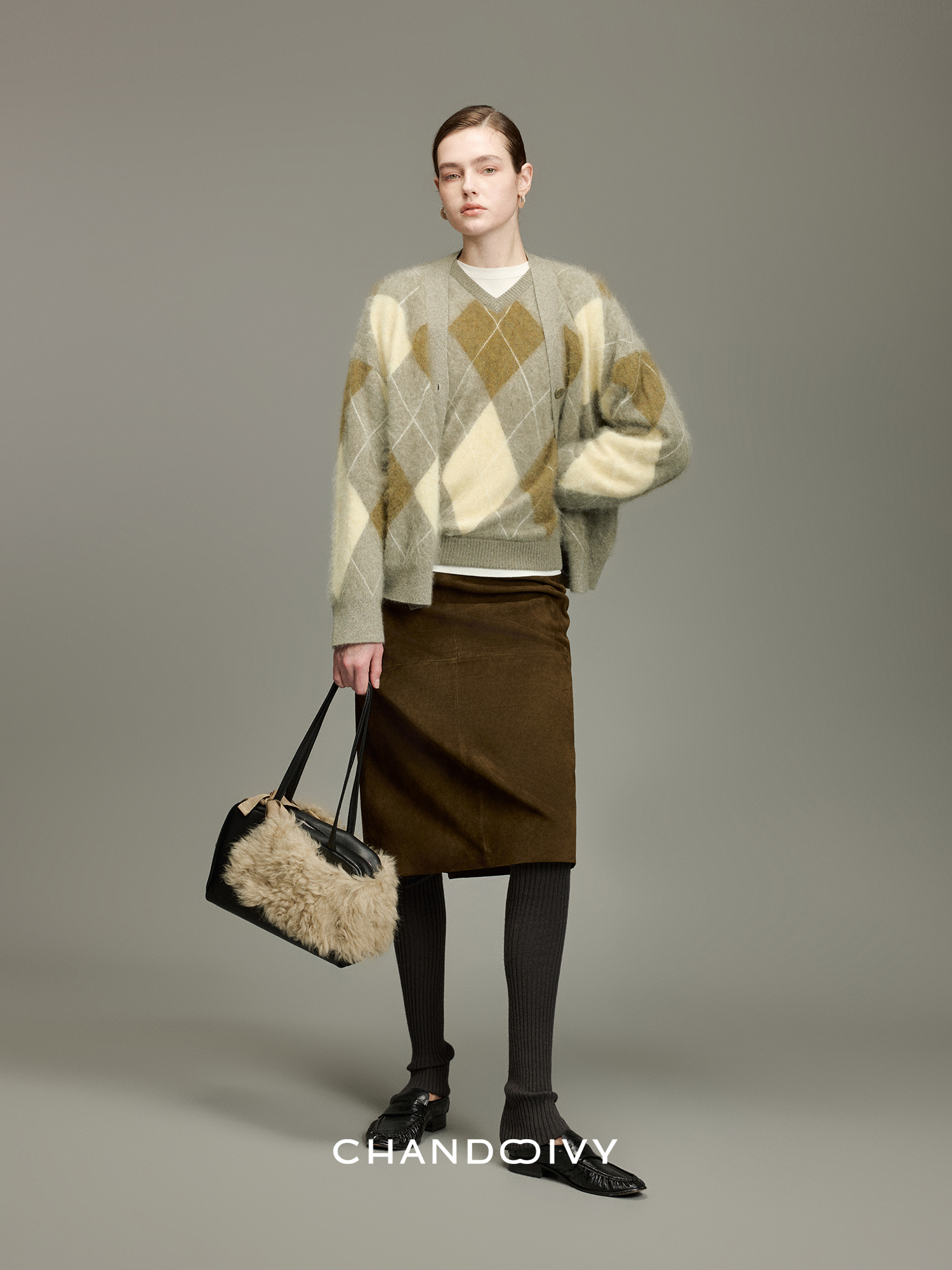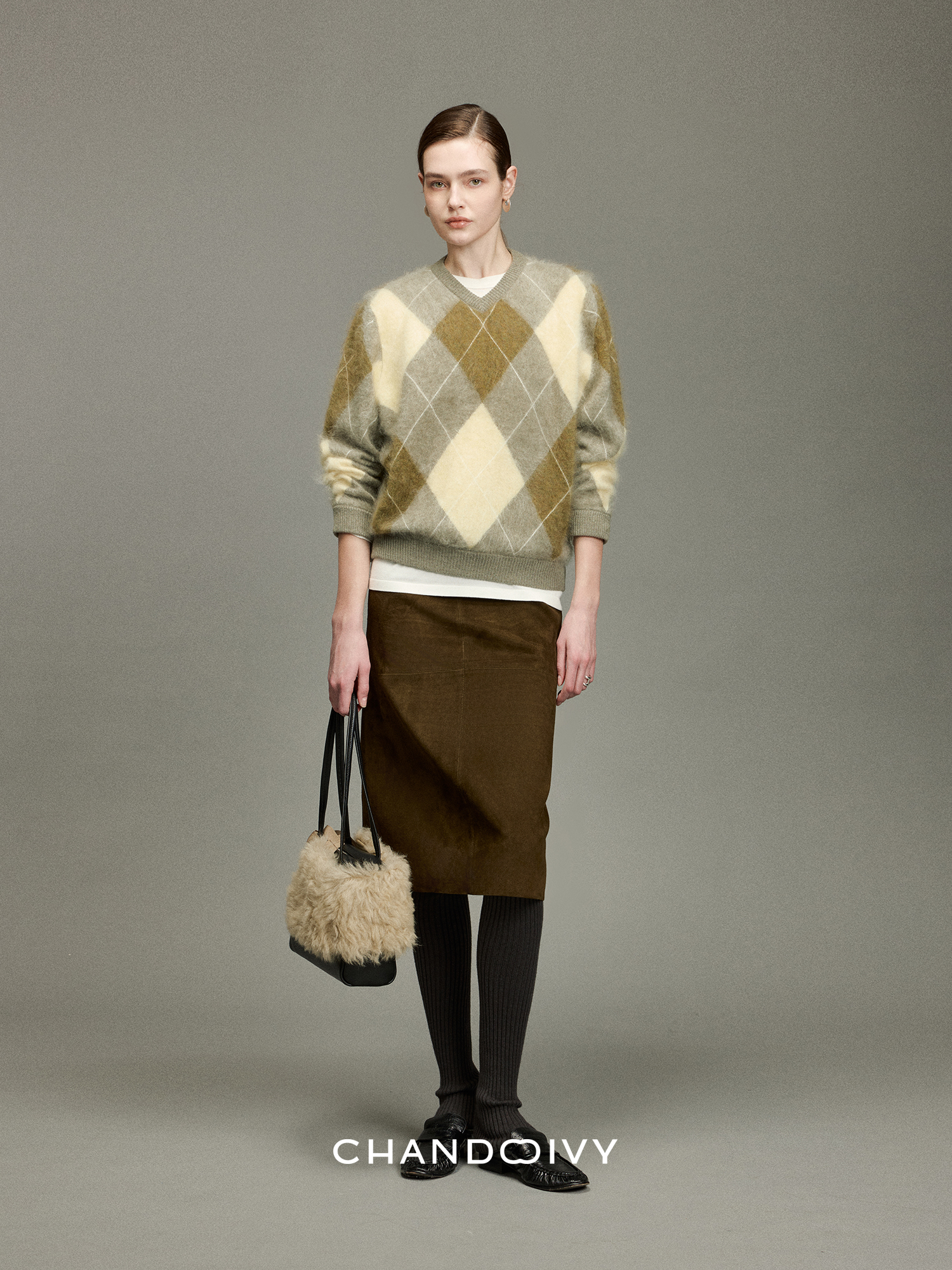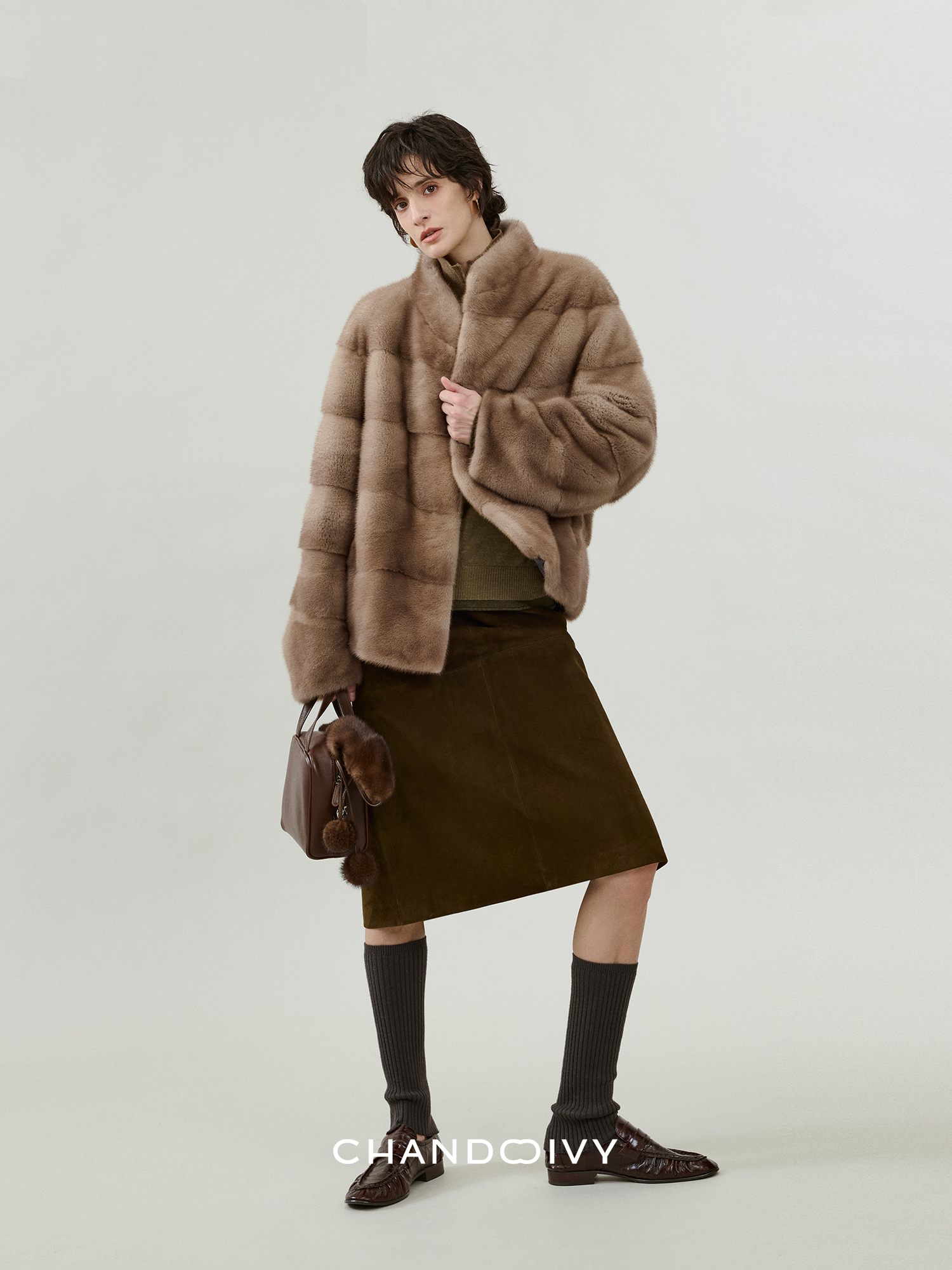 Chandooivy Imported Sheep Suede Exclusive Custom-Dyed Simple Distressed High-Waisted Slimming Mid-Length Skirt