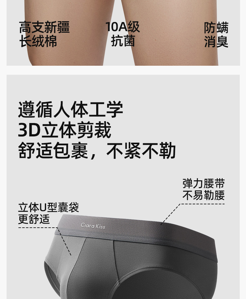 Clara Kiss Men's Briefs, Men's Pure Cotton, Antibacterial Crotch, 2025 New Style, Sexy, Large Size, Breathable