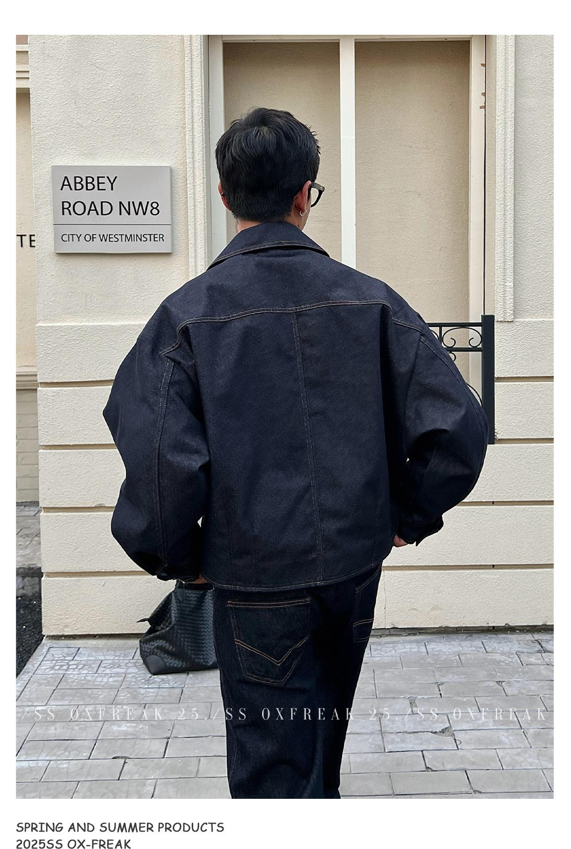 Dark Blue Denim Jacket, New Autumn Style for Men, American Street Style, High-End, Cool and Retro Style Denim Jacket, Trendy