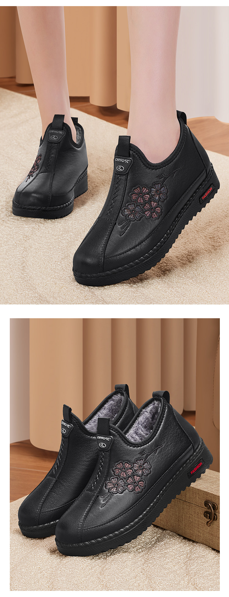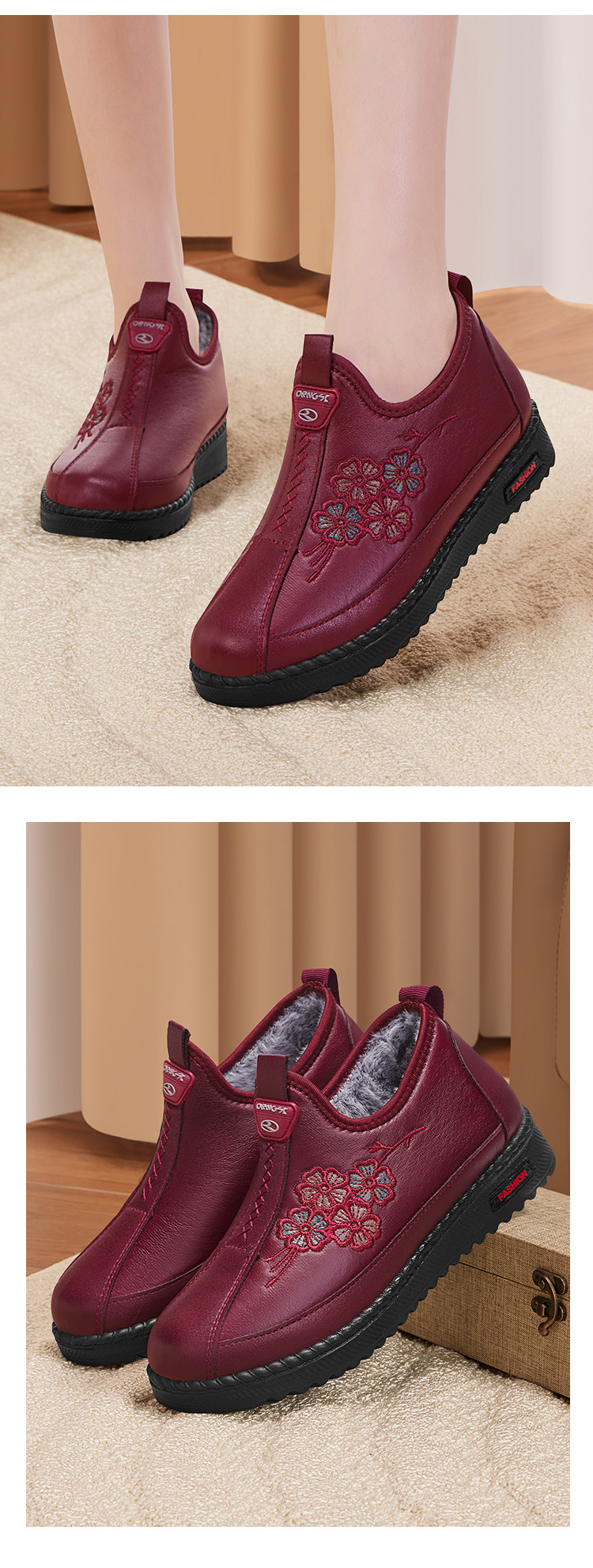 Old Beijing Cloth Shoes for Women, New Winter Model, Non-Slip Soft Sole, Comfortable for Middle-Aged and Elderly, Fleece-Lined, Warm Grandma Cotton Shoes
