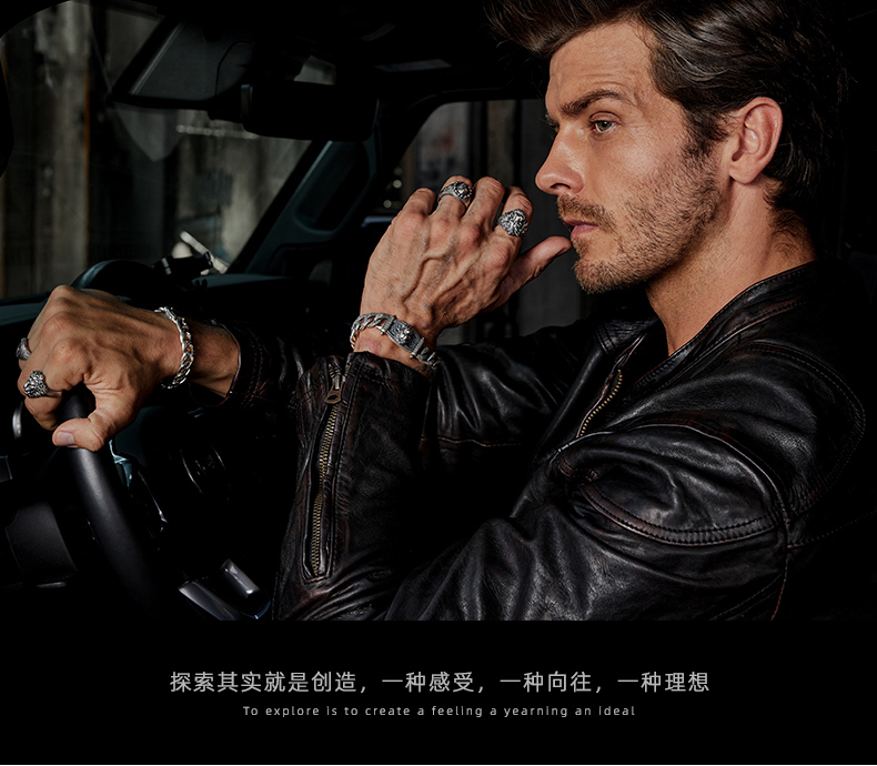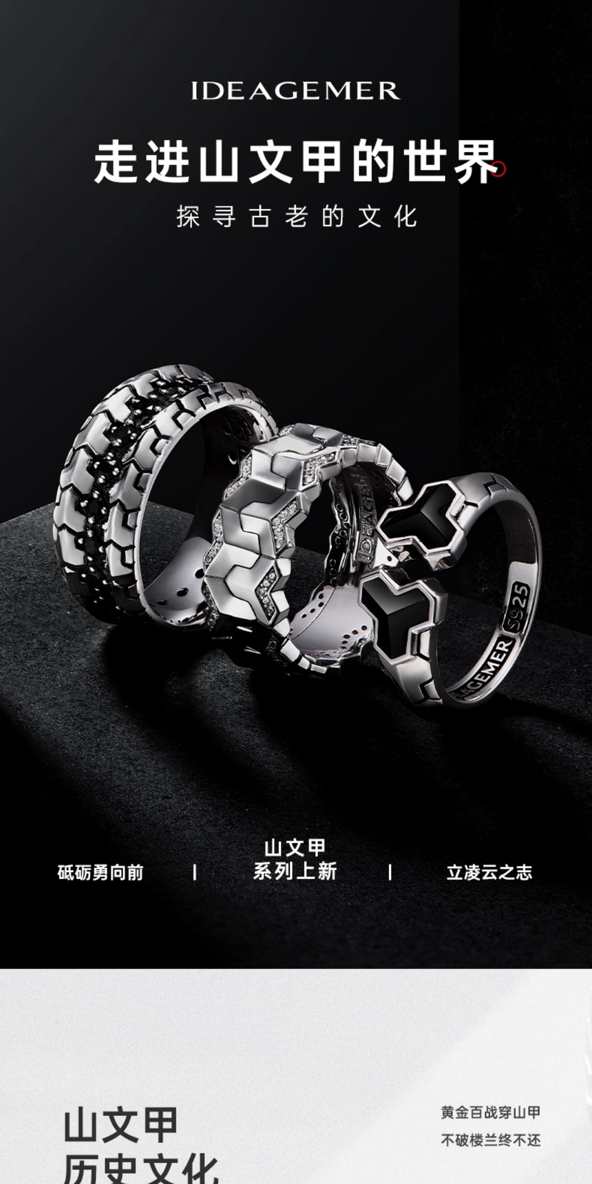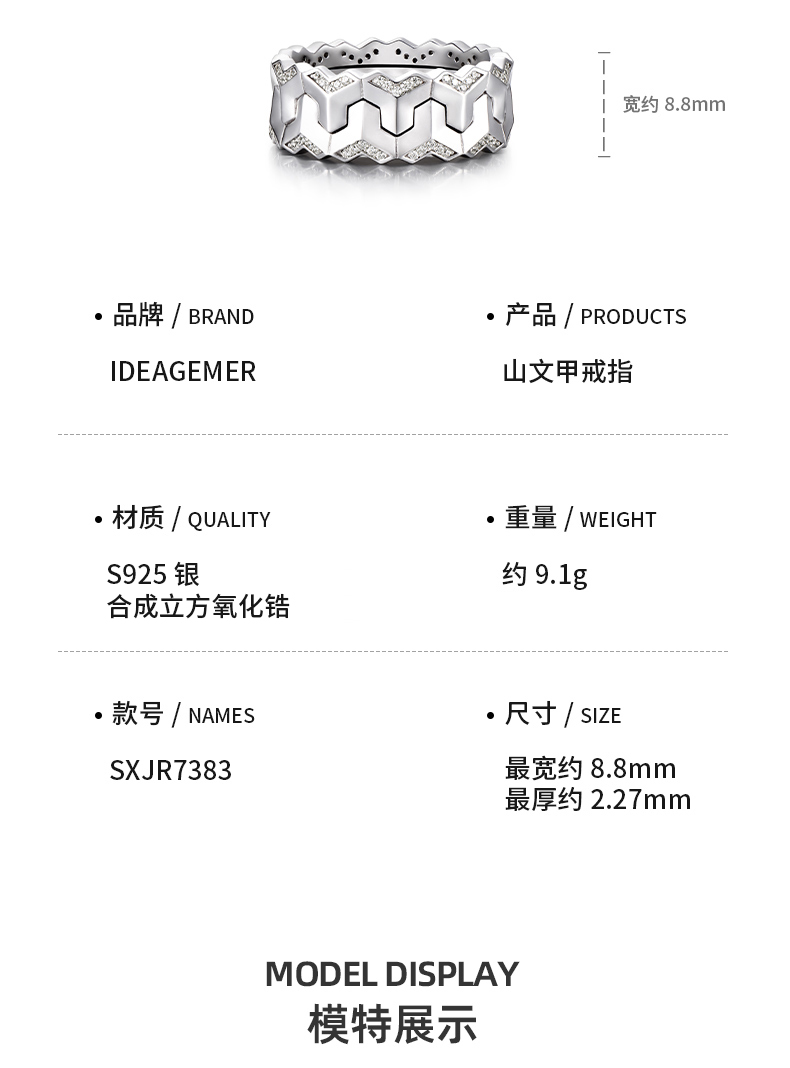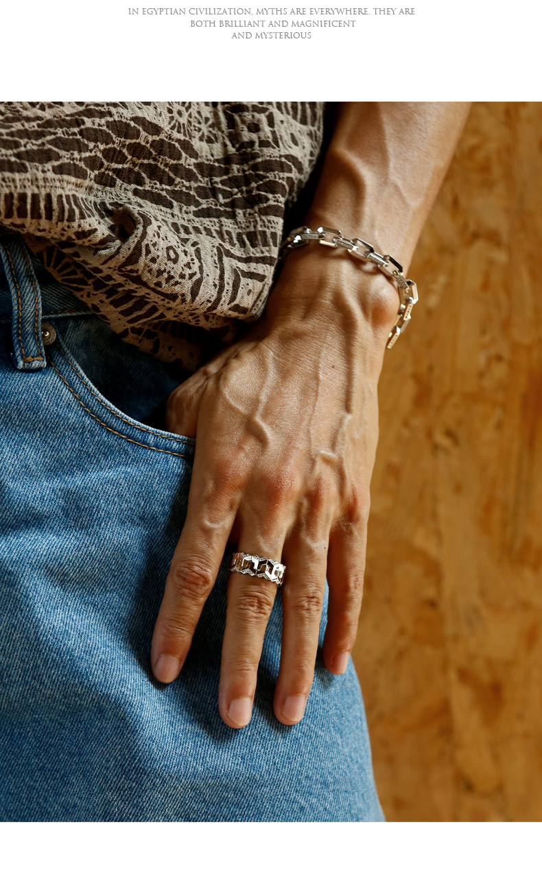 Ideagemer Ying Hao Ming's Same Style 925 Silver Mountain Pattern Ring for Men, Light Luxury, High-End, Original, Trendy and Cool