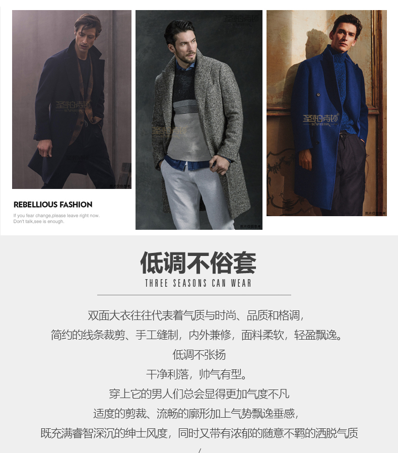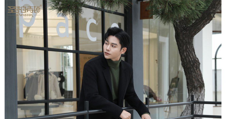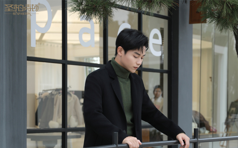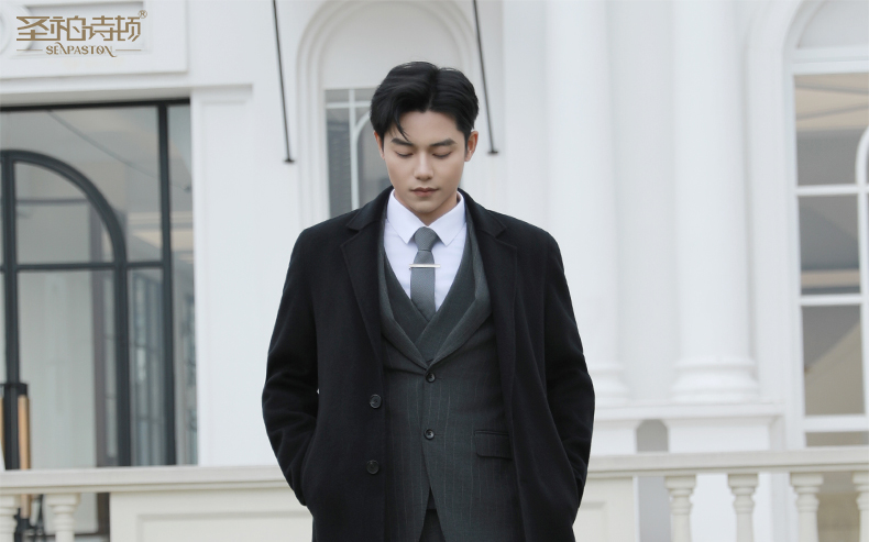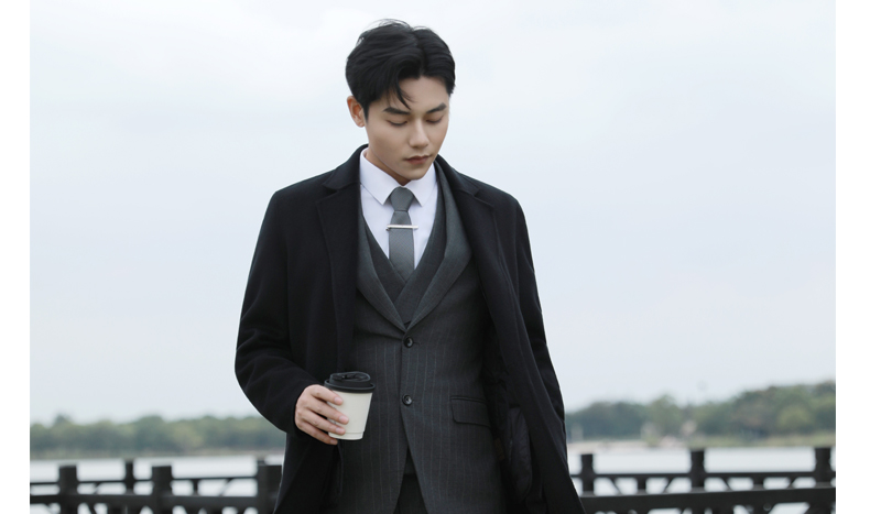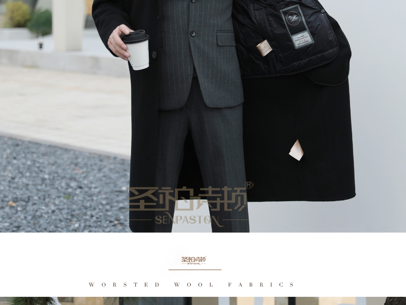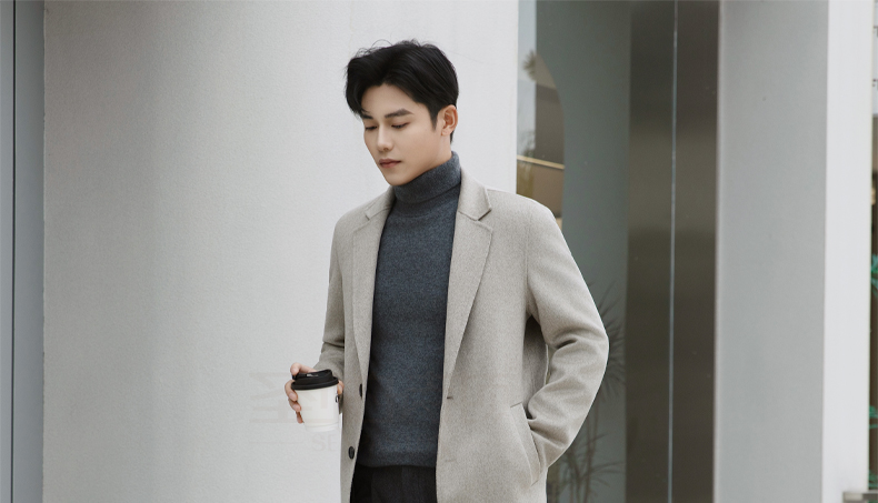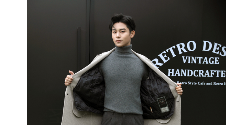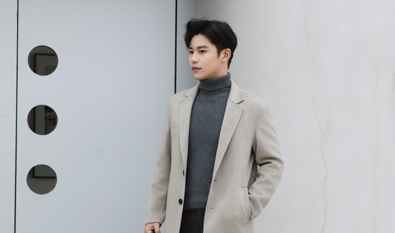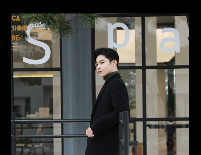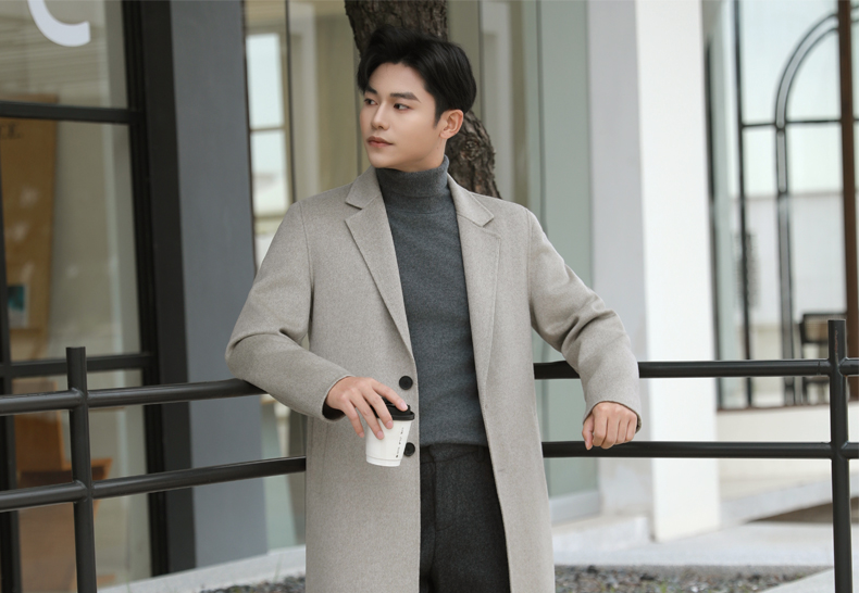 High-End 100% Cashmere Coat for Men, Knee-Length, Autumn and Winter, down Lining, Fashionable Trench Coat, Double-Sided Wool Jacket