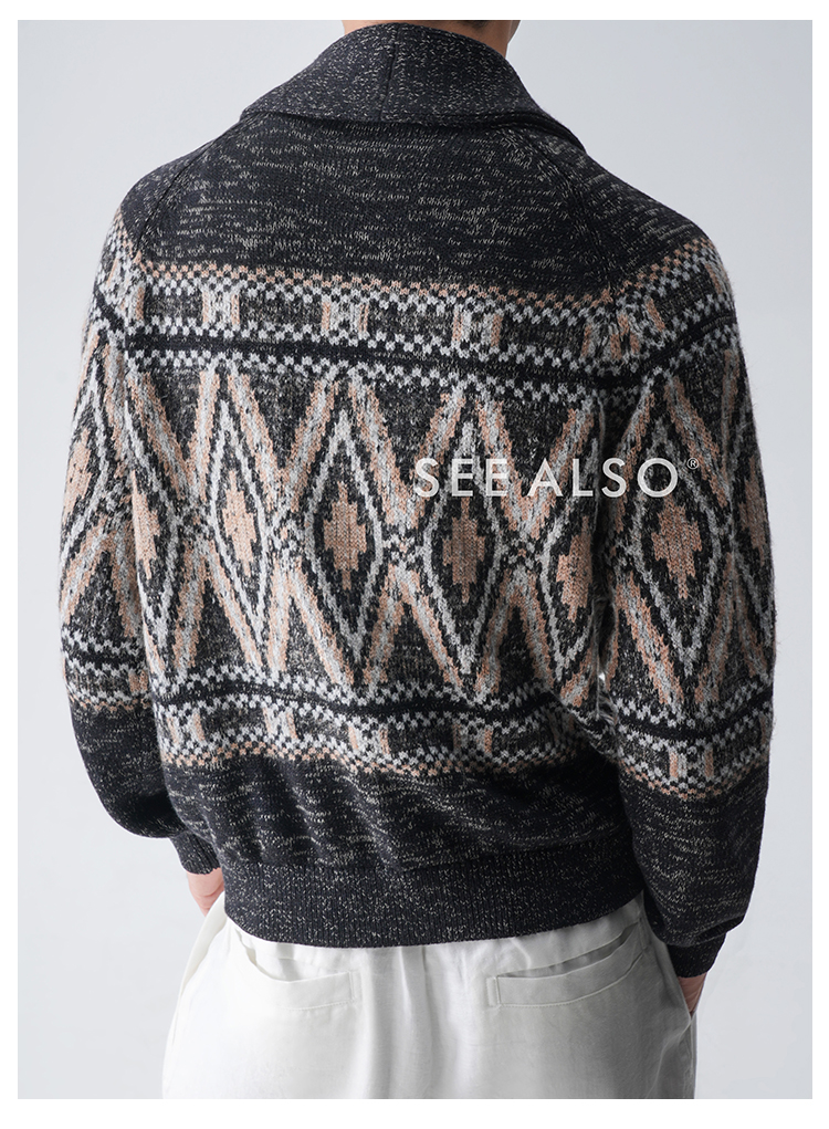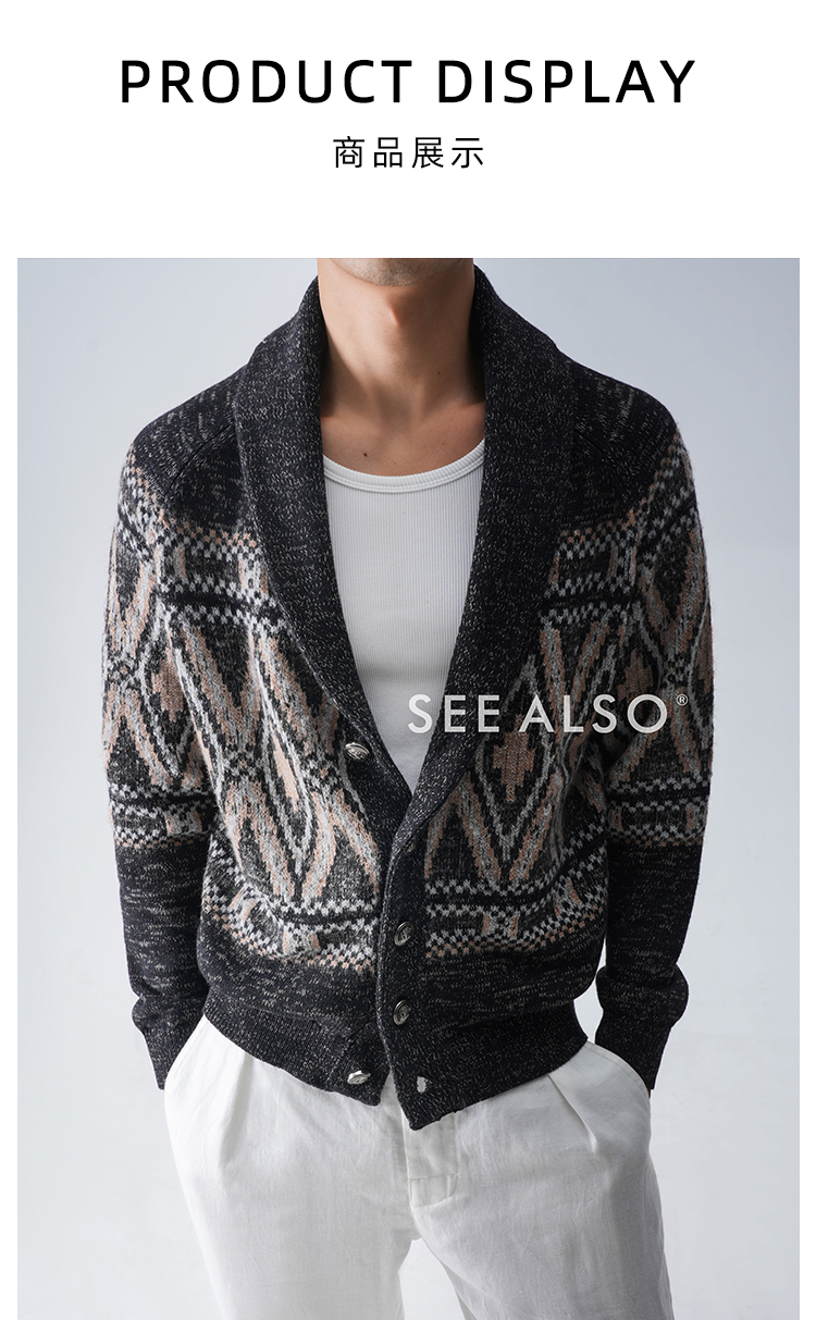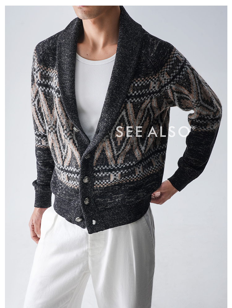 See Also『Bc Fair Isle Cashmere』Old Money Style New Rich Sheep Wool Mulberry Silk Robe Cardigan Sweater