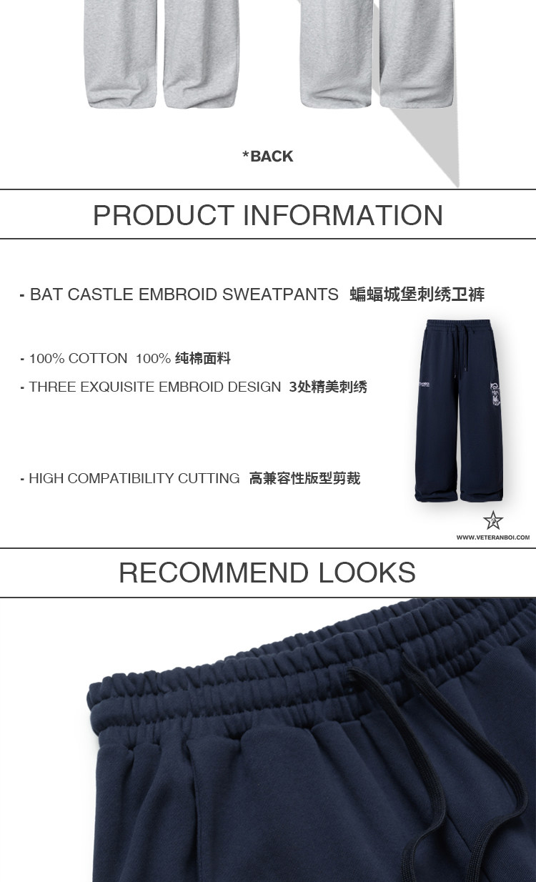 Veteranboi Bat Castle Embroidered Sweatpants Bat Castle Embroid Sweatpants
