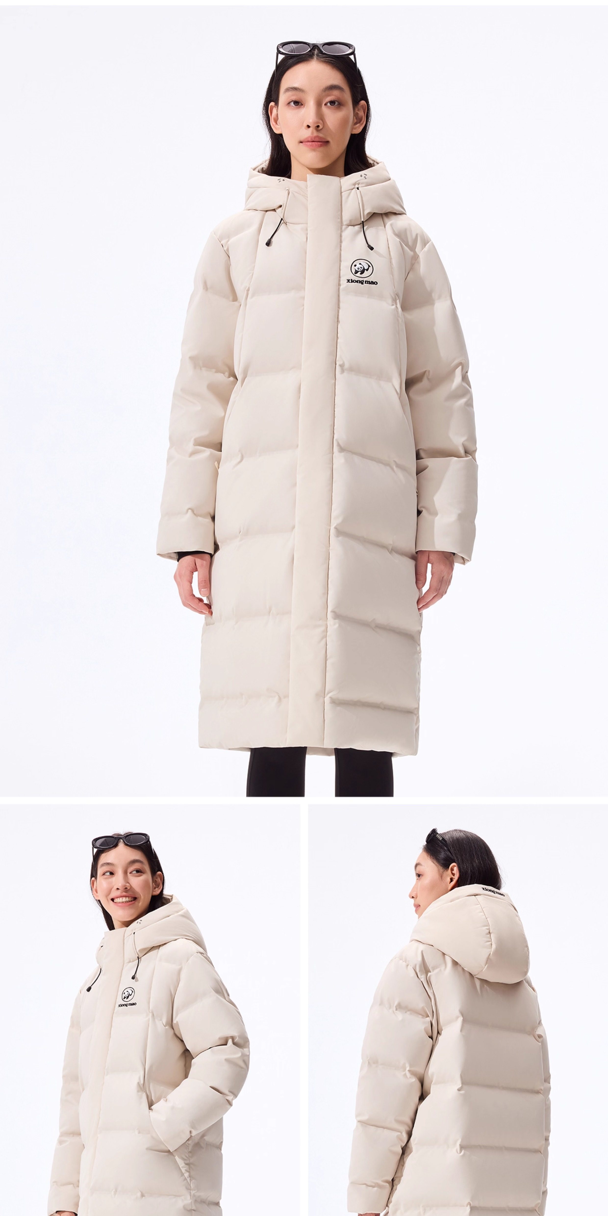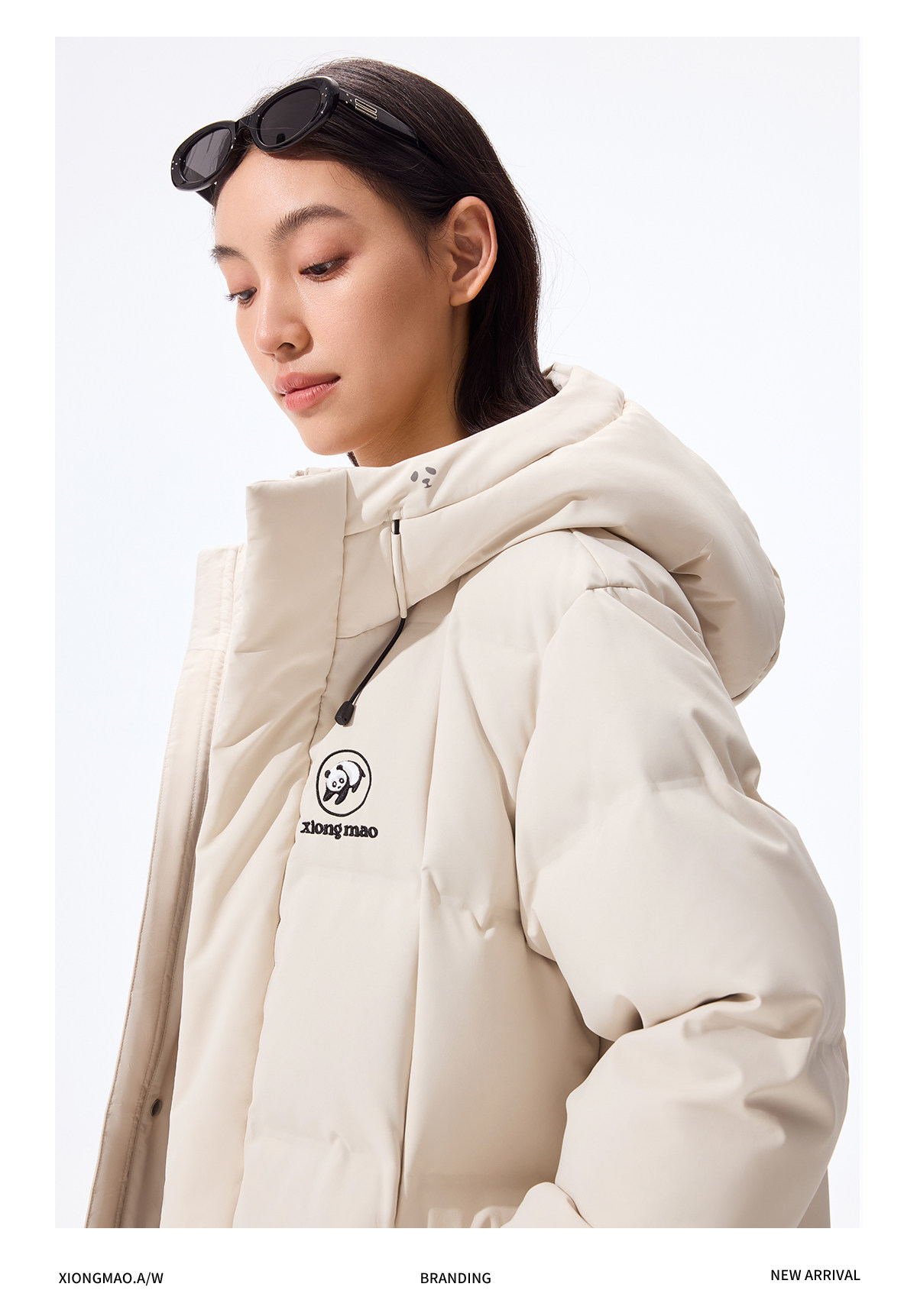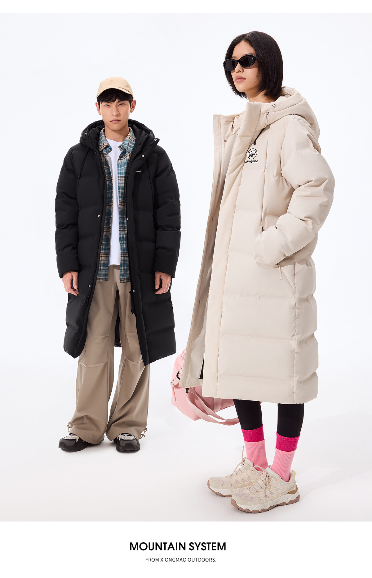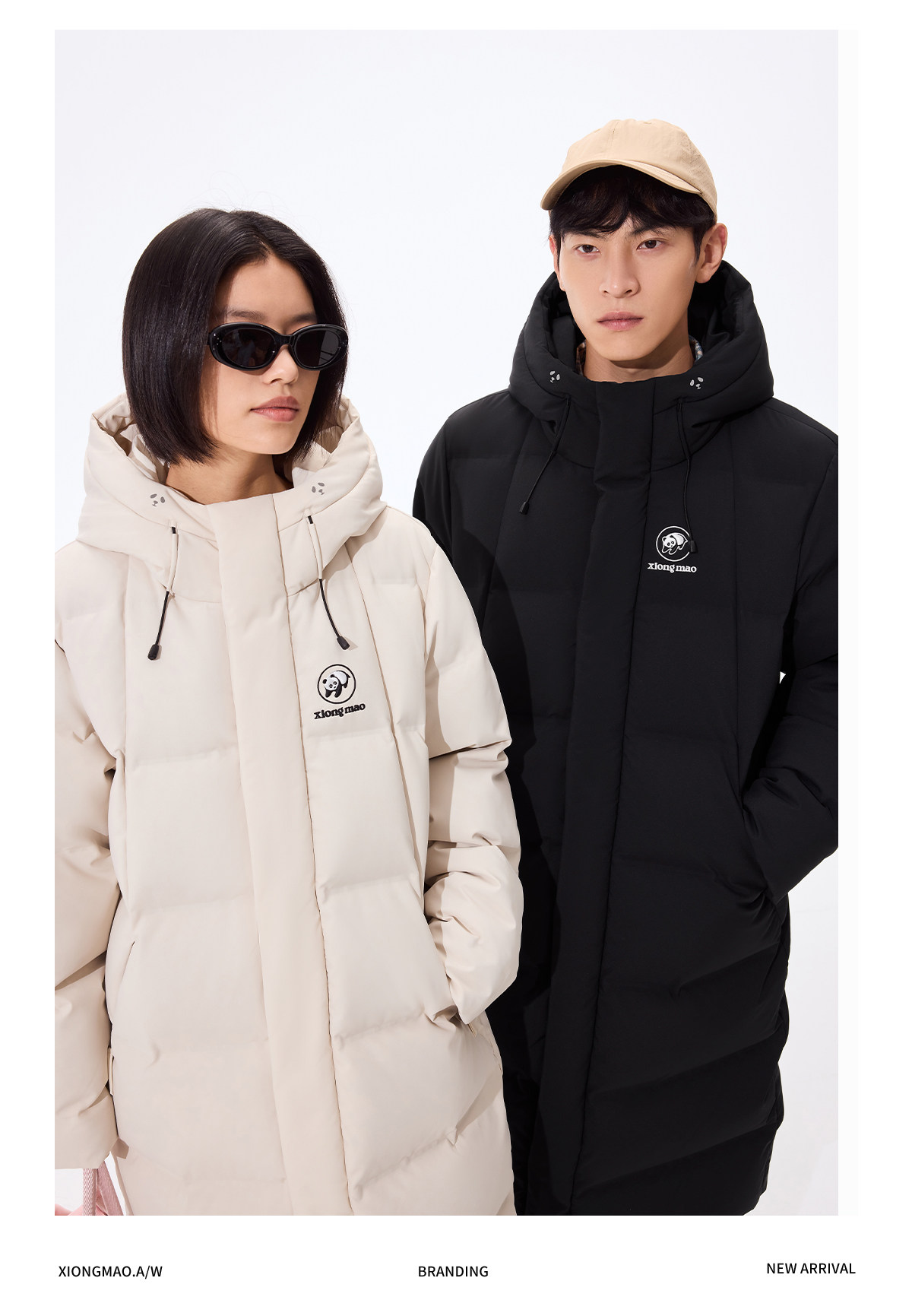 Camel Panda Long down Jacket for Women, New Winter Style for Men, Windproof, Thickened, Warm, Khaki, Stylish Winter Coat