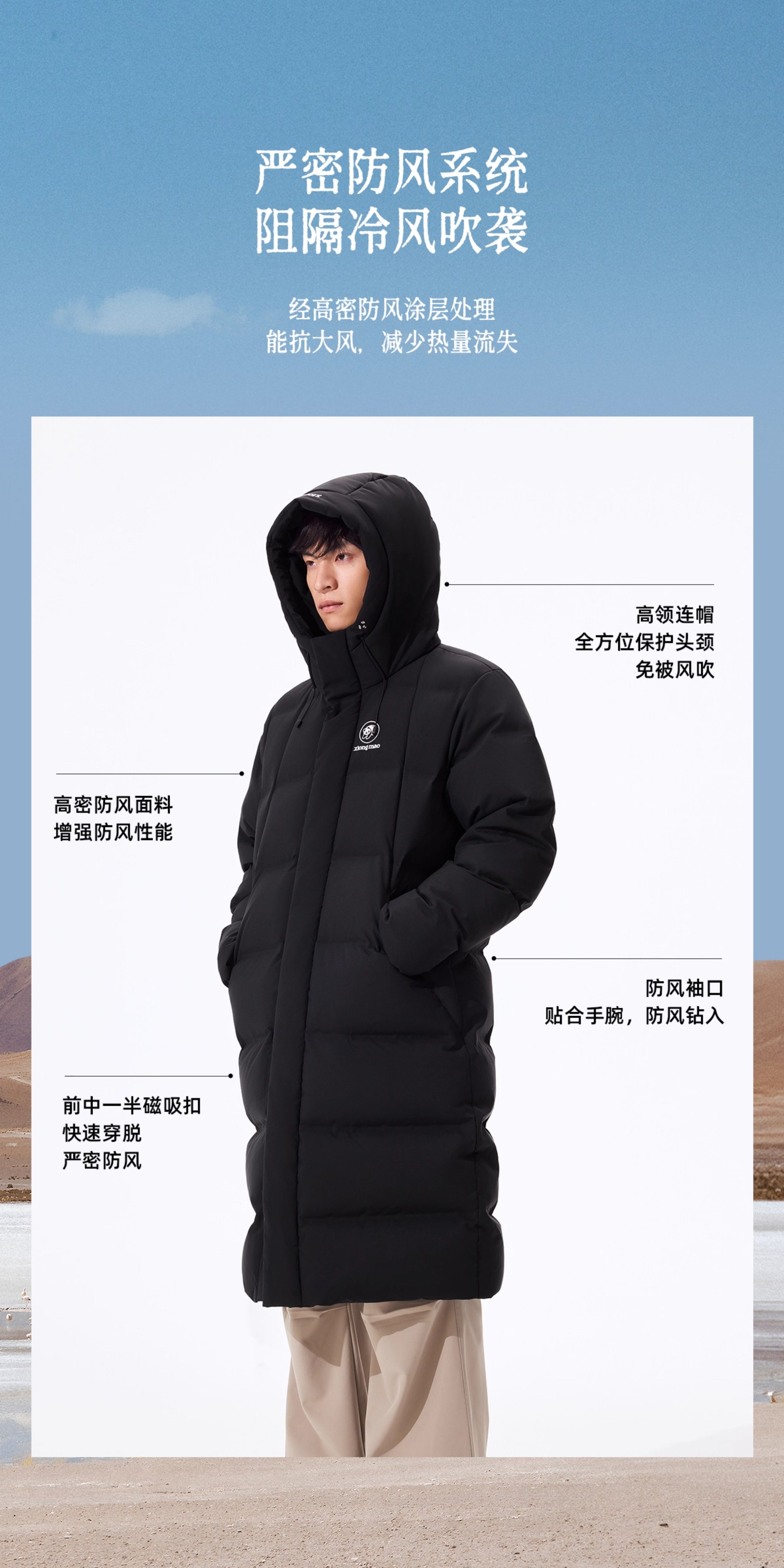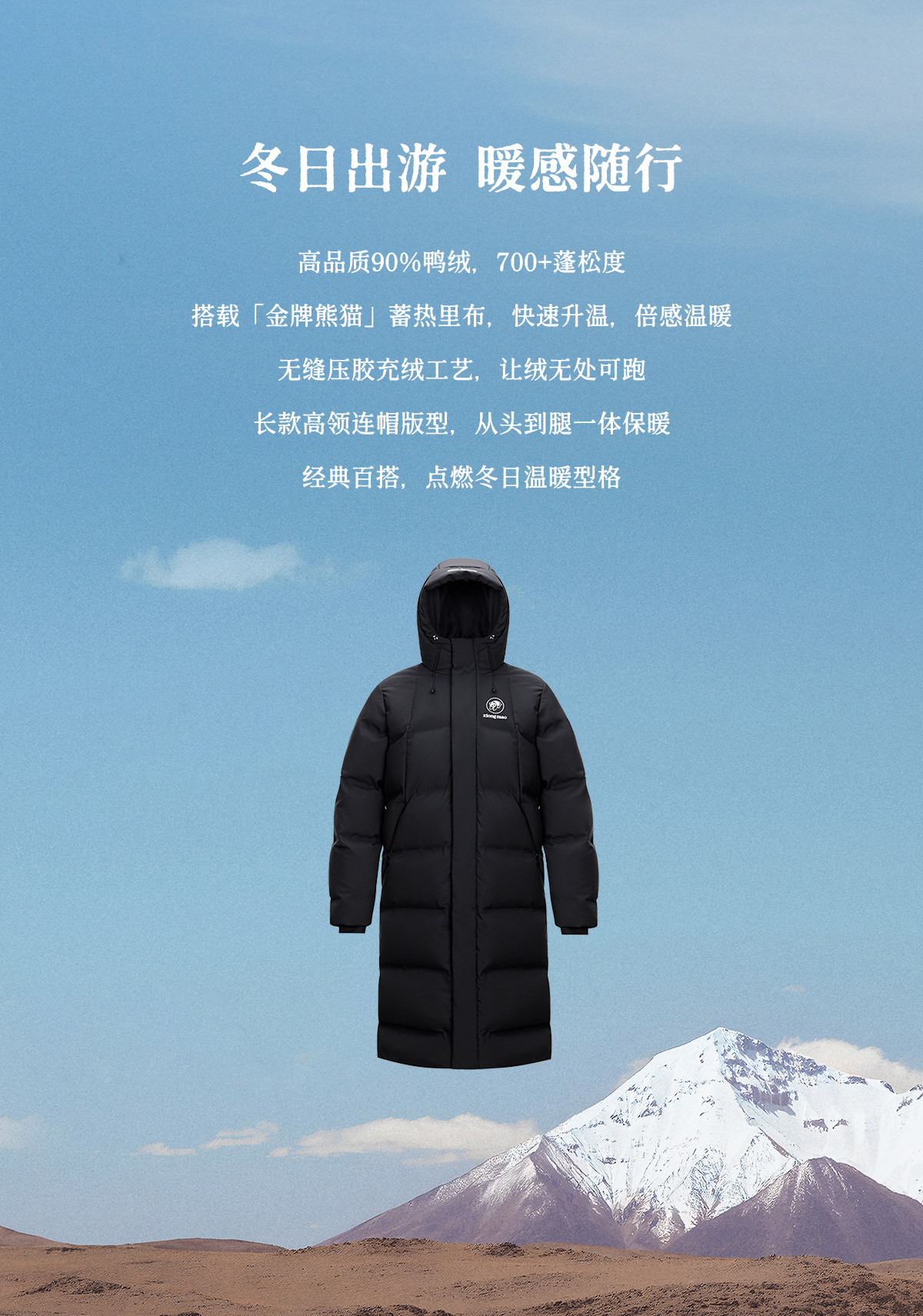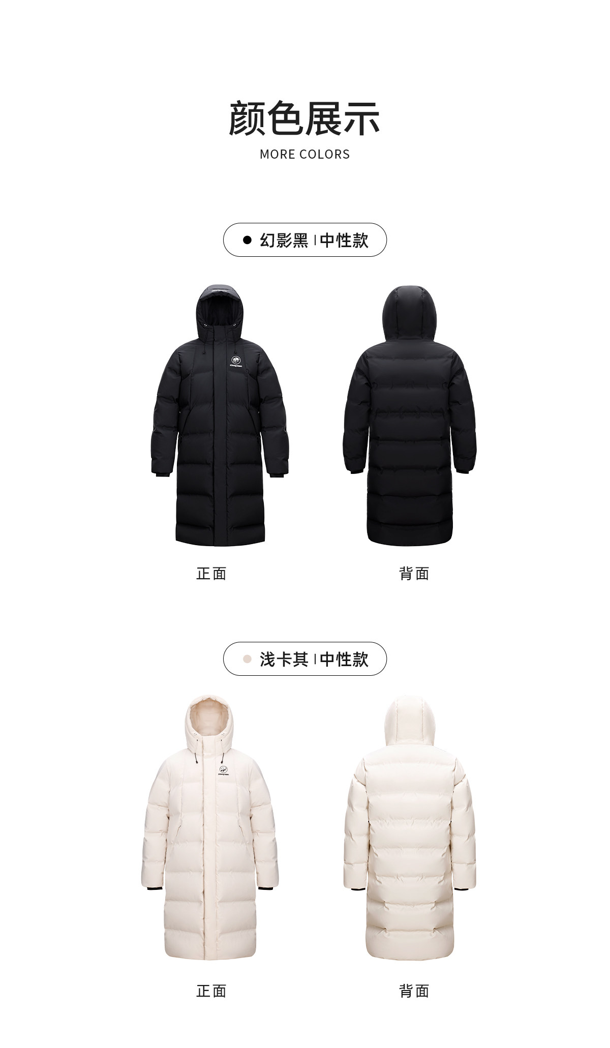 Camel Panda Long down Jacket for Women, New Winter Style for Men, Windproof, Thickened, Warm, Khaki, Stylish Winter Coat