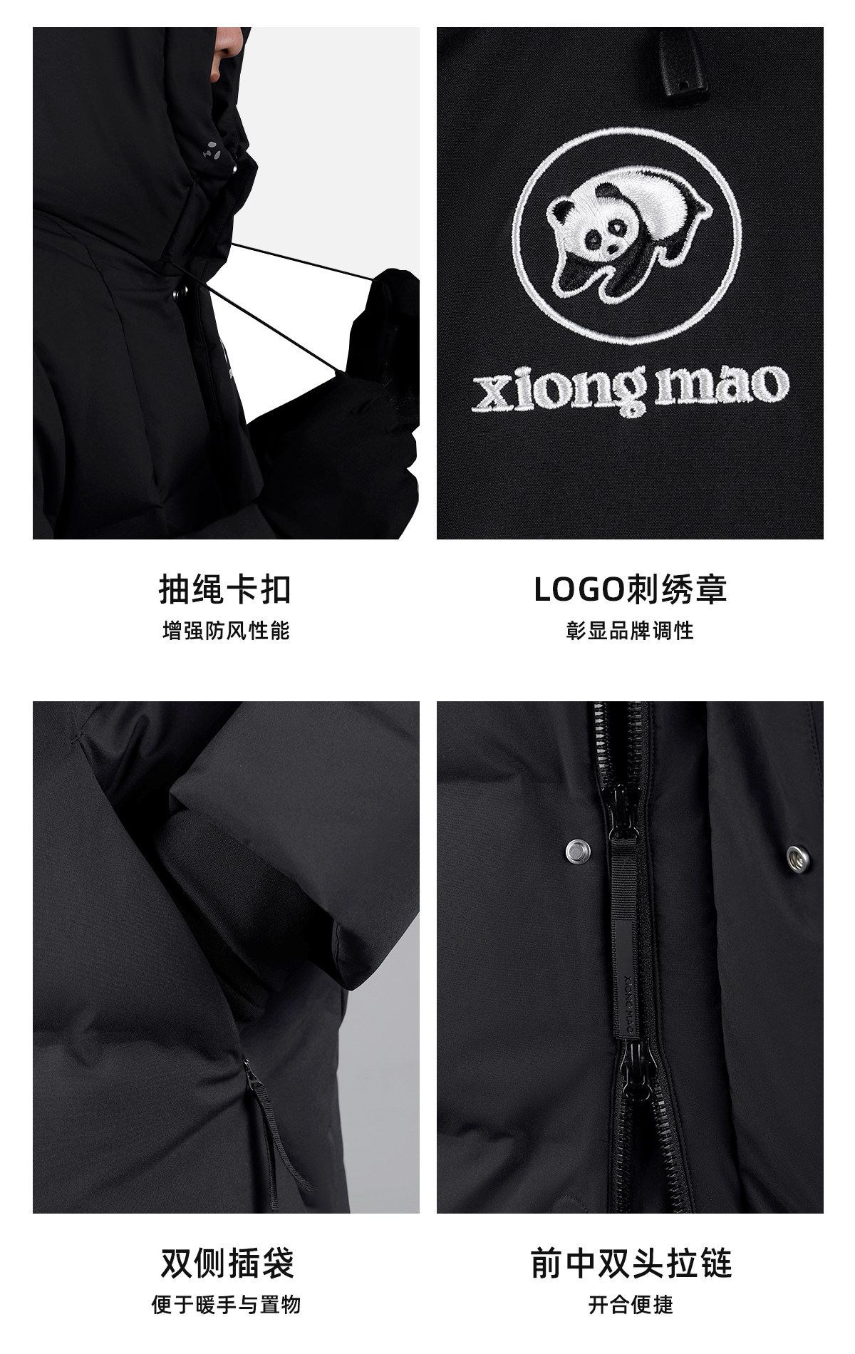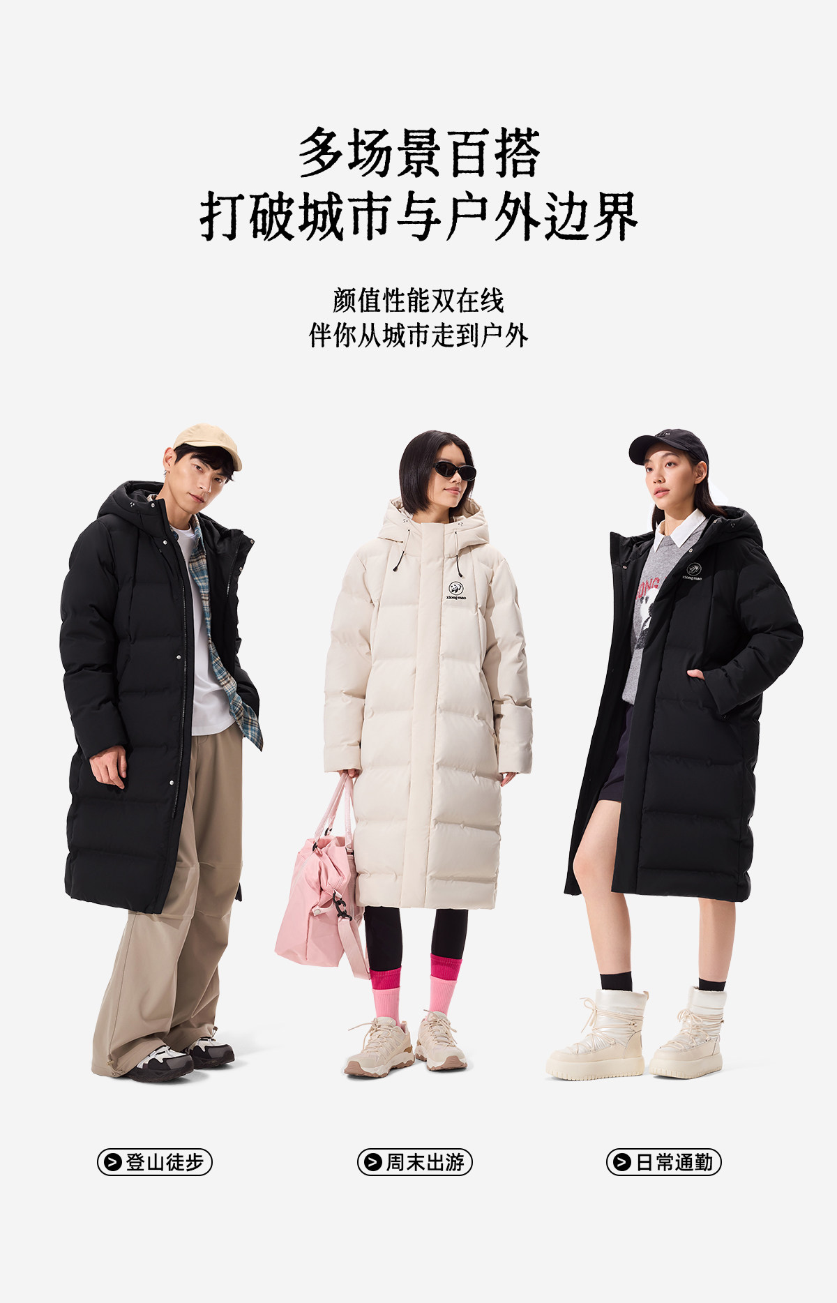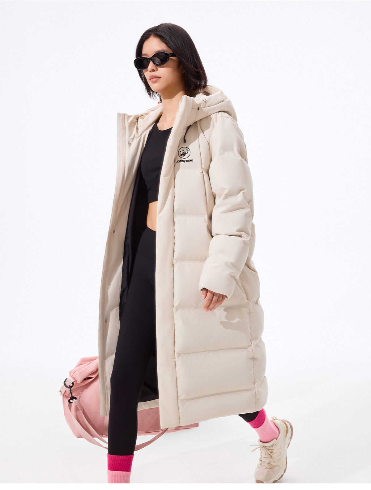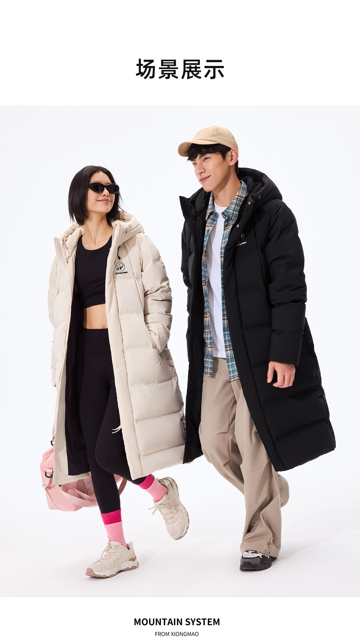 Camel Panda Long down Jacket for Women, New Winter Style for Men, Windproof, Thickened, Warm, Khaki, Stylish Winter Coat