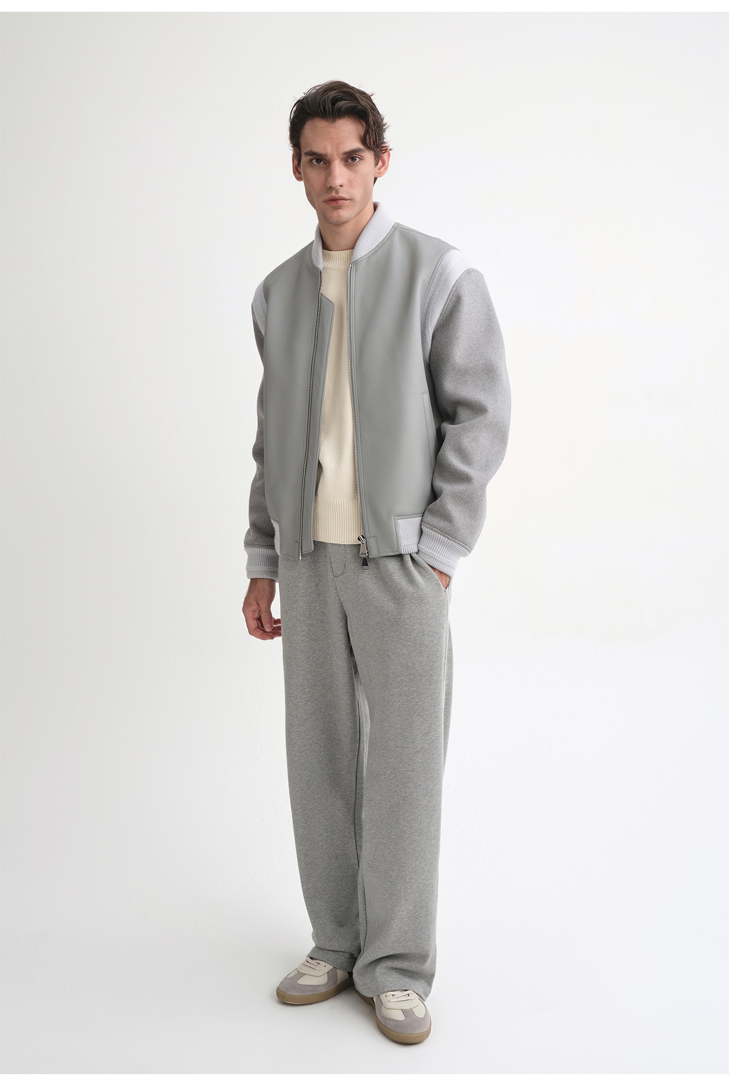 Roolrren Imported Lychee-Patterned Cowhide Leather Spliced with Sheep Wool Classic Versatile Baseball Jacket
