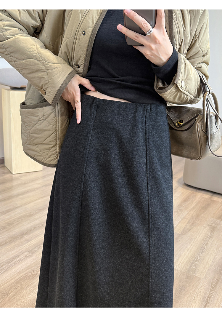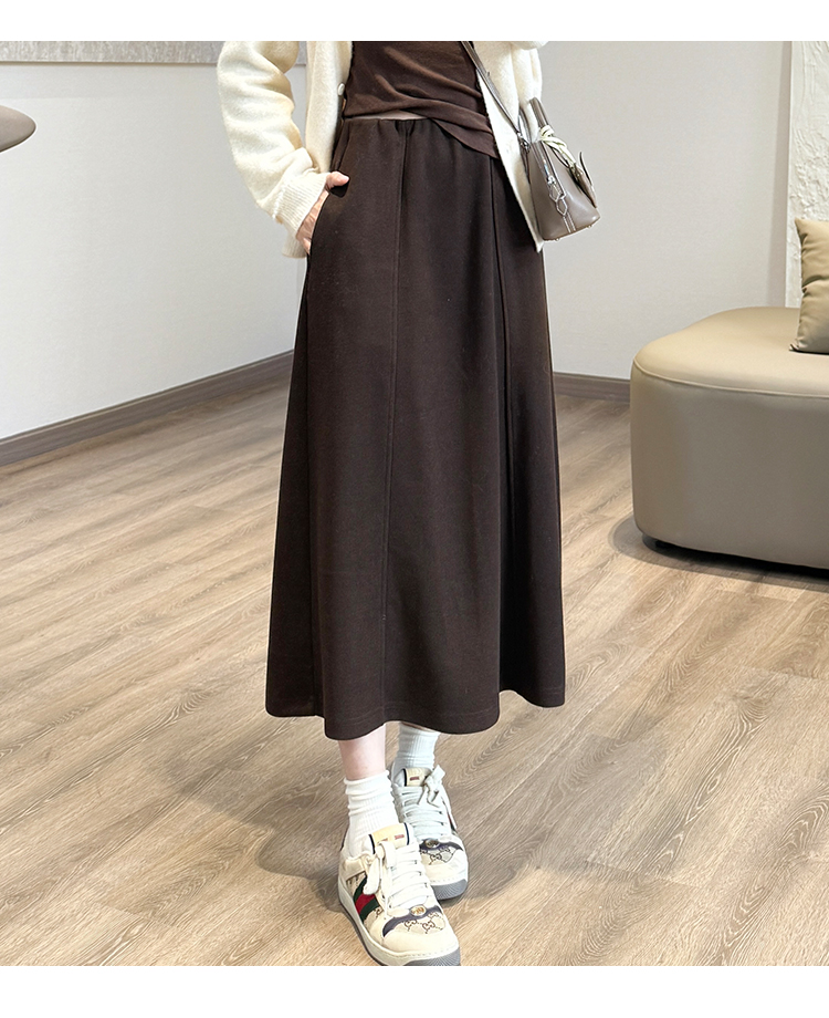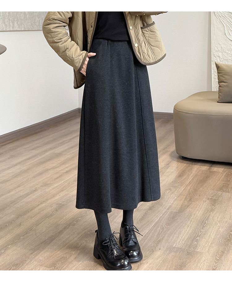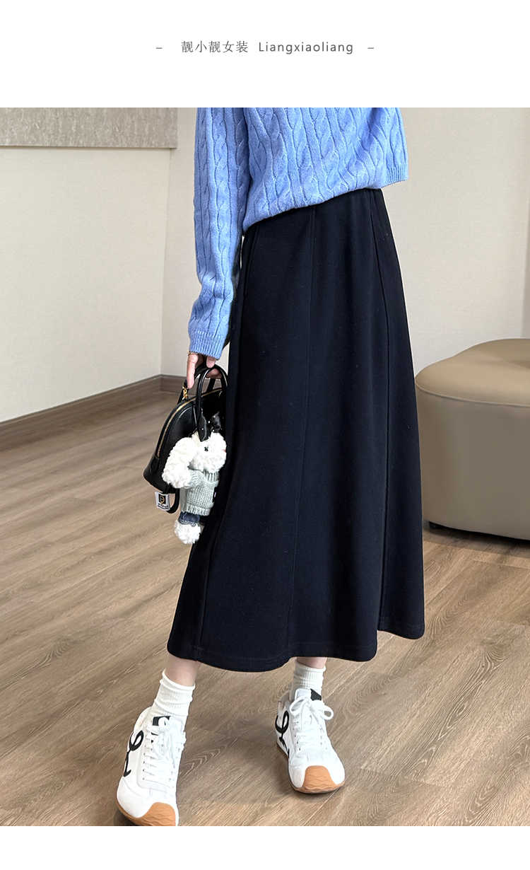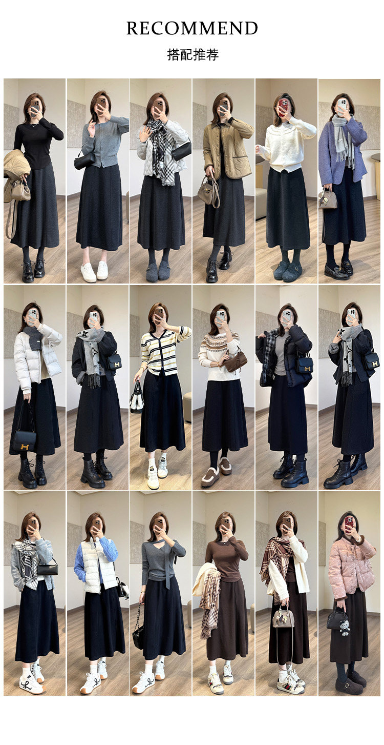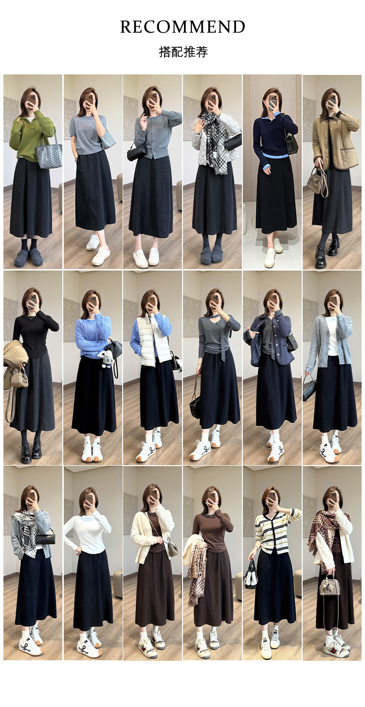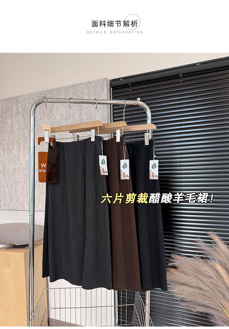 Liang Xiao Liang Acetate Wool 6-Piece Skirt [One-Click Slimming] Folded Elastic Waist Autumn and Winter Long Skirt with Pockets Half Skirt