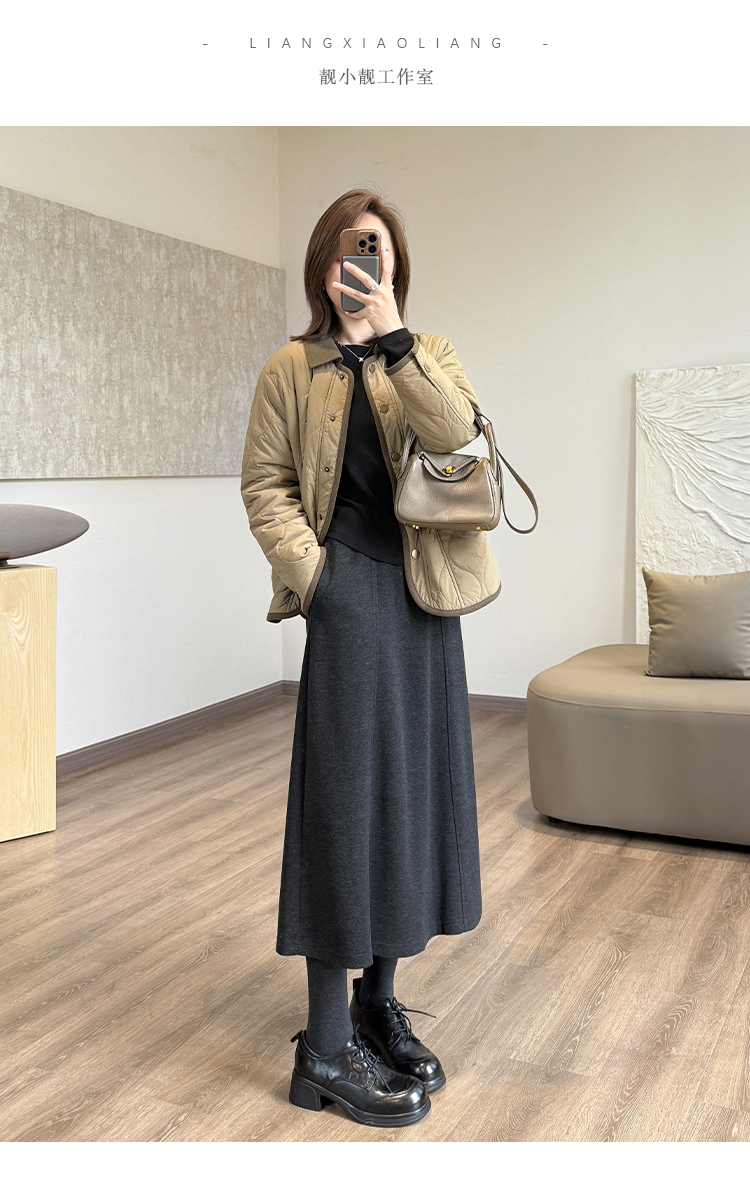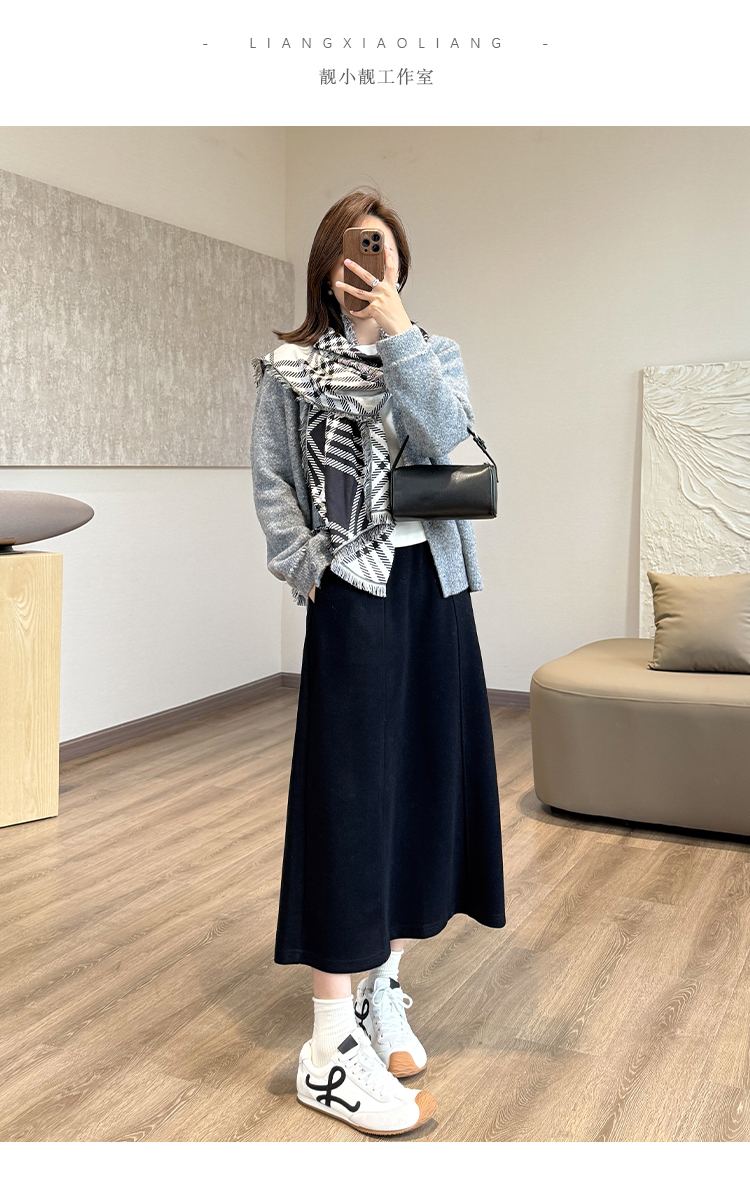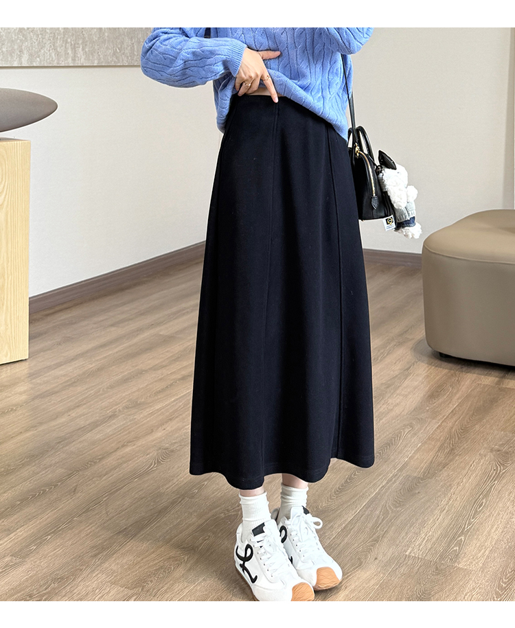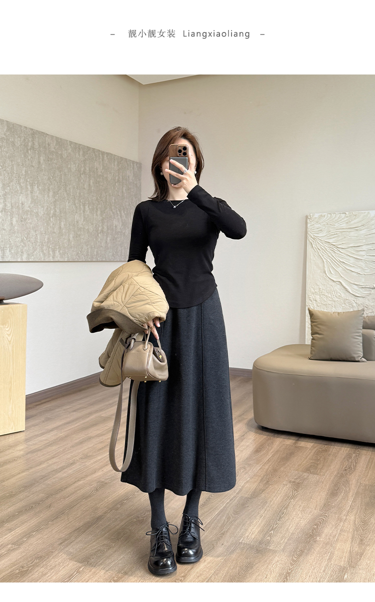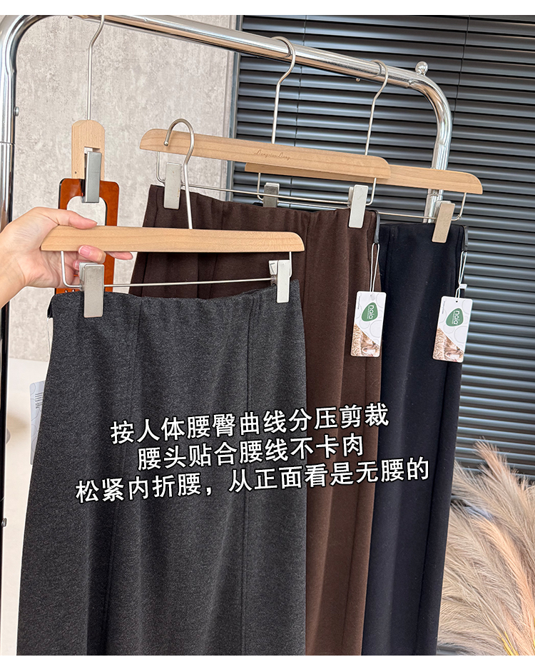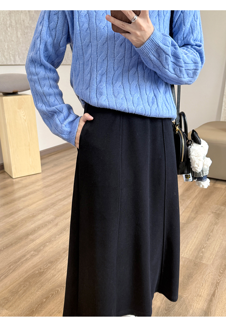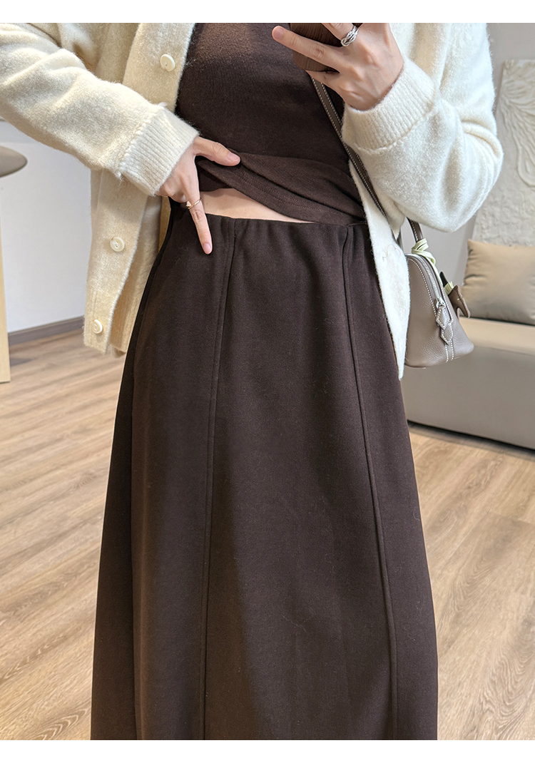 Liang Xiao Liang Acetate Wool 6-Piece Skirt [One-Click Slimming] Folded Elastic Waist Autumn and Winter Long Skirt with Pockets Half Skirt
