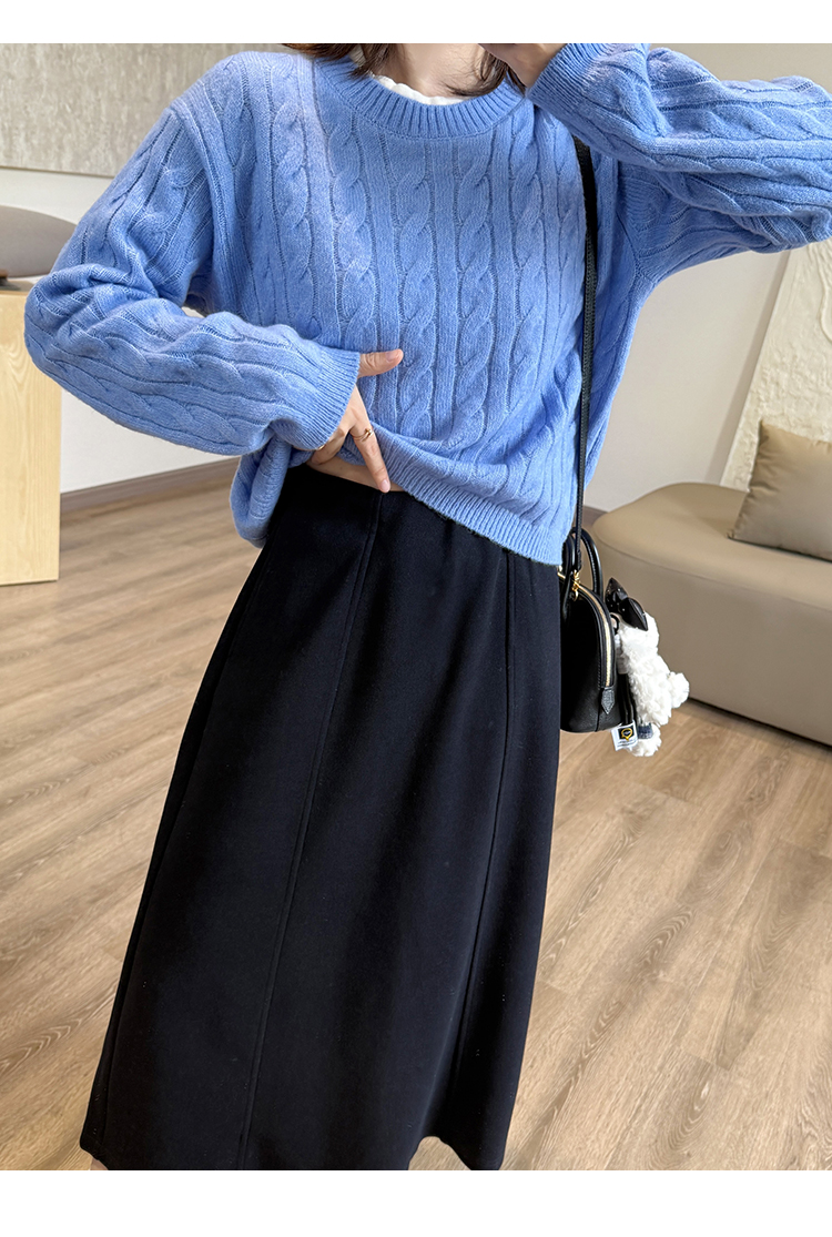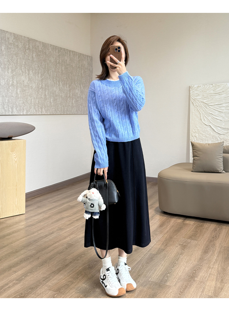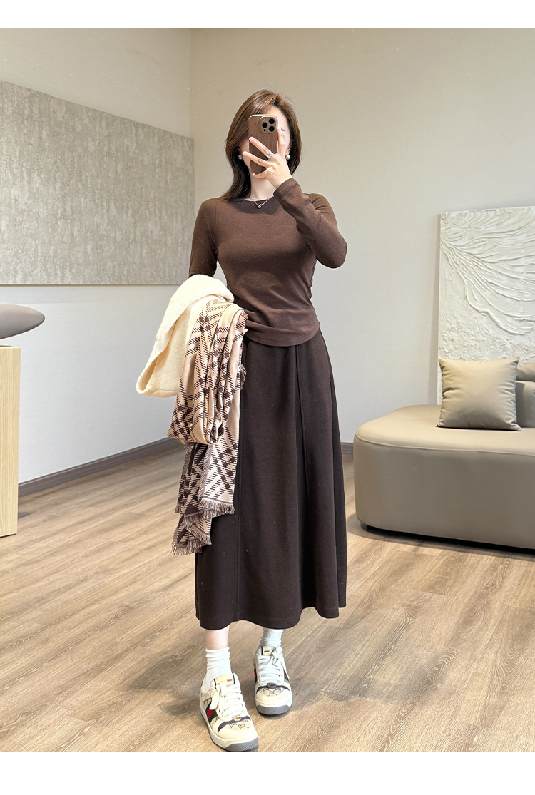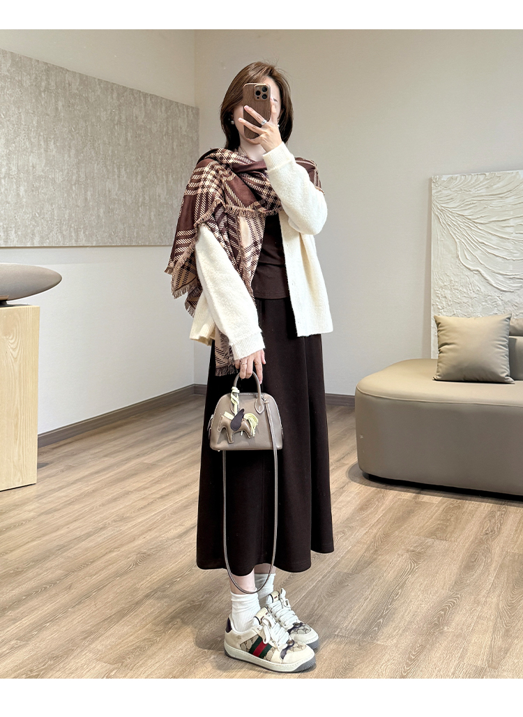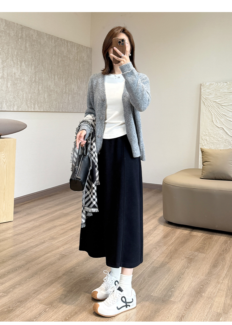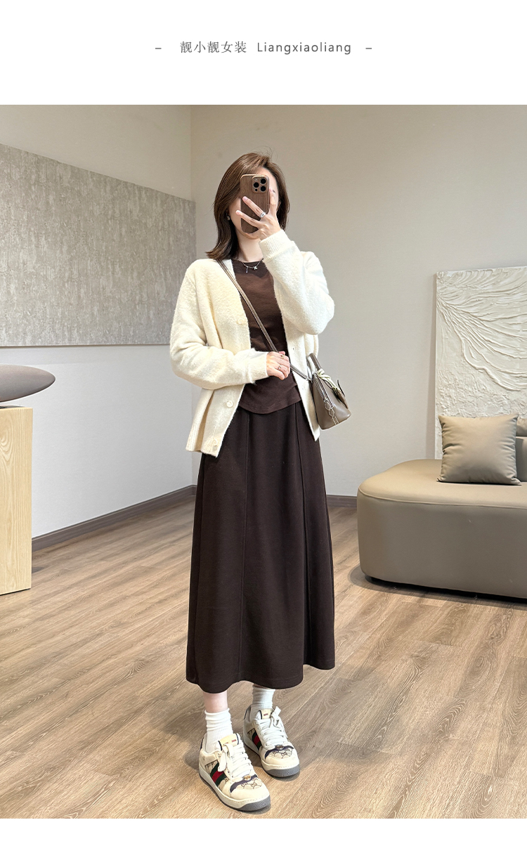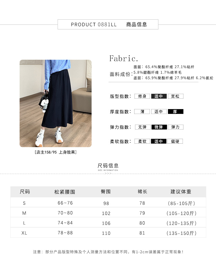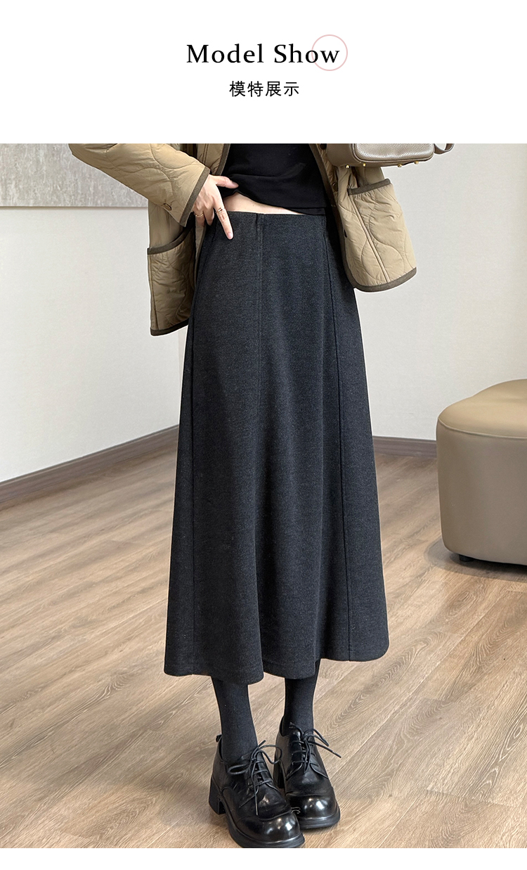 Liang Xiao Liang Acetate Wool 6-Piece Skirt [One-Click Slimming] Folded Elastic Waist Autumn and Winter Long Skirt with Pockets Half Skirt