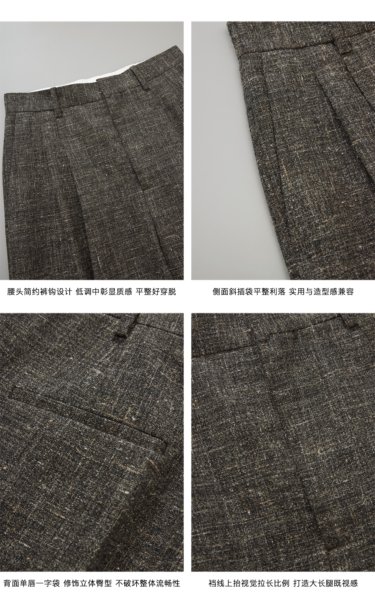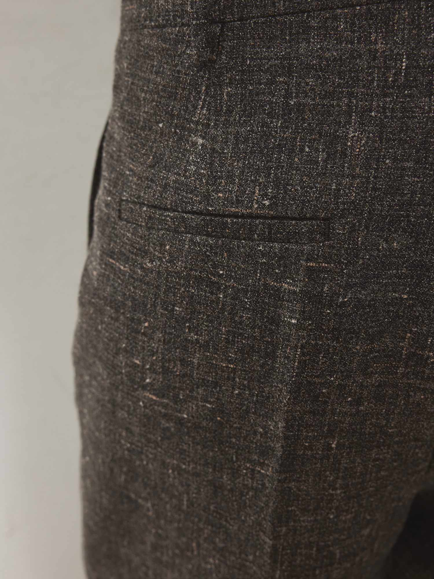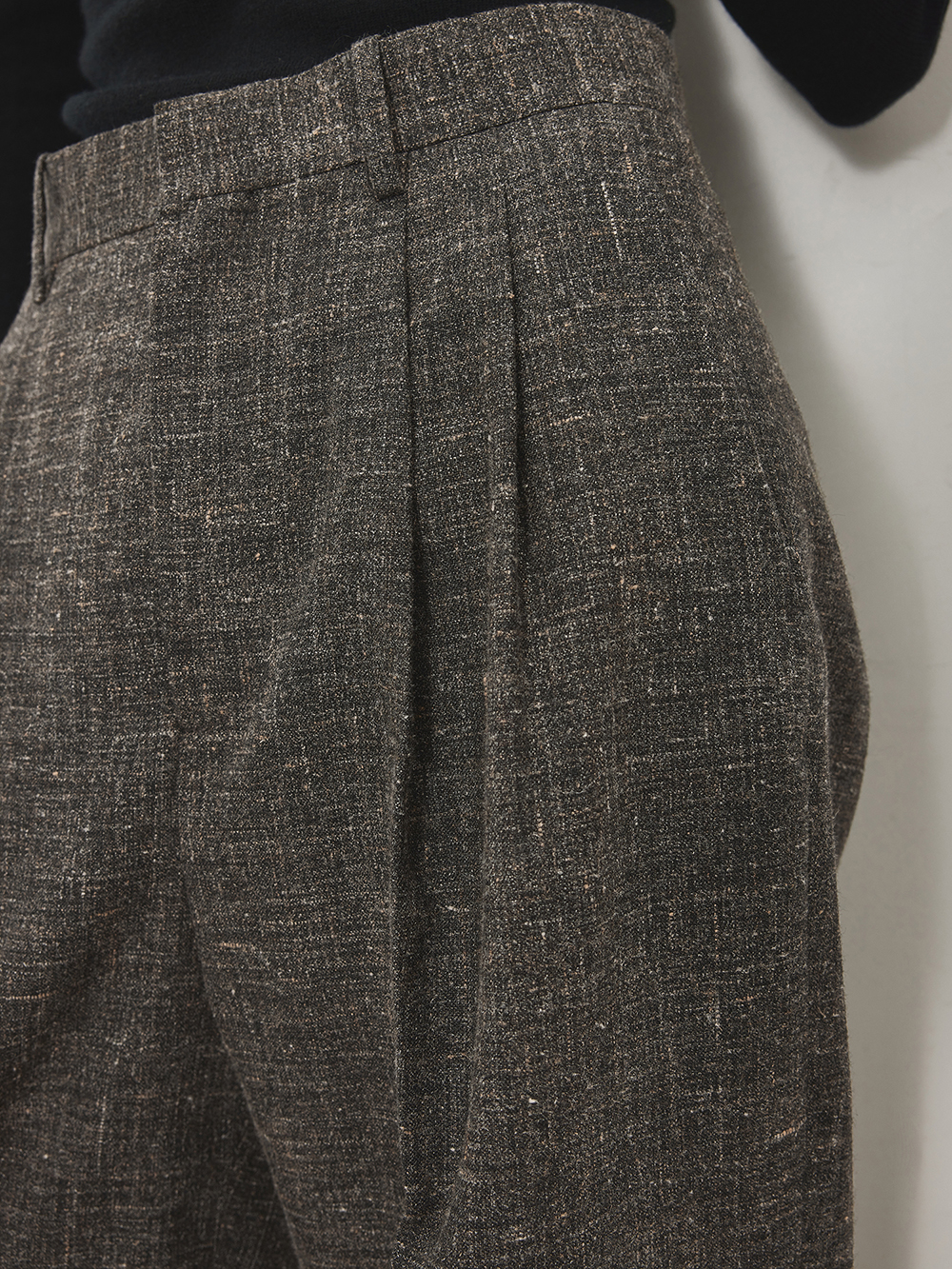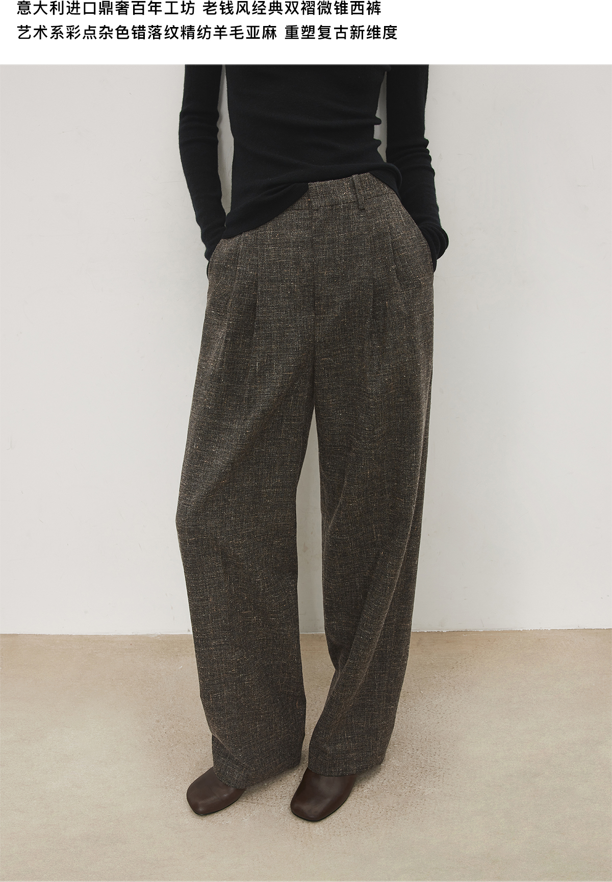 Chicjoc Italian Century-Old Luxury Vtg Colorful Textured Fine-Spun Wool Linen Classic Micro-Tapered Dress Pants
