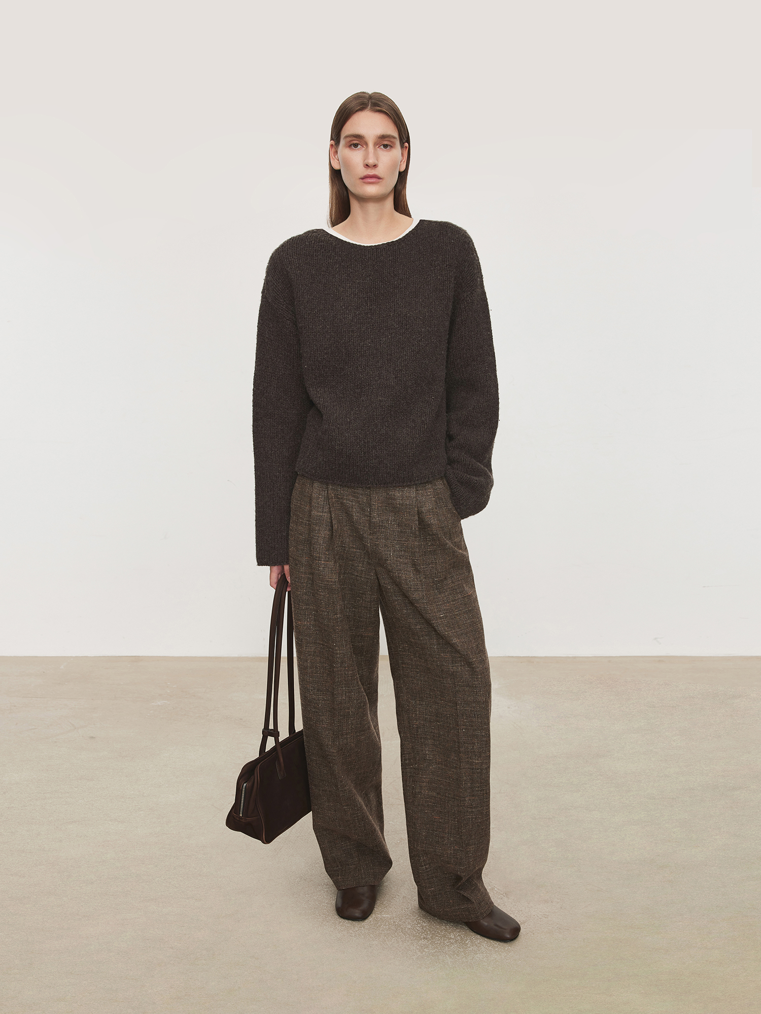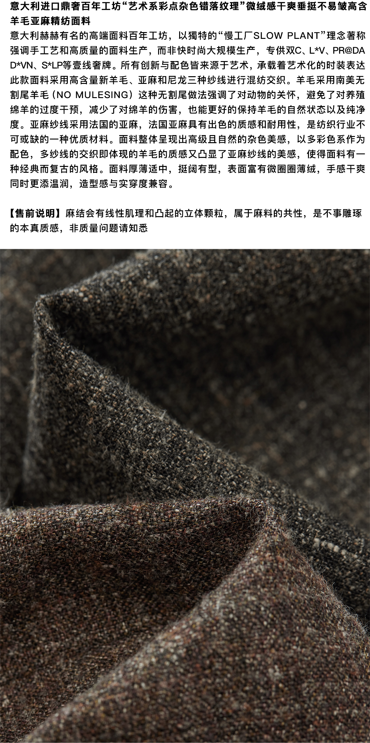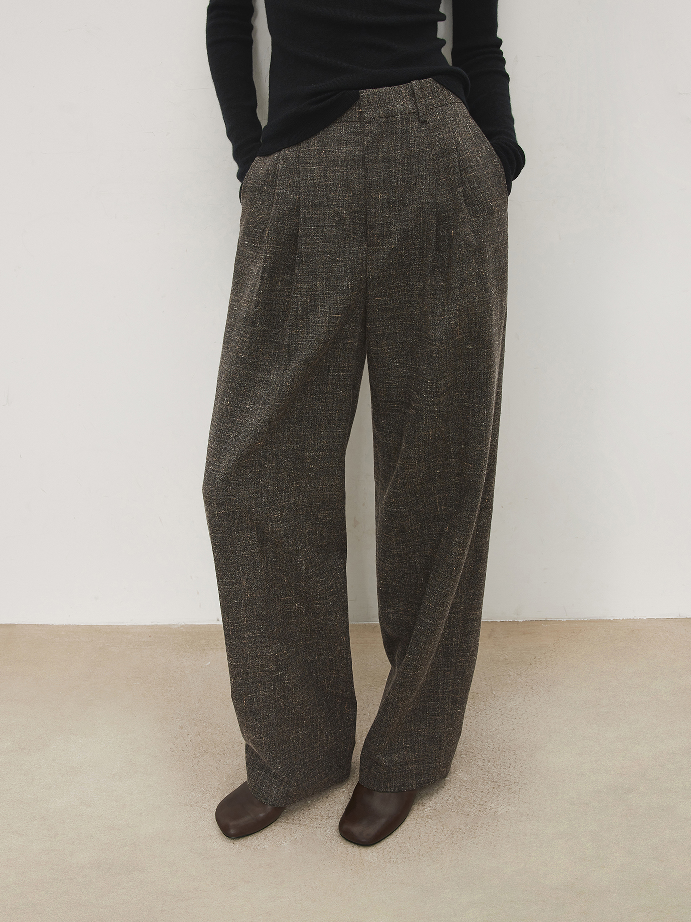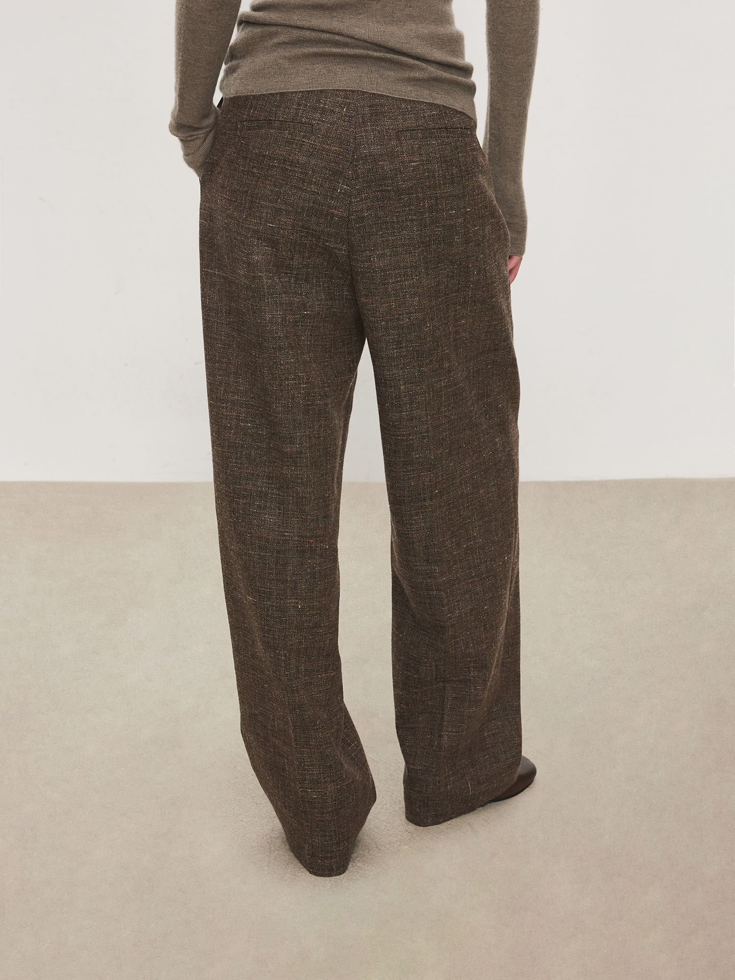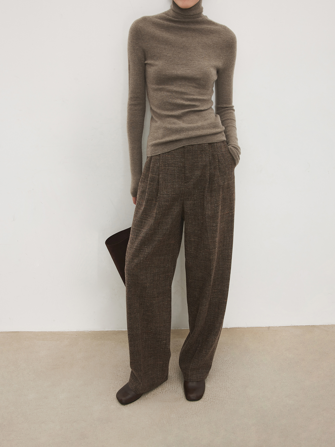 Chicjoc Italian Century-Old Luxury Vtg Colorful Textured Fine-Spun Wool Linen Classic Micro-Tapered Dress Pants