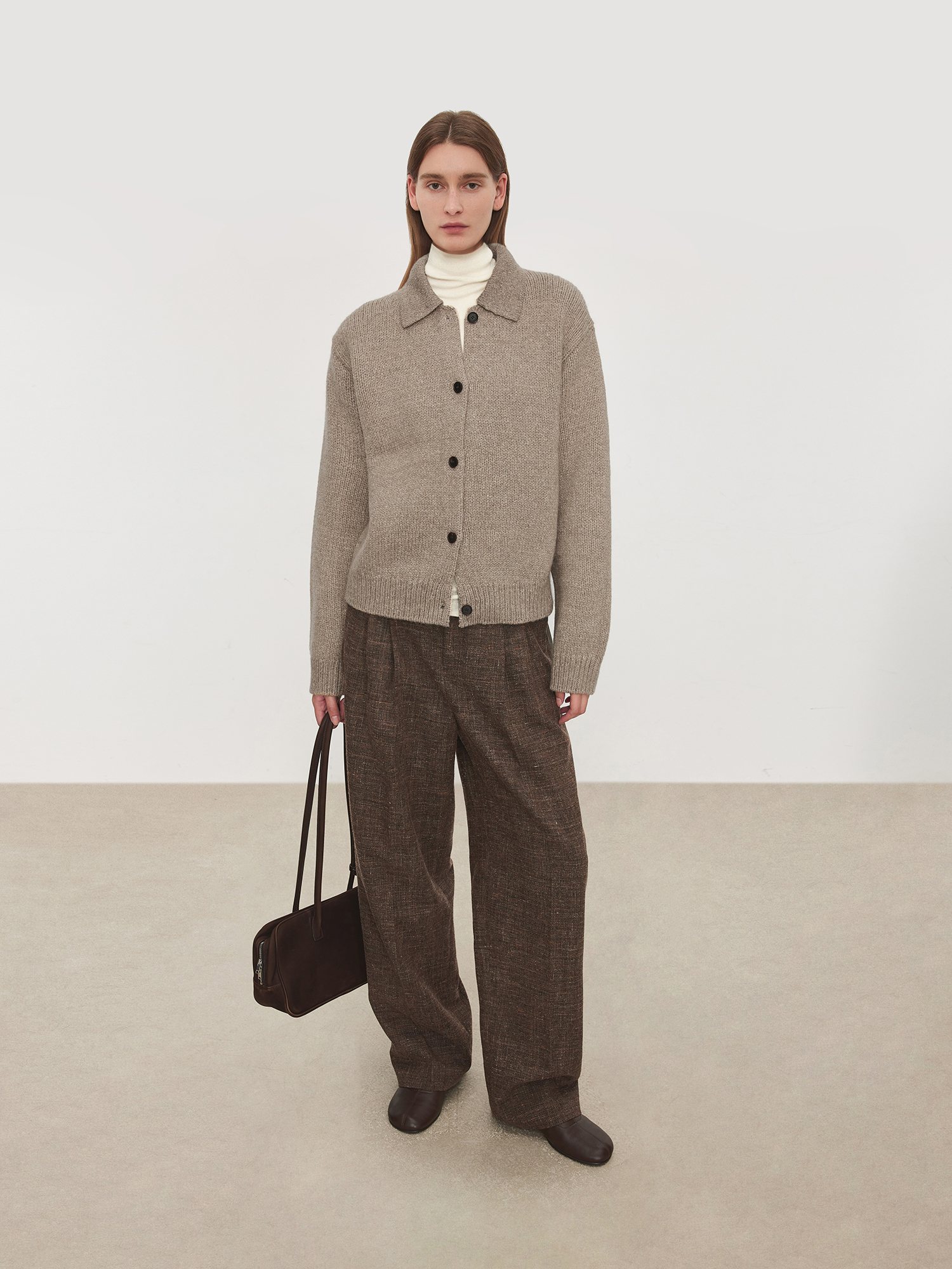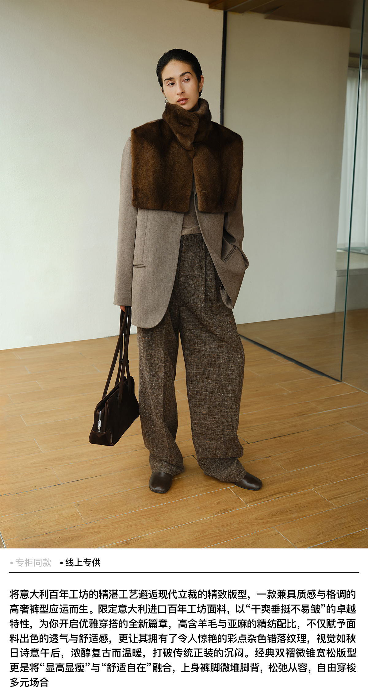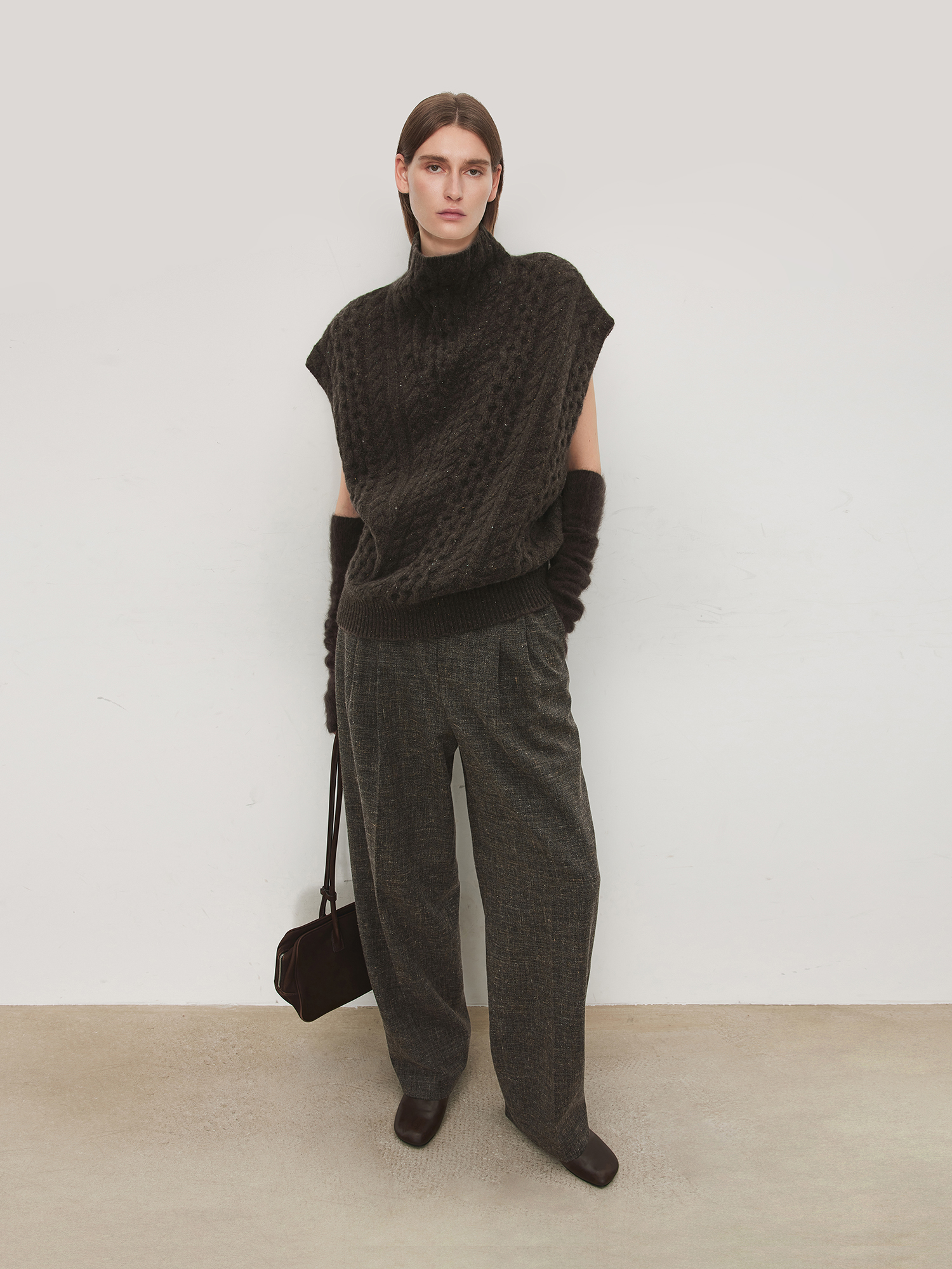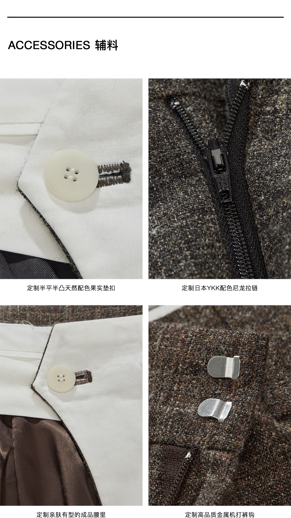Chicjoc Italian Century-Old Luxury Vtg Colorful Textured Fine-Spun Wool Linen Classic Micro-Tapered Dress Pants