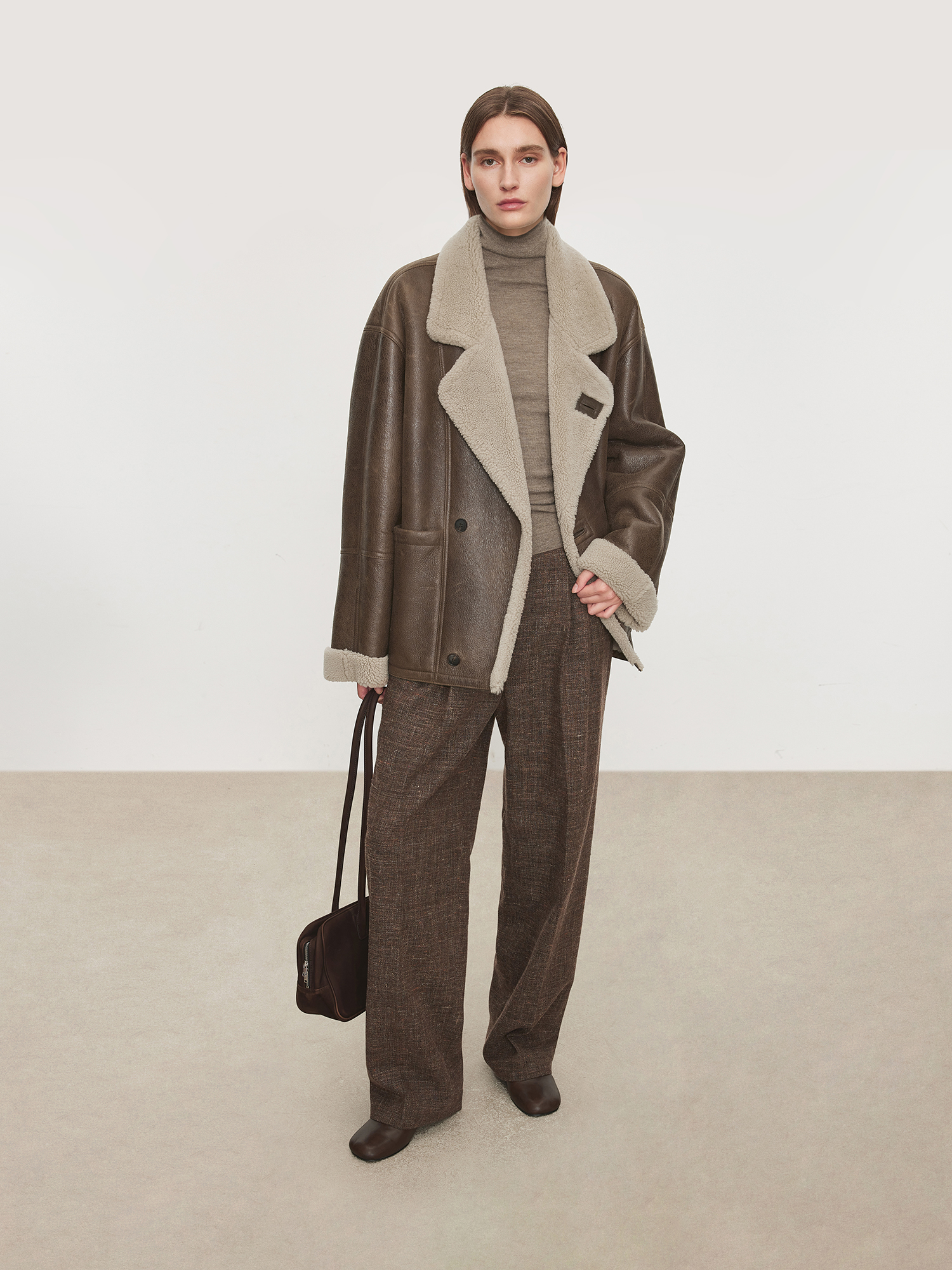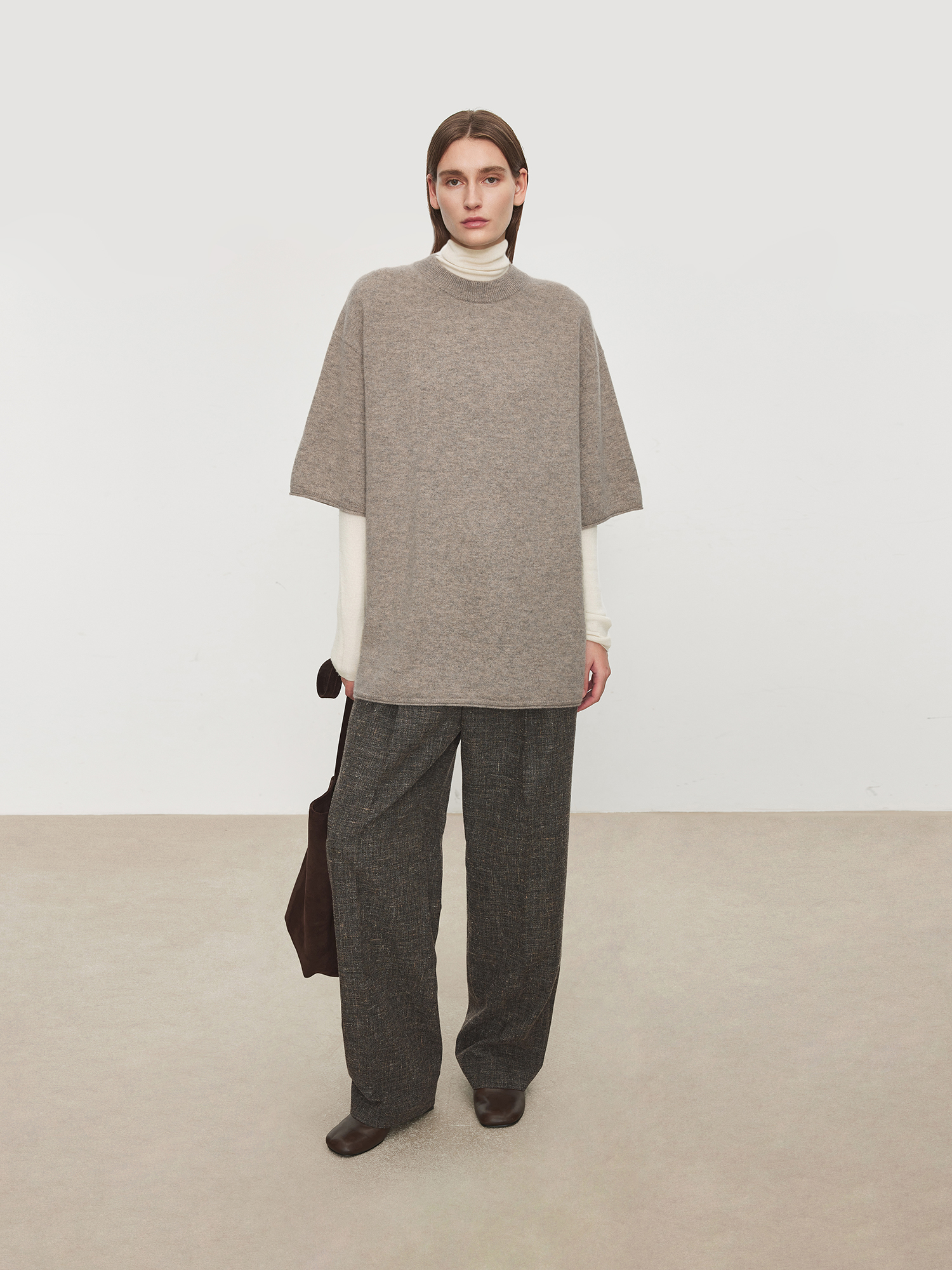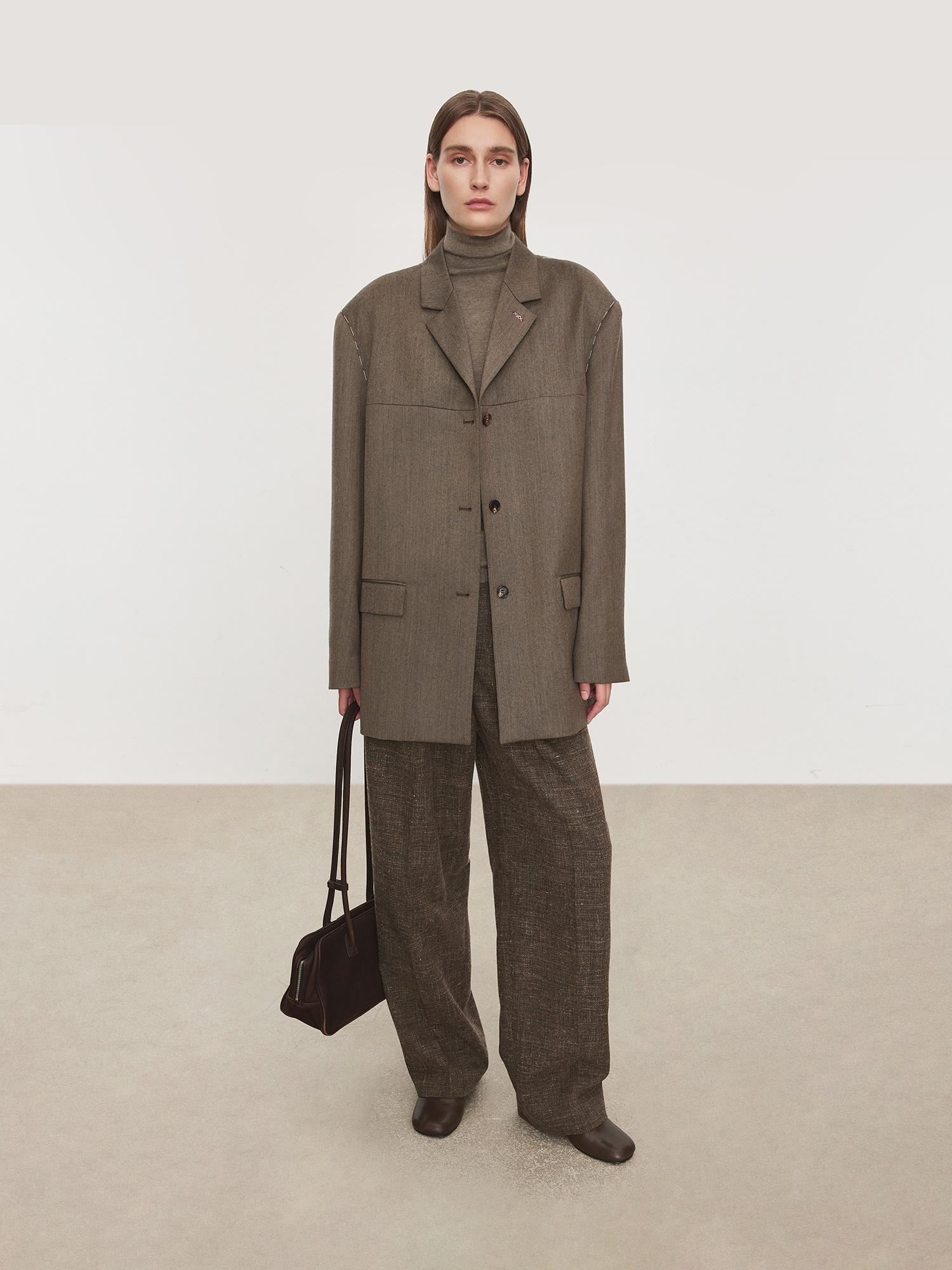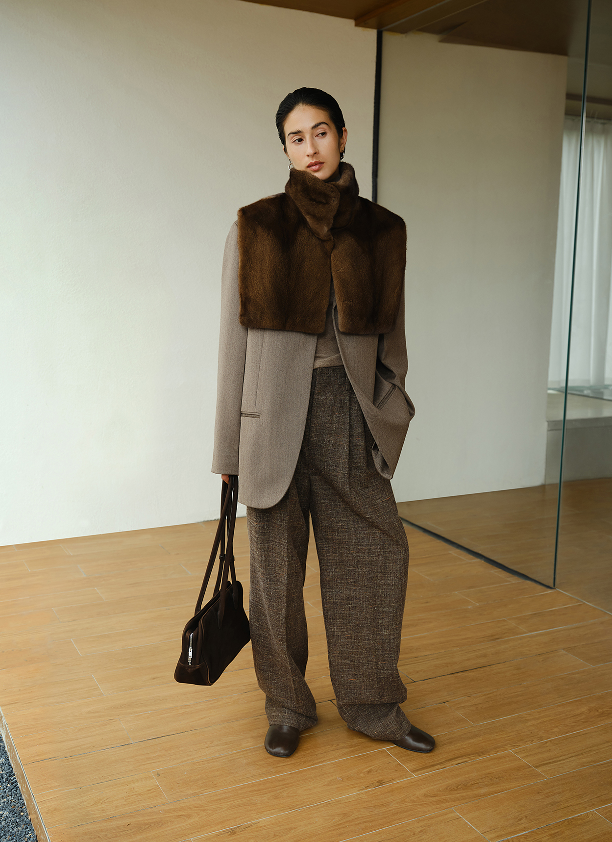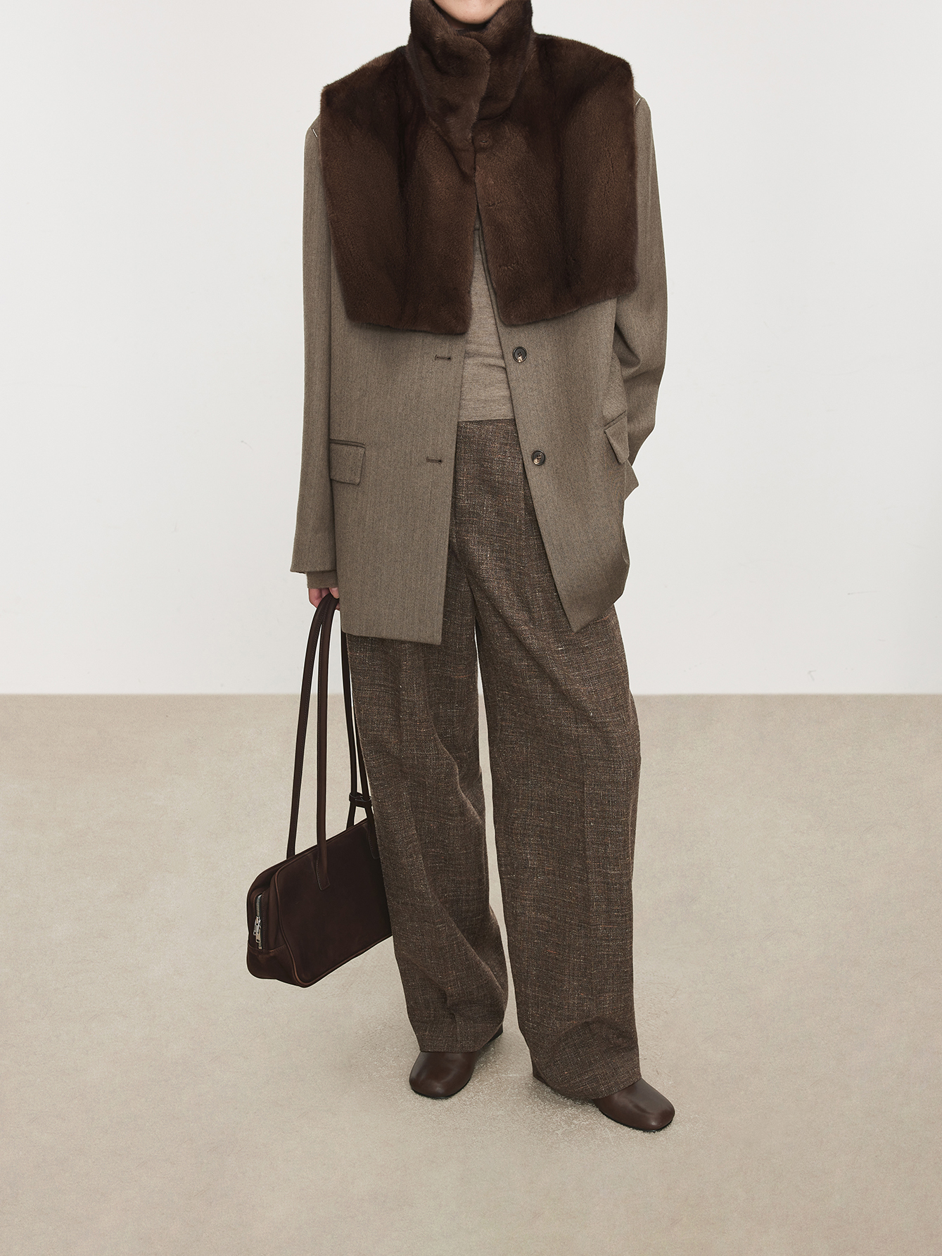 Chicjoc Italian Century-Old Luxury Vtg Colorful Textured Fine-Spun Wool Linen Classic Micro-Tapered Dress Pants