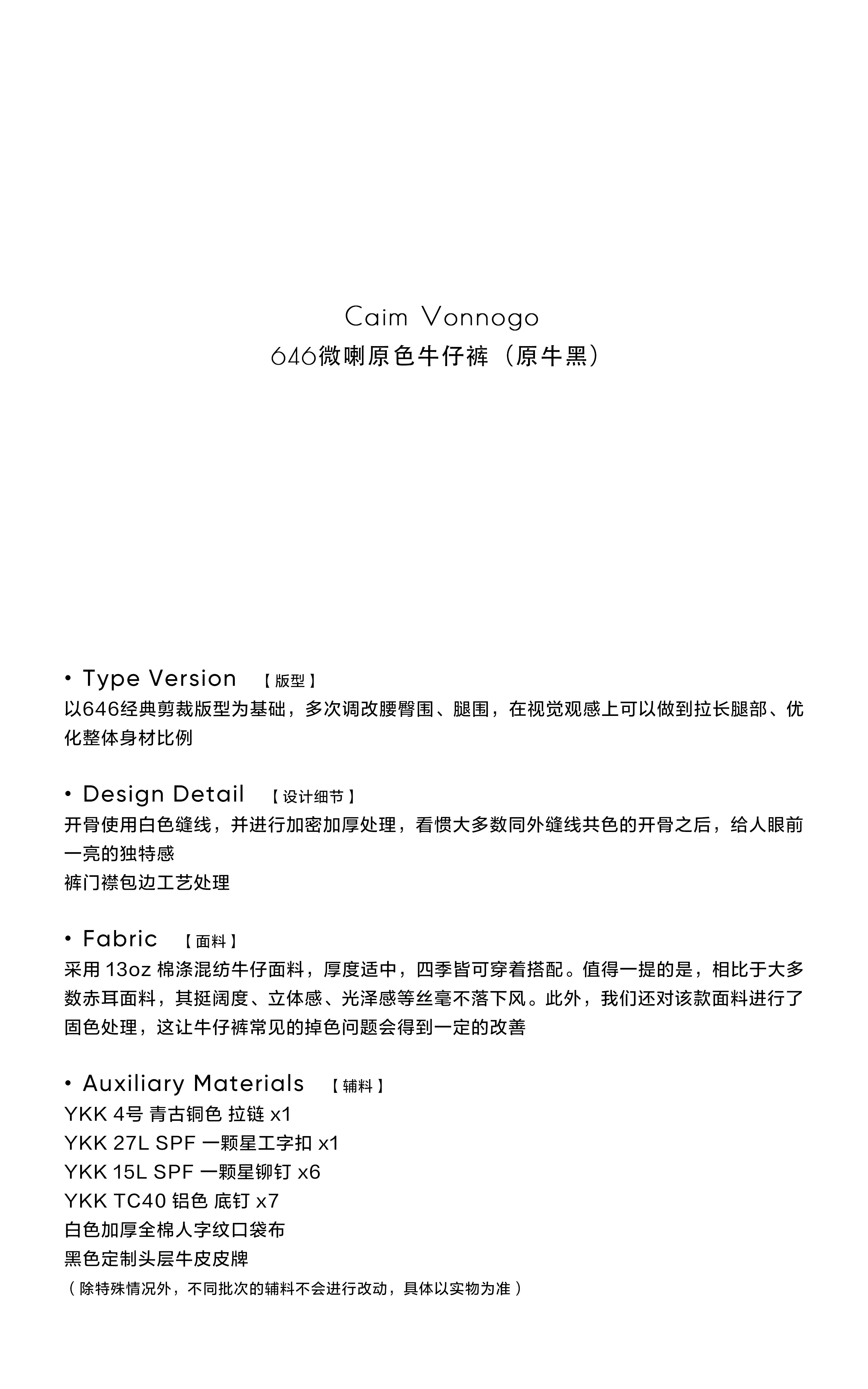 Caim Vonnogo 646 Micro-Flared Raw Denim 13-Ounce Versatile Black Washed and Color-Fixed Jeans