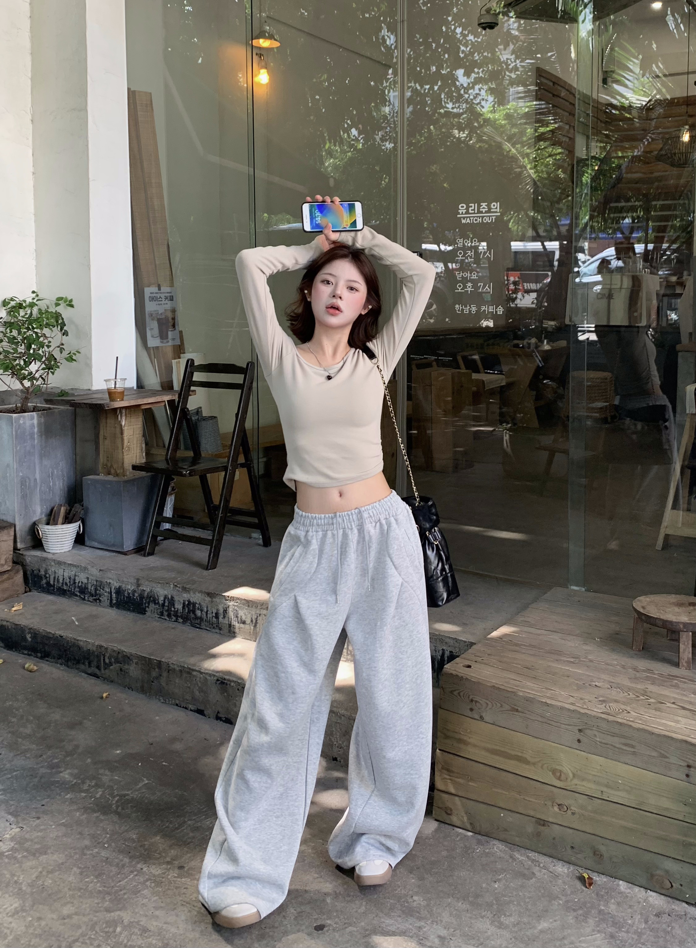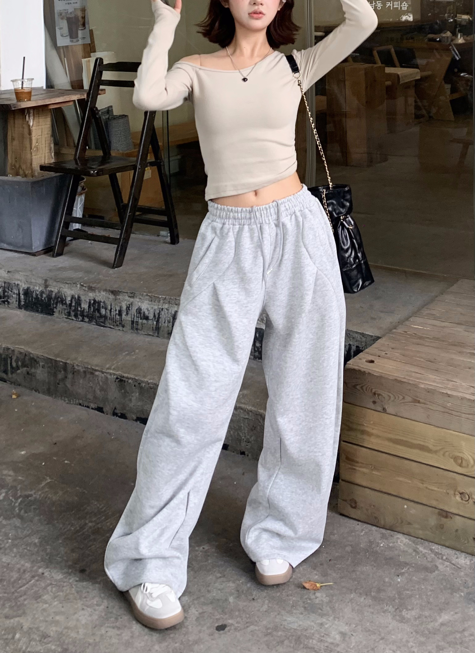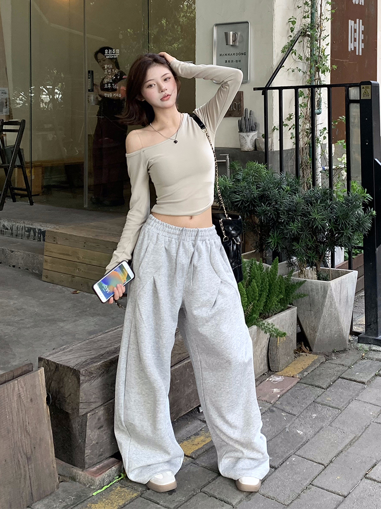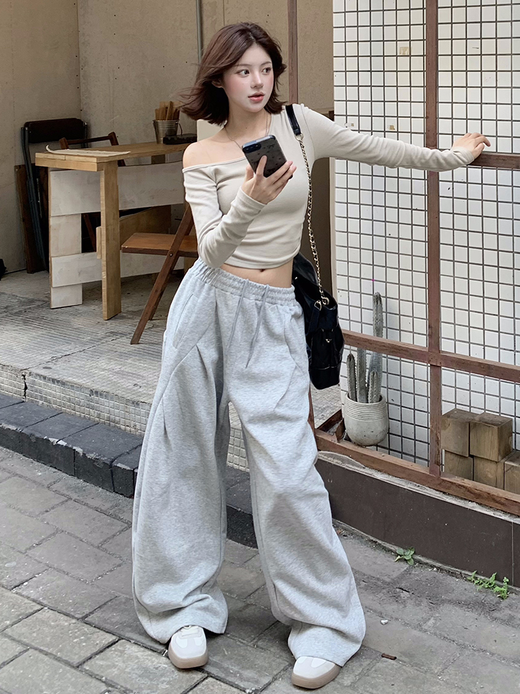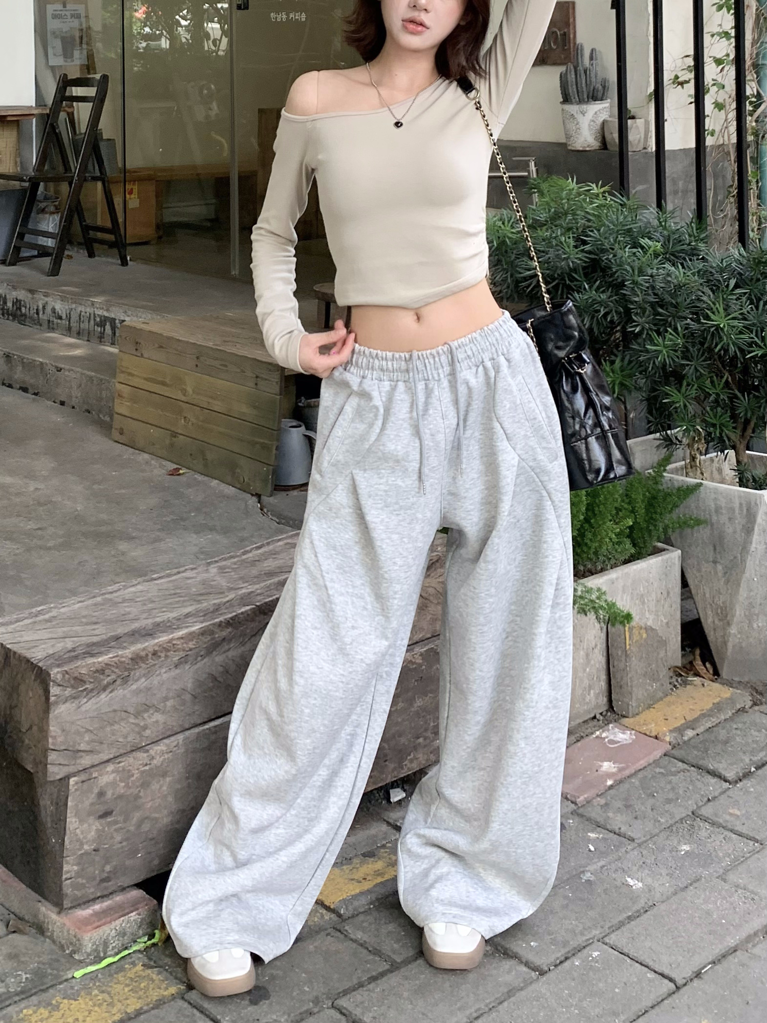 American Retro Gray Sweatpants for Women, New Loose Casual Versatile Straight-Leg Wide-Leg Pants, High-Waisted Slimming Floor-Length Pants