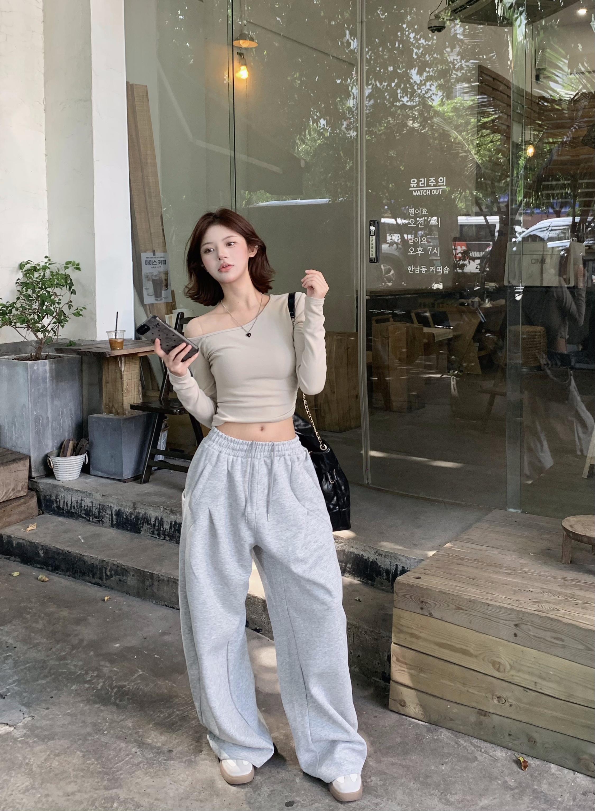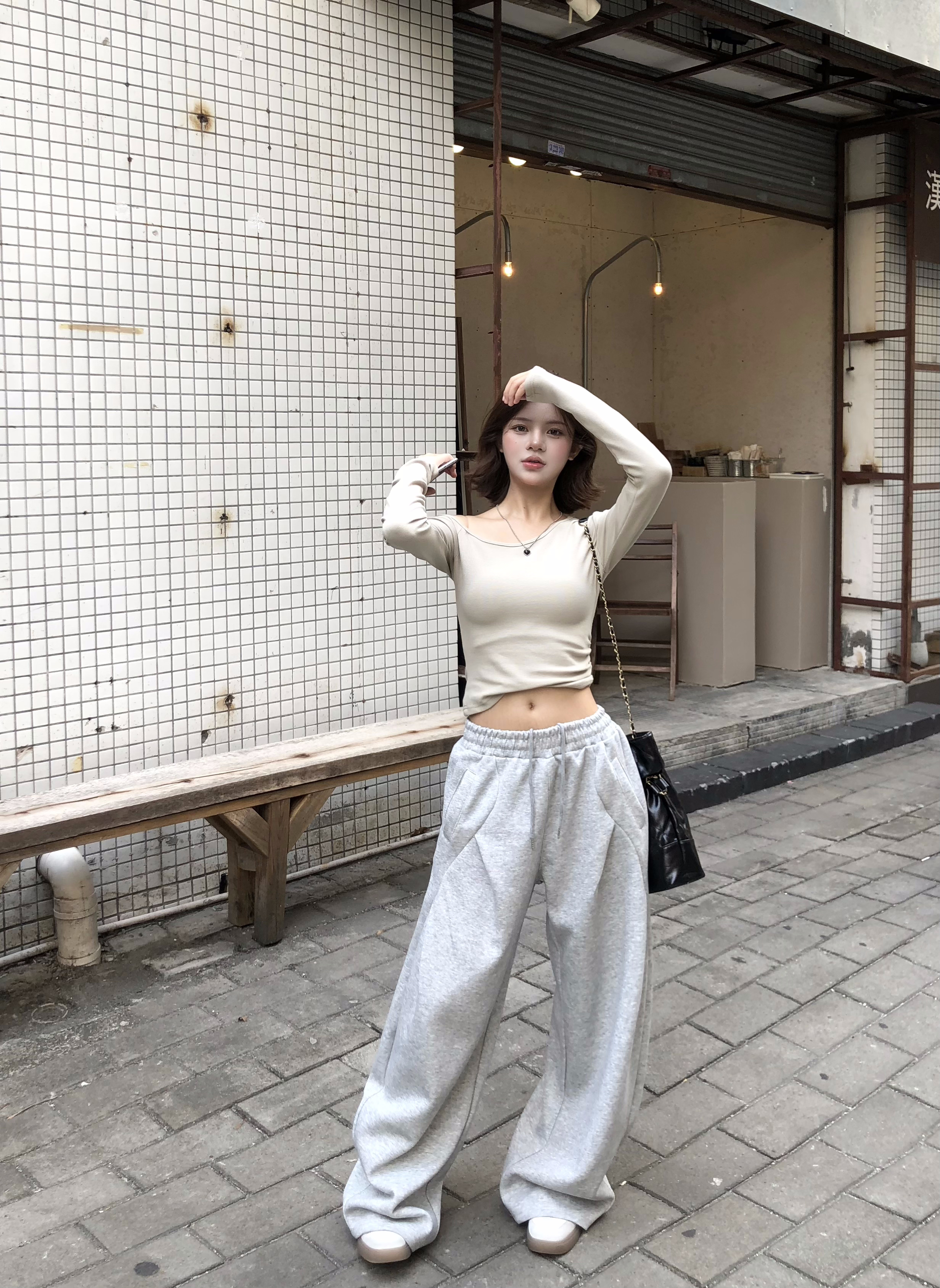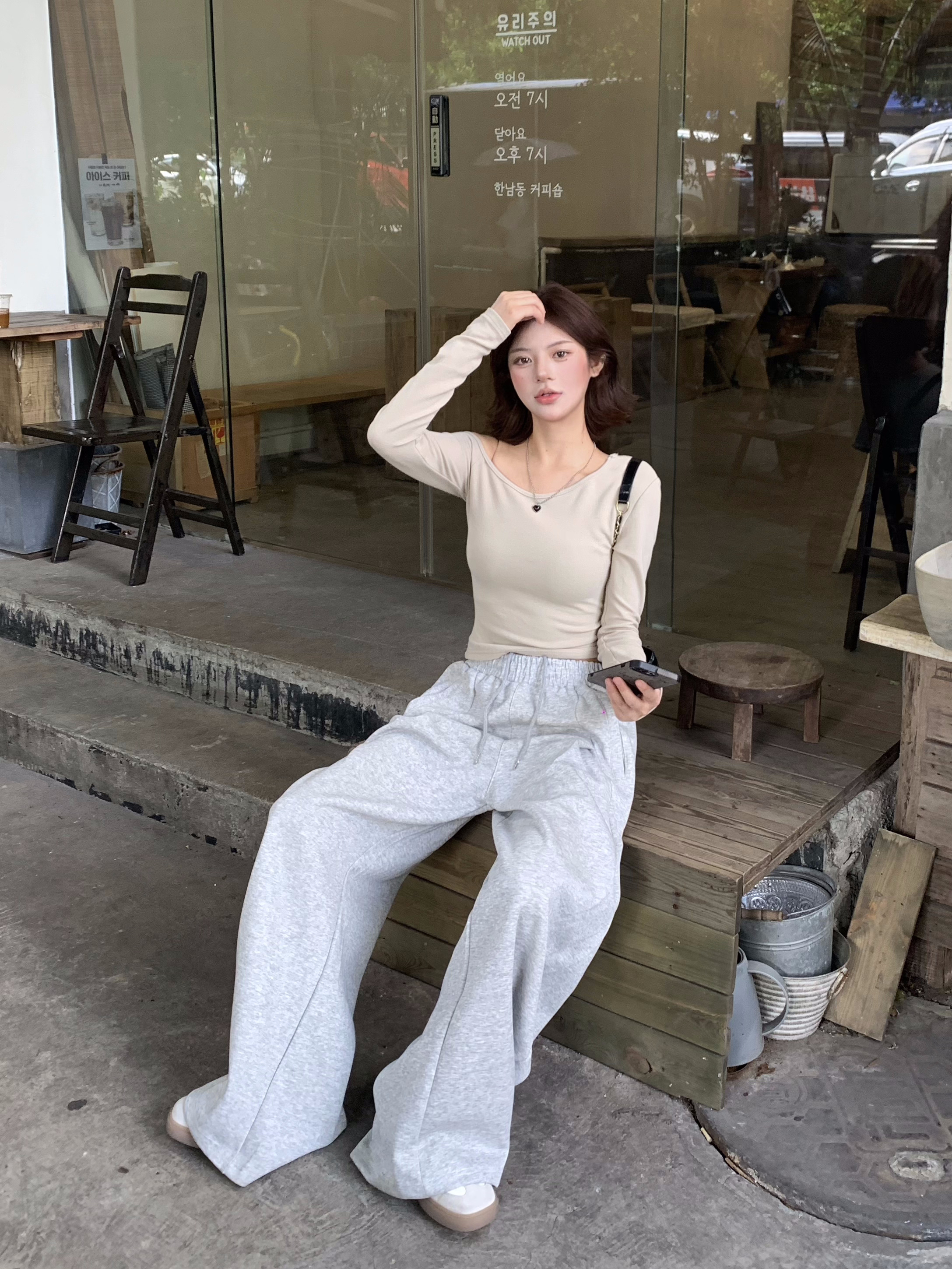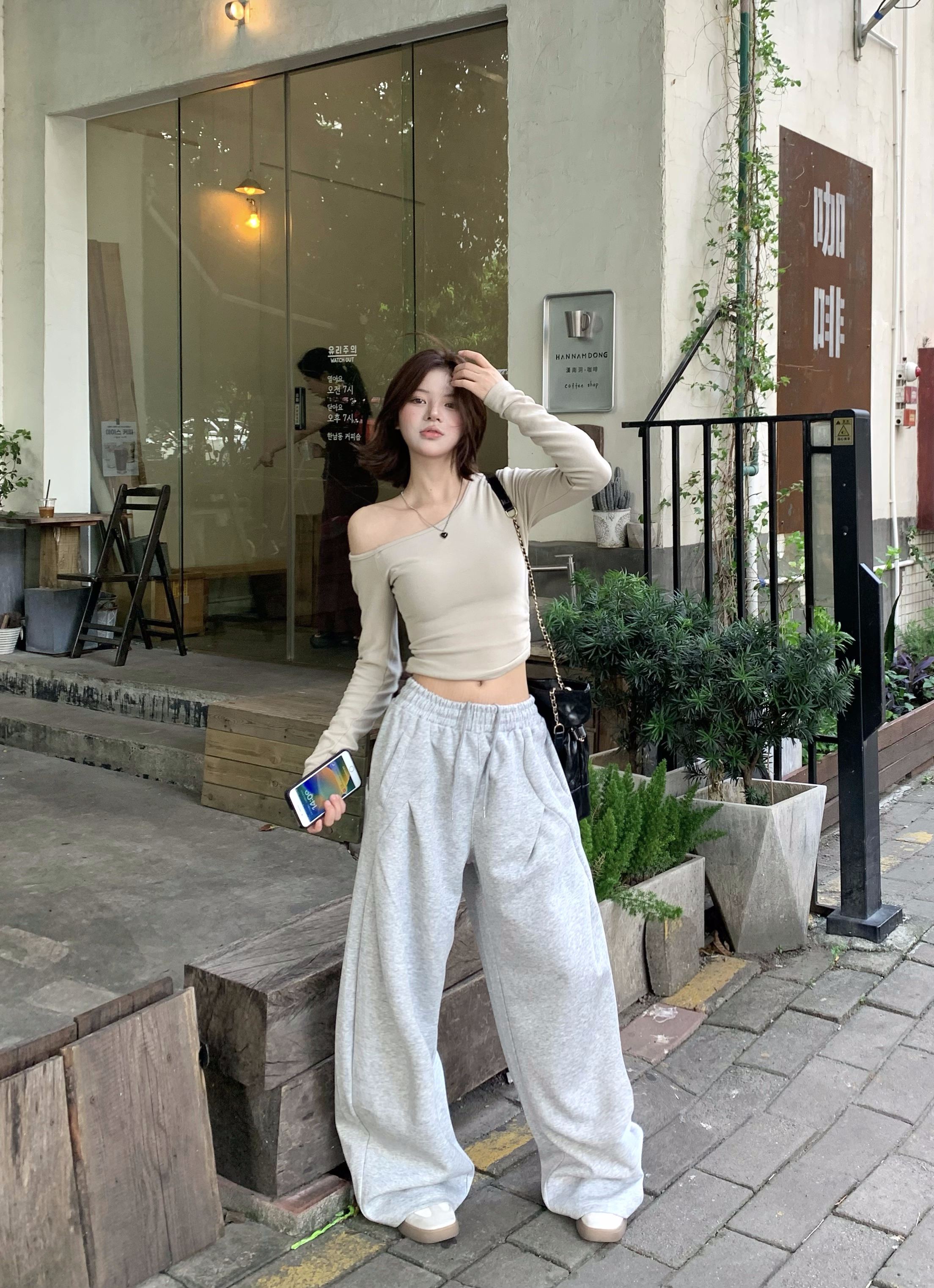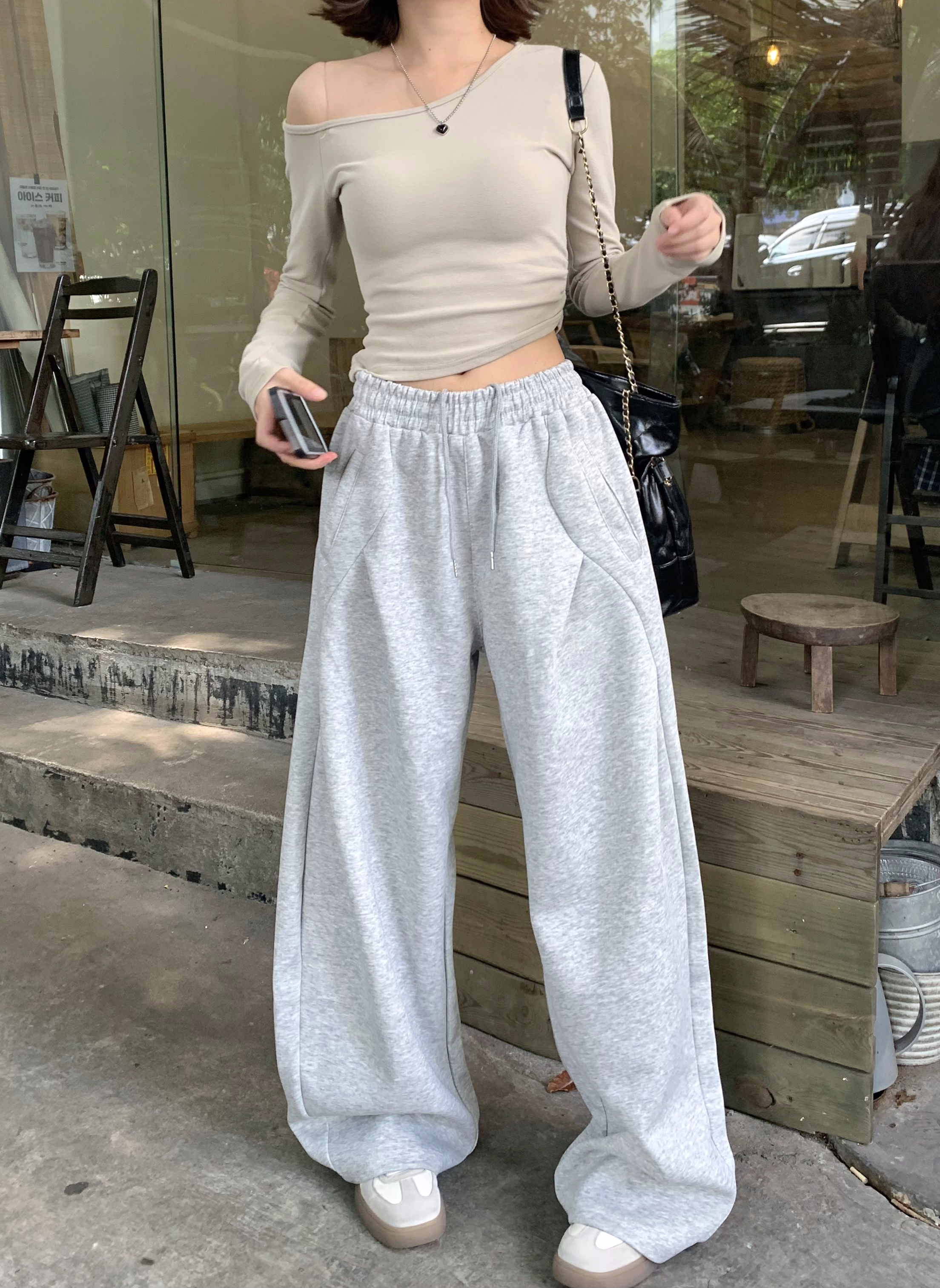 American Retro Gray Sweatpants for Women, New Loose Casual Versatile Straight-Leg Wide-Leg Pants, High-Waisted Slimming Floor-Length Pants