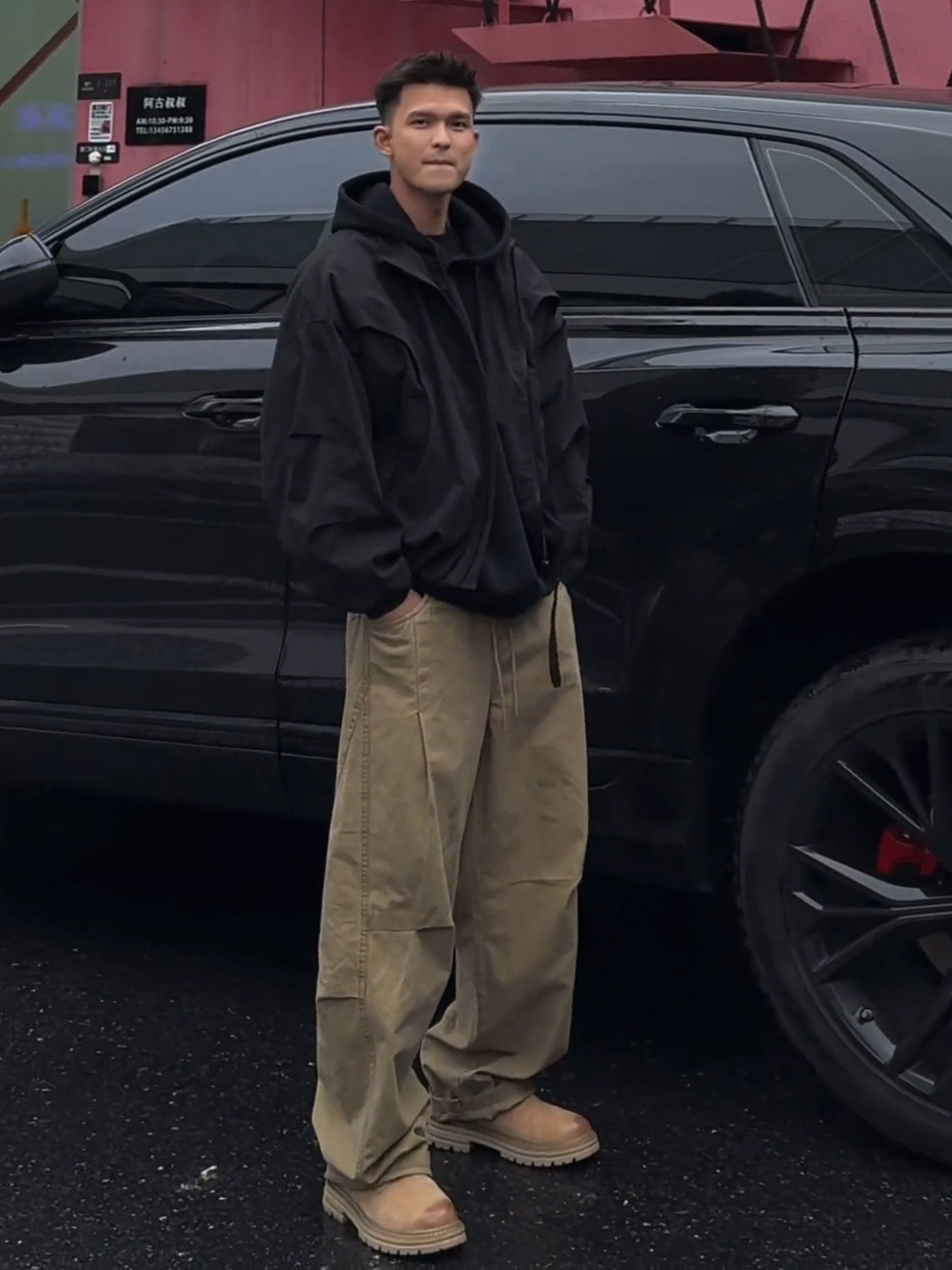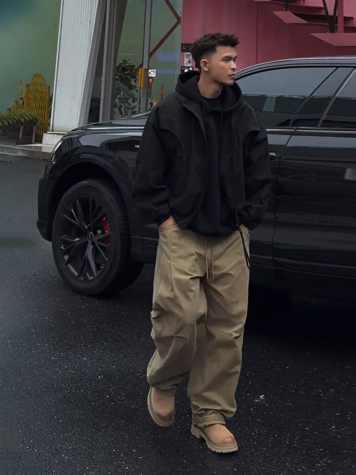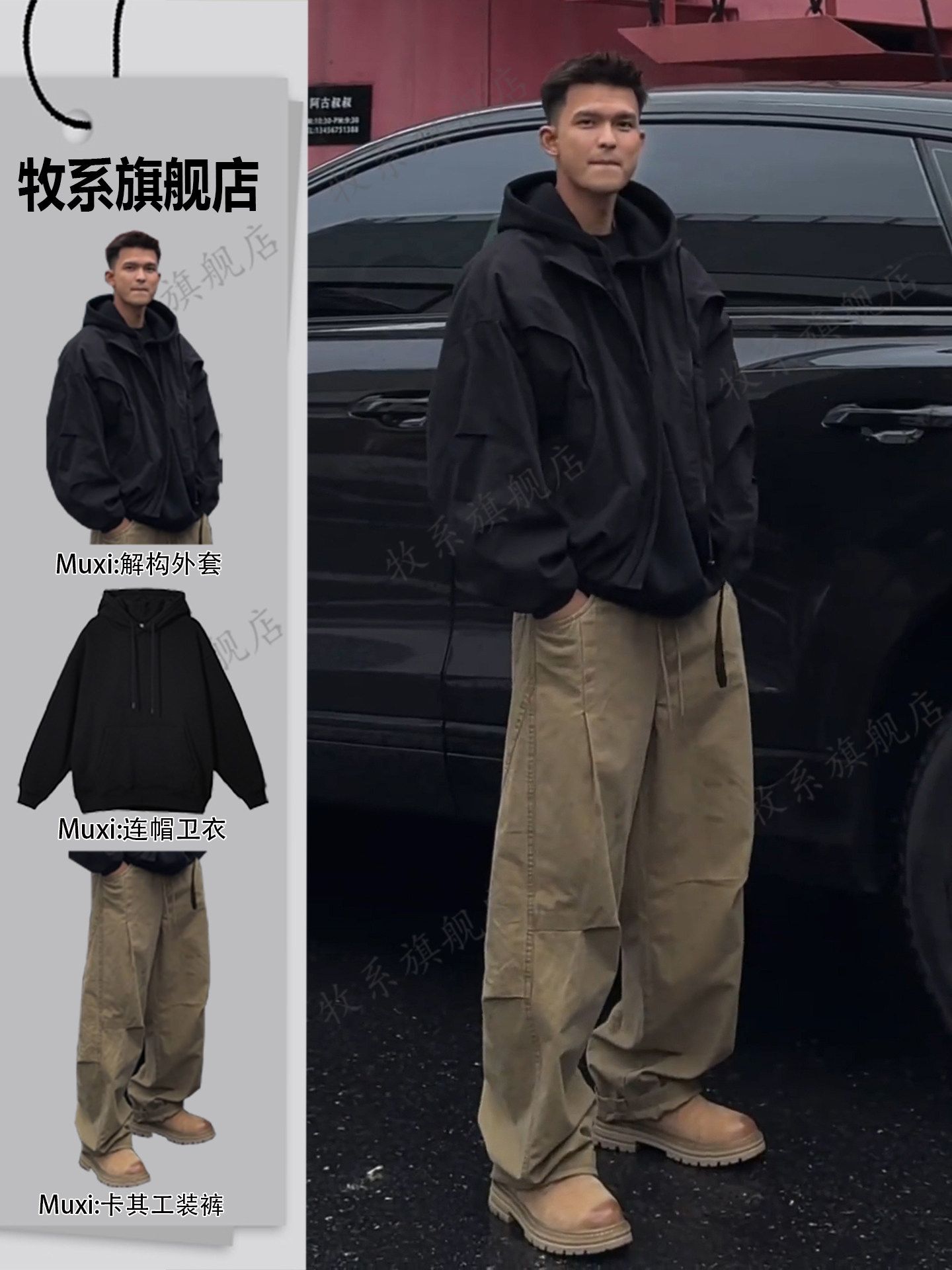Khaki Pleated Scimitar-Style Work Pants for Men, Spring Outfit, Wide-Leg Straight Casual Pants Men's Suit
