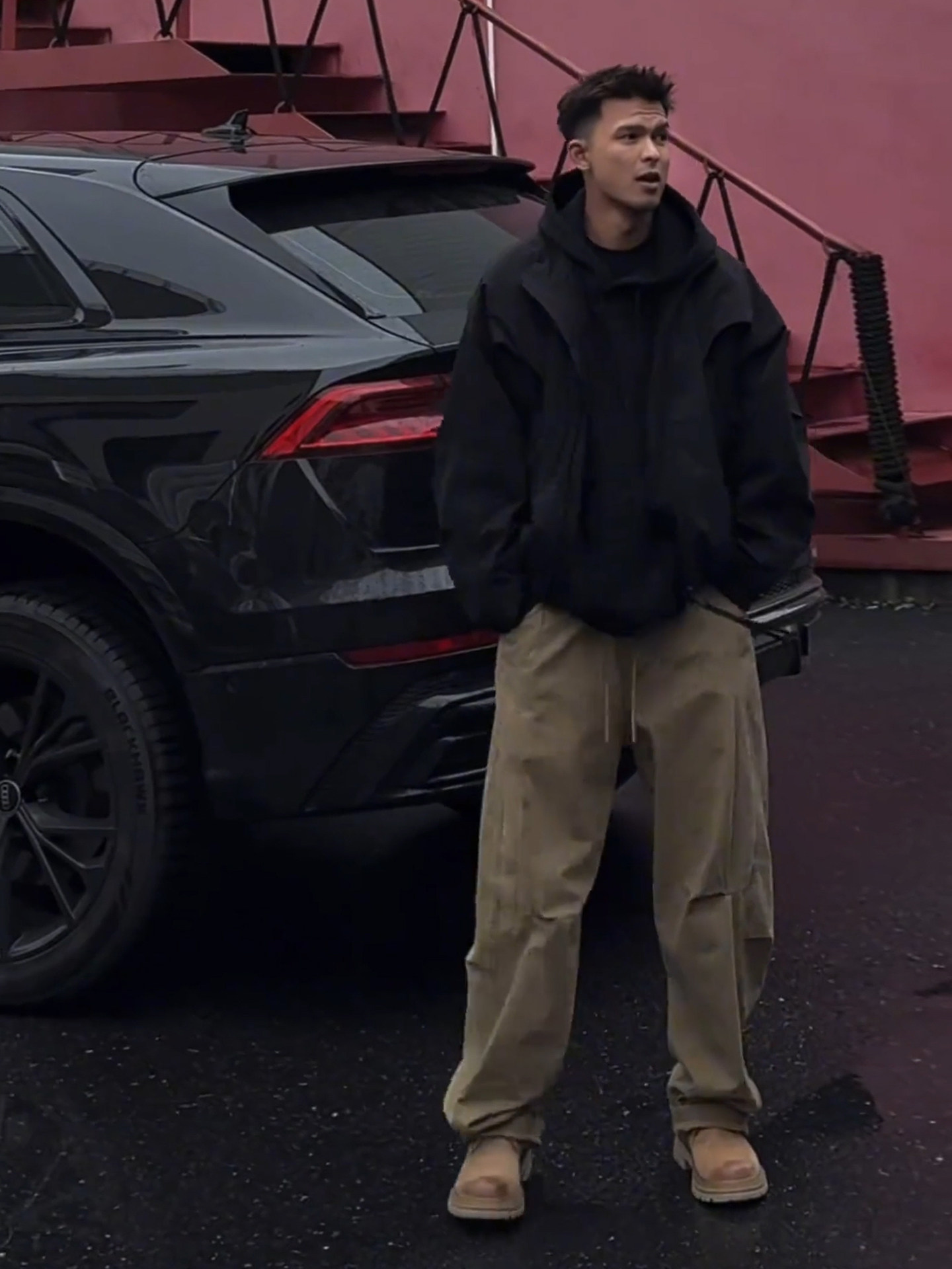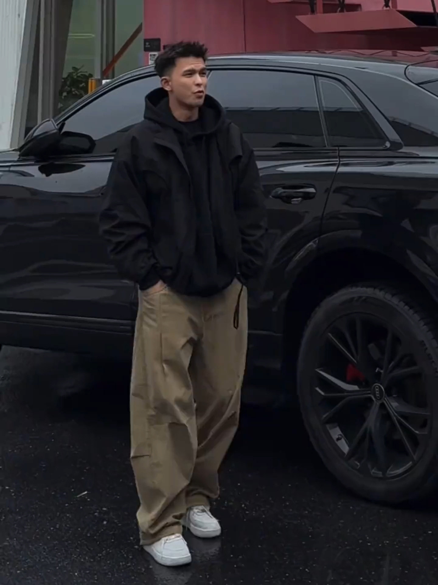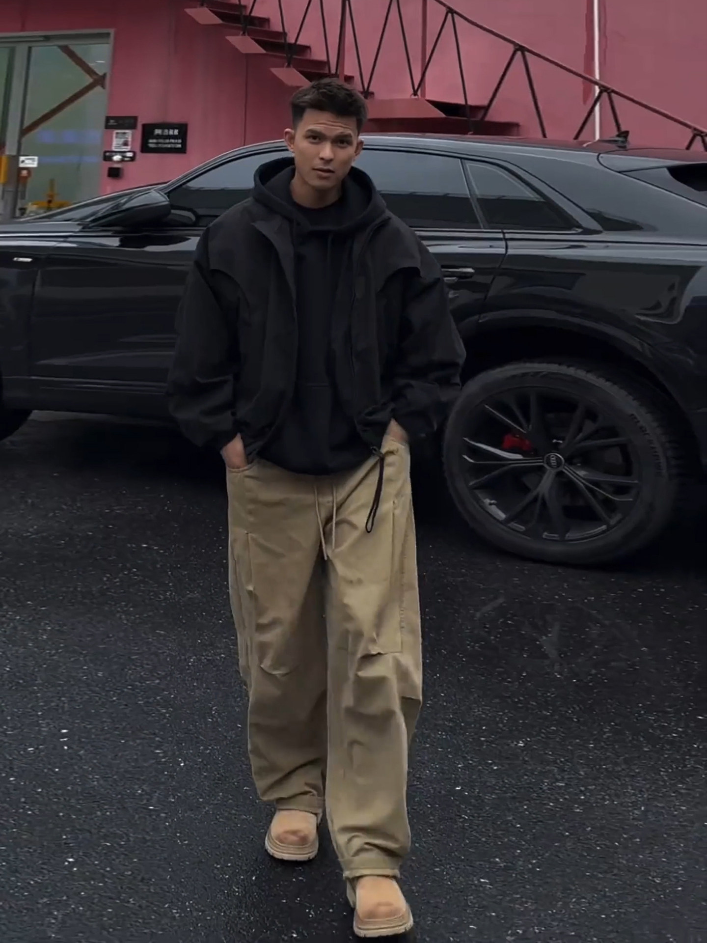 Khaki Pleated Scimitar-Style Work Pants for Men, Spring Outfit, Wide-Leg Straight Casual Pants Men's Suit