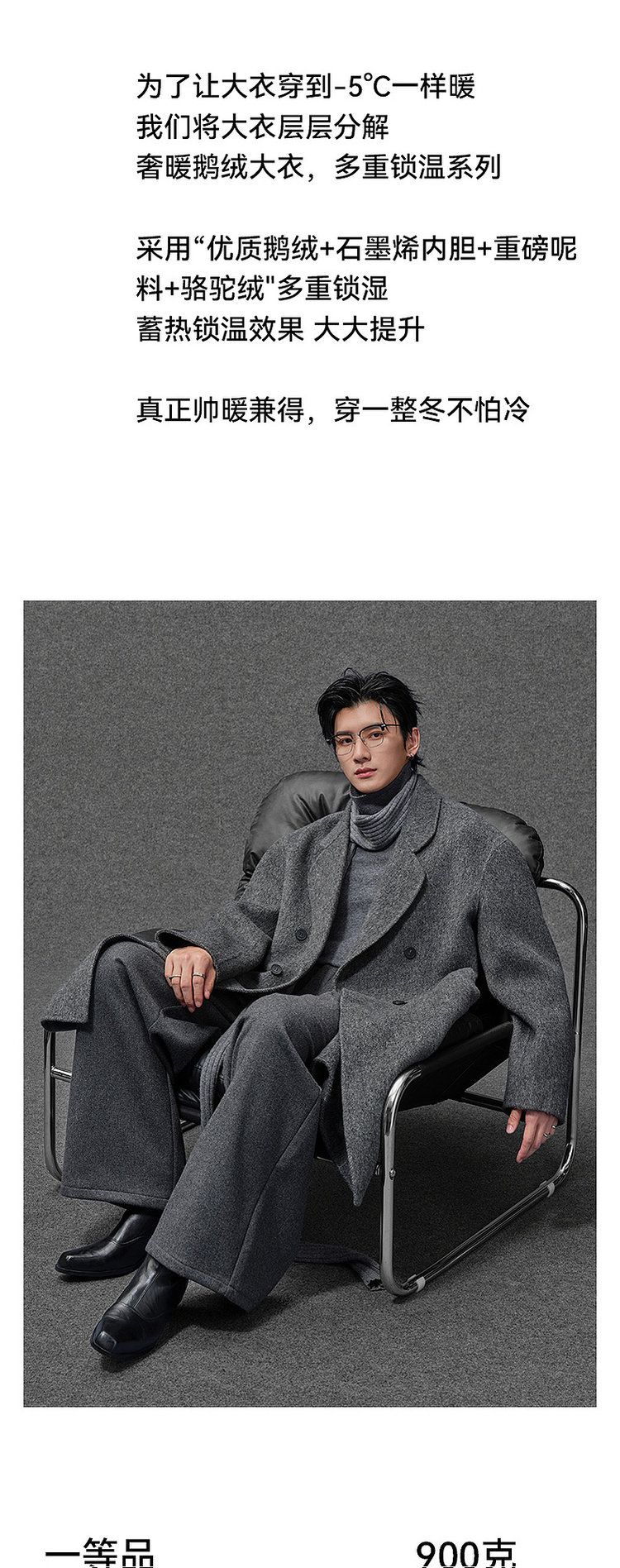 [Black Label Fourth Generation - Mid-Length Style] Camel Wool Graphene Goose down Liner Earl Zhuoer Wool Coat for Men