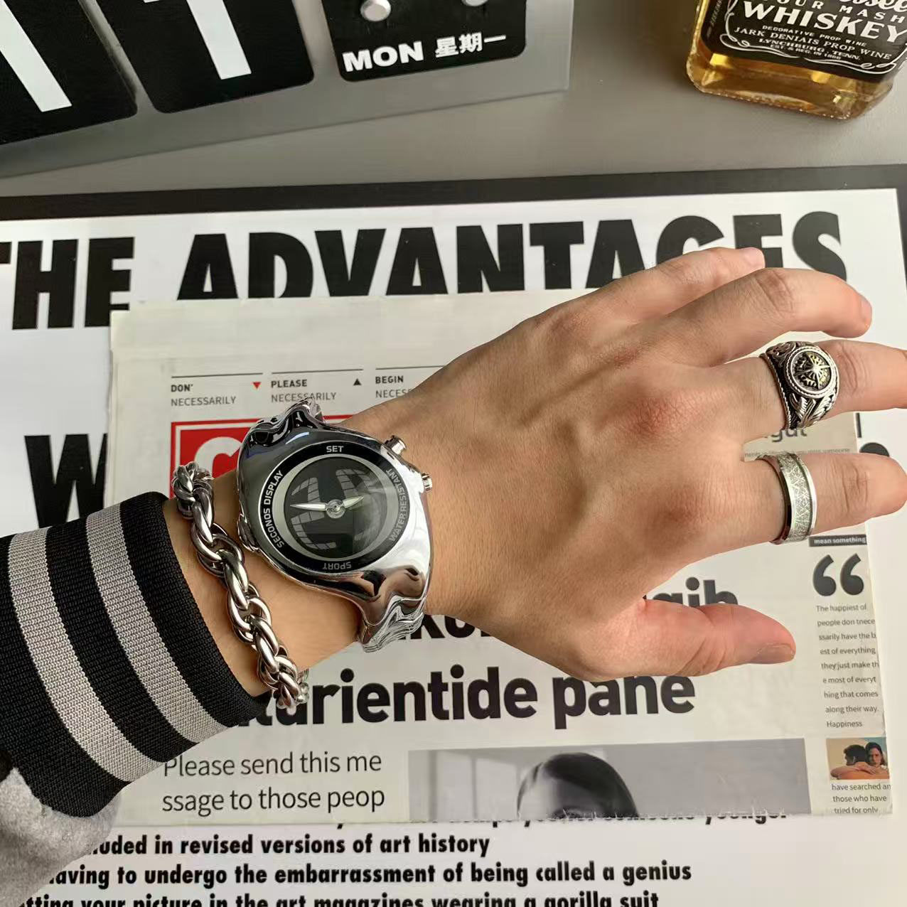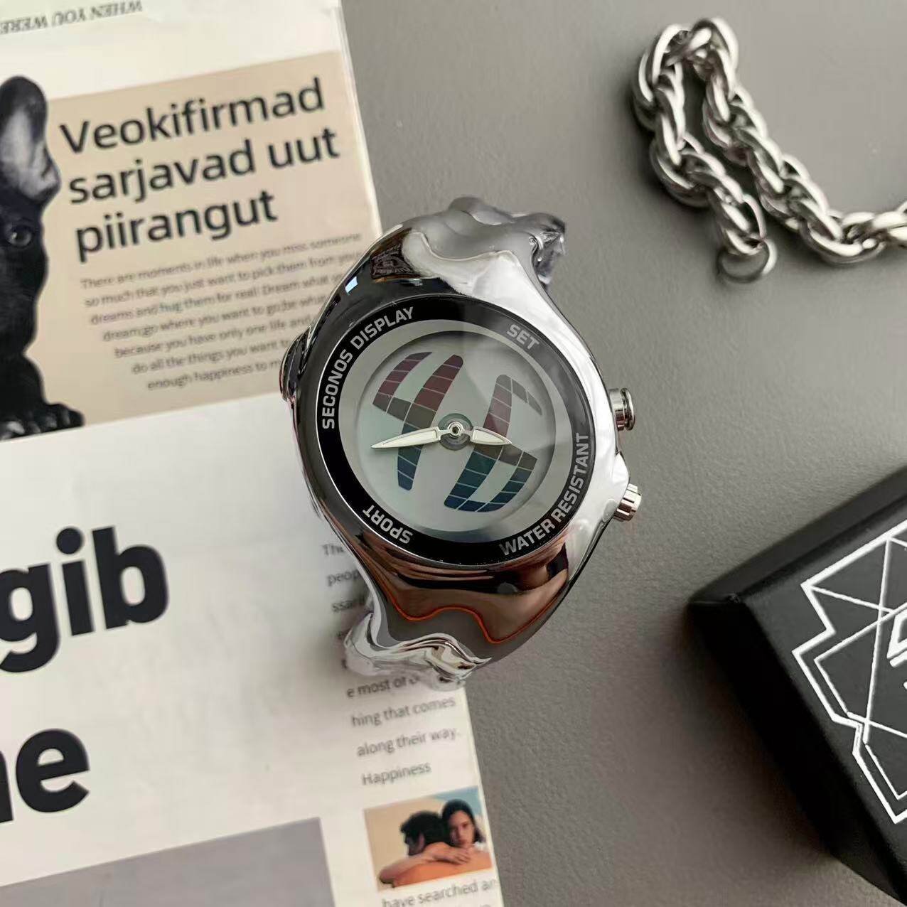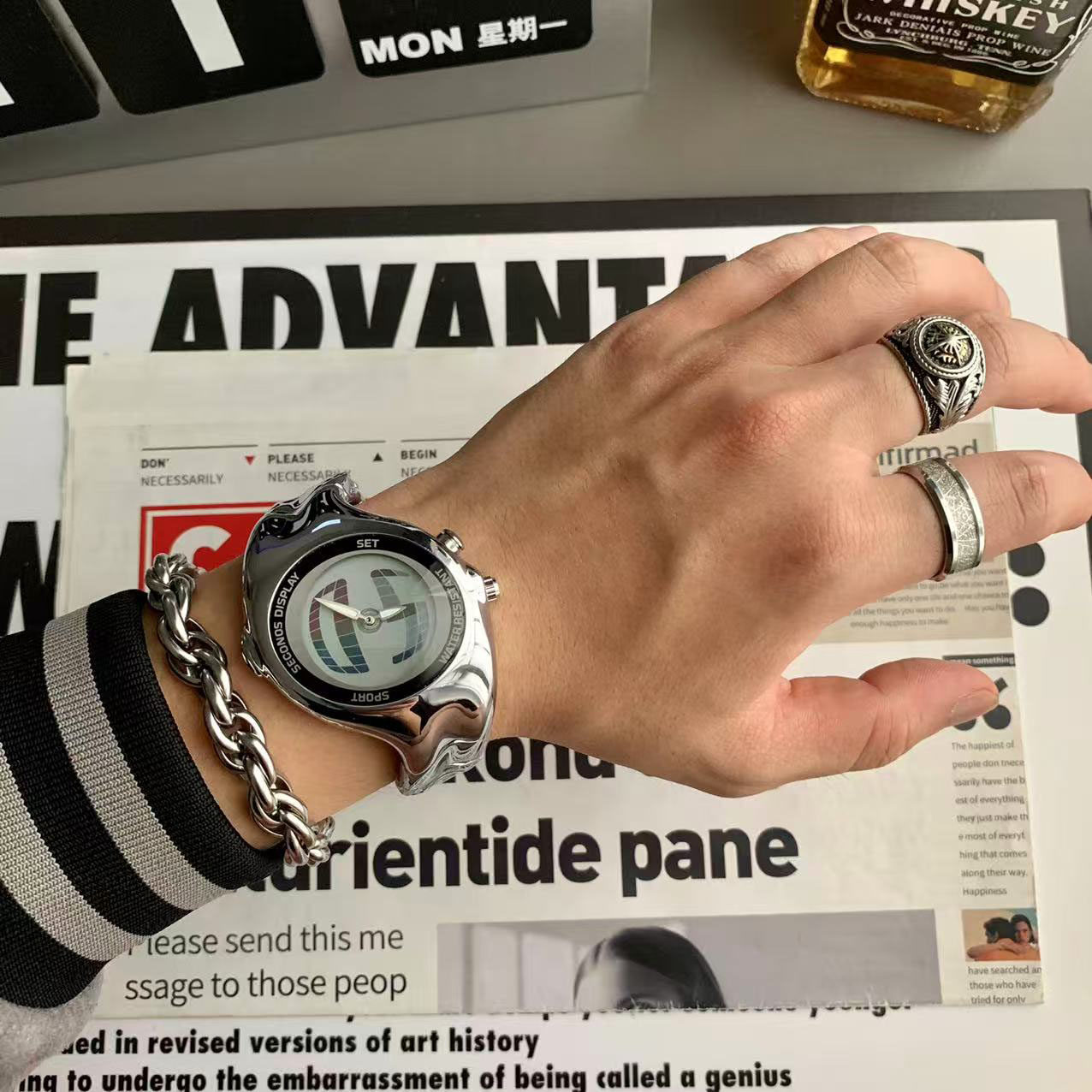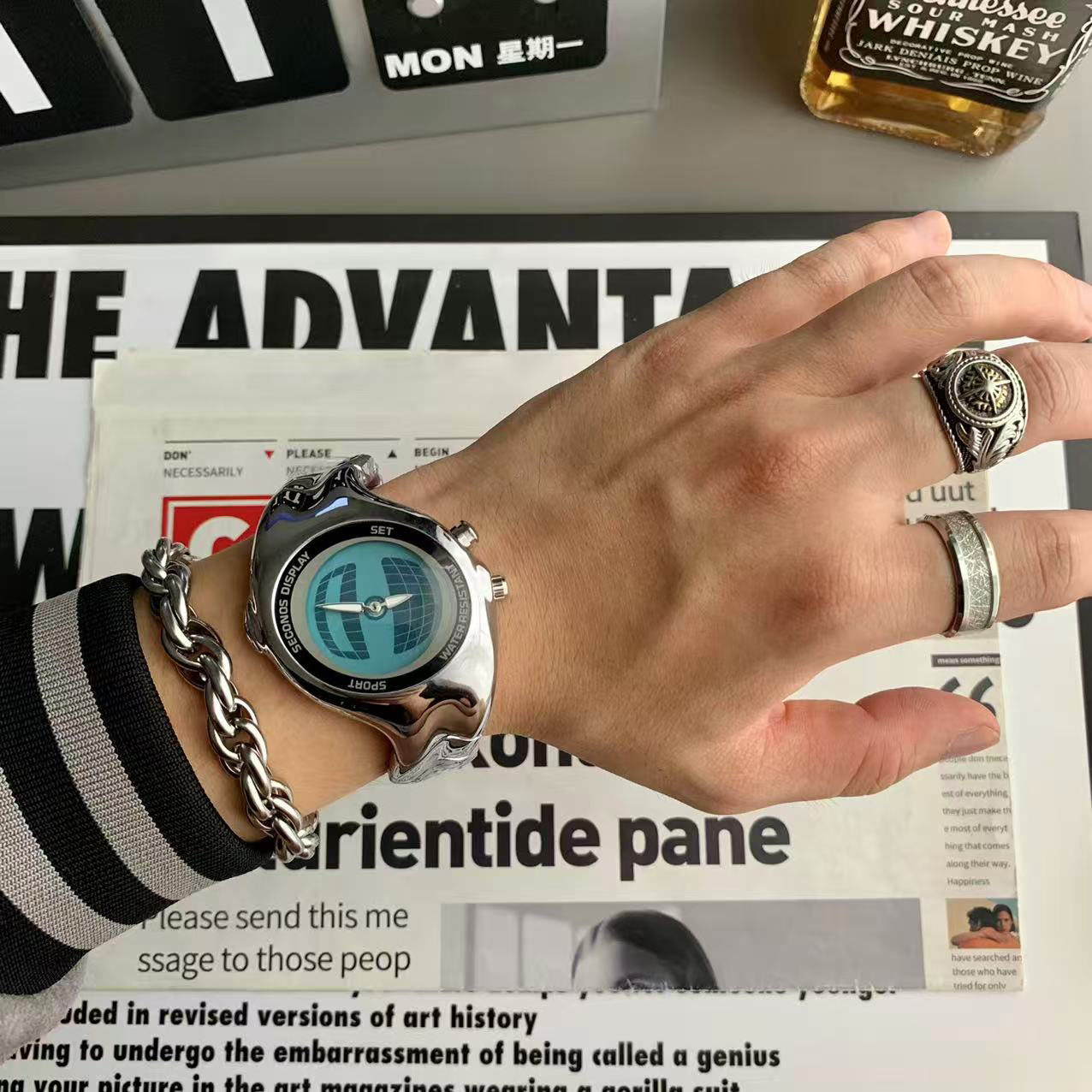 New Y2K Irregular Retro Dual-Display Watch for Men, Twisted Fashion Vintage Millennium High-End Digital Display Niche Women's Watch