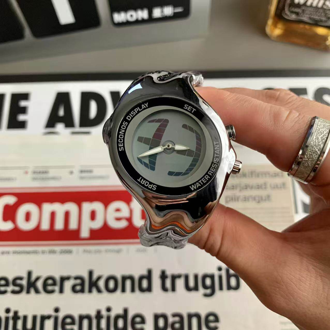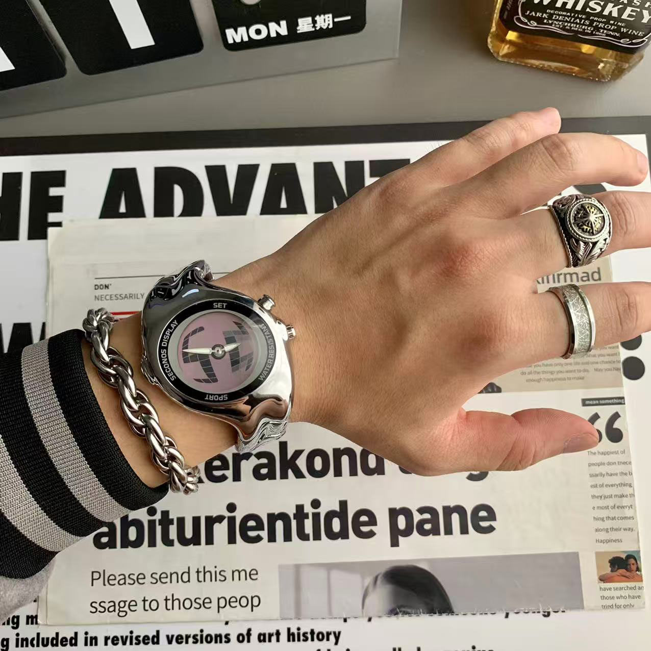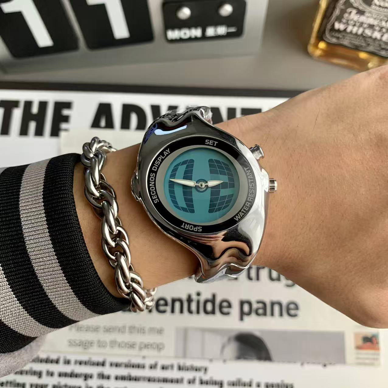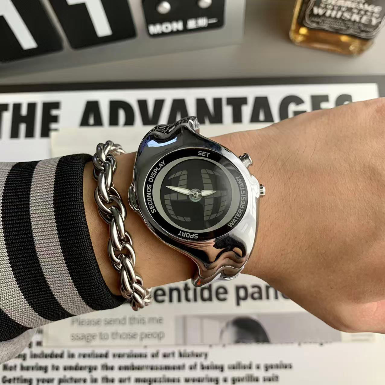 New Y2K Irregular Retro Dual-Display Watch for Men, Twisted Fashion Vintage Millennium High-End Digital Display Niche Women's Watch