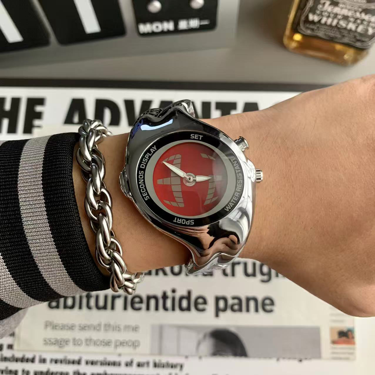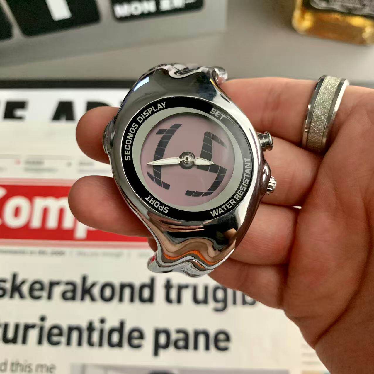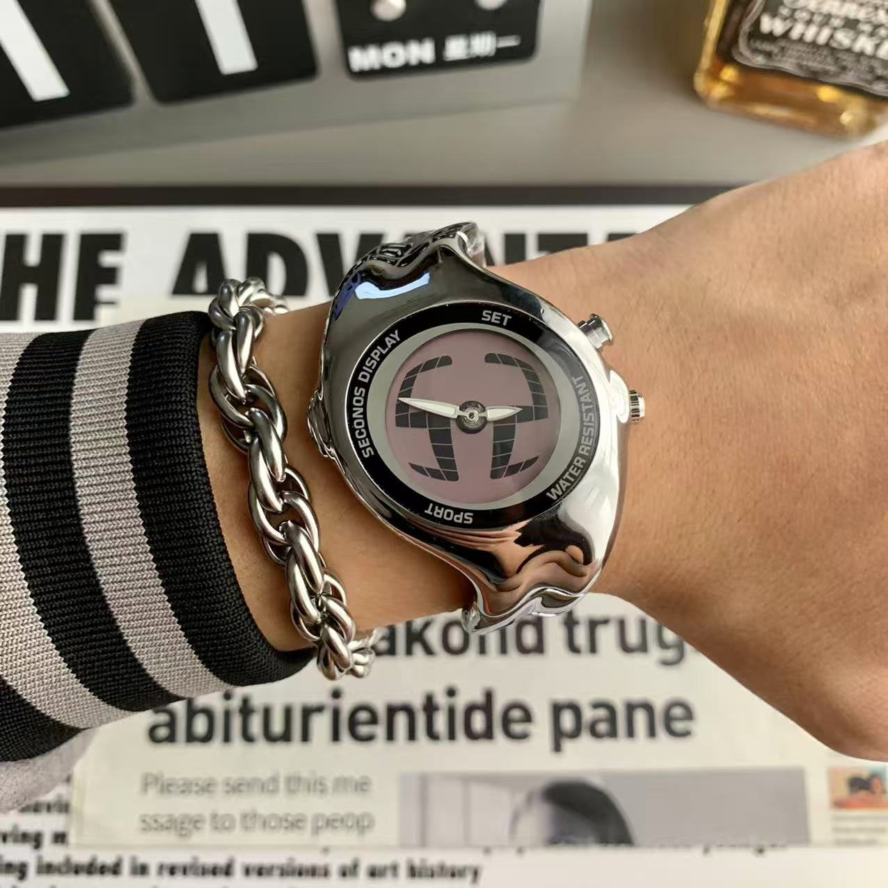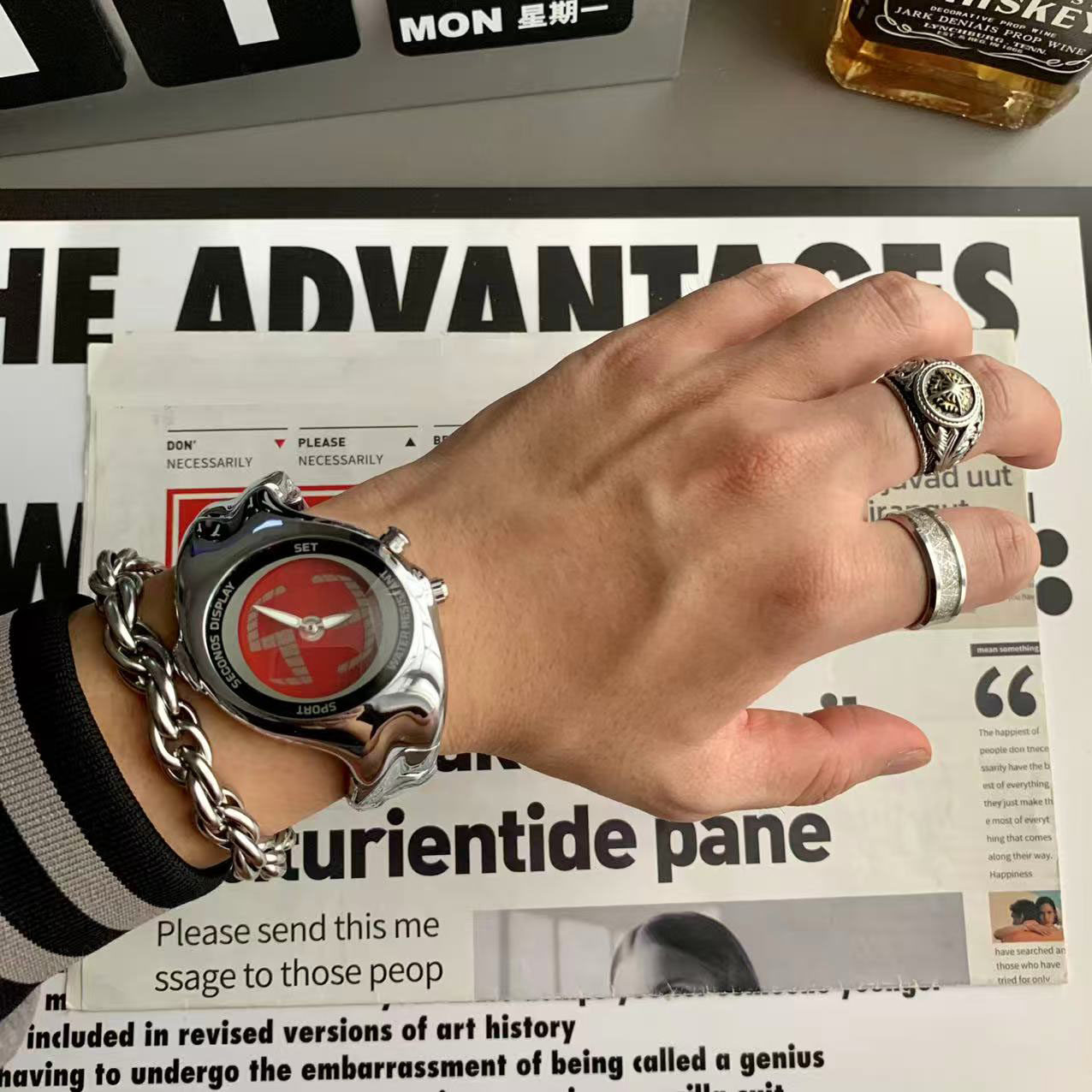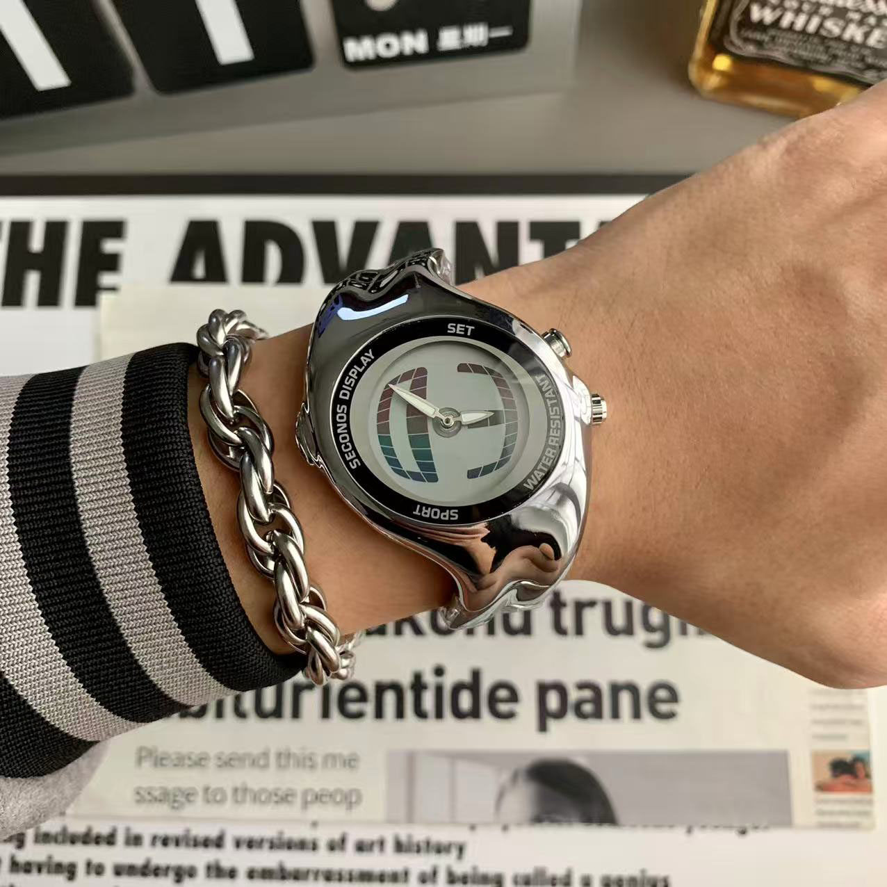 New Y2K Irregular Retro Dual-Display Watch for Men, Twisted Fashion Vintage Millennium High-End Digital Display Niche Women's Watch