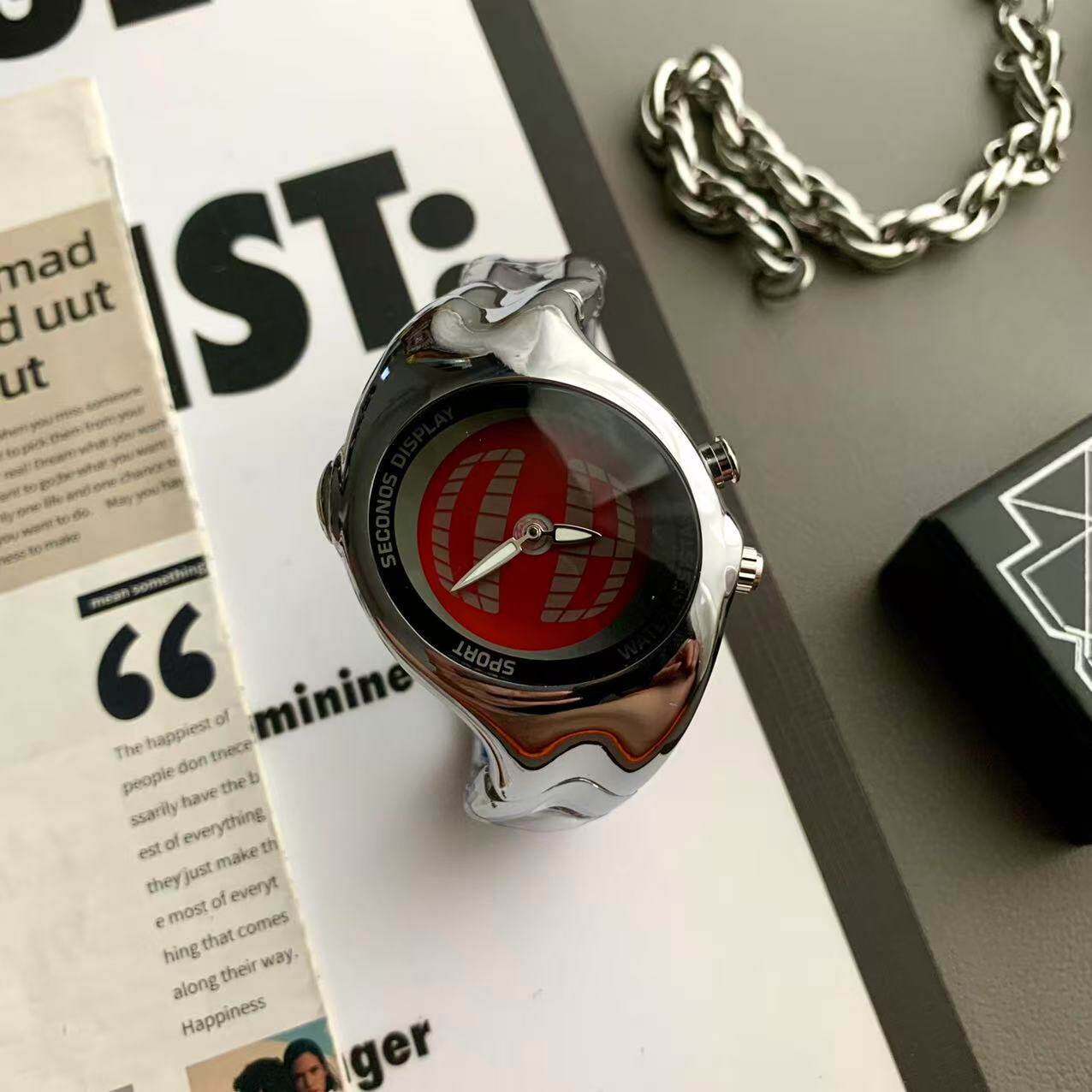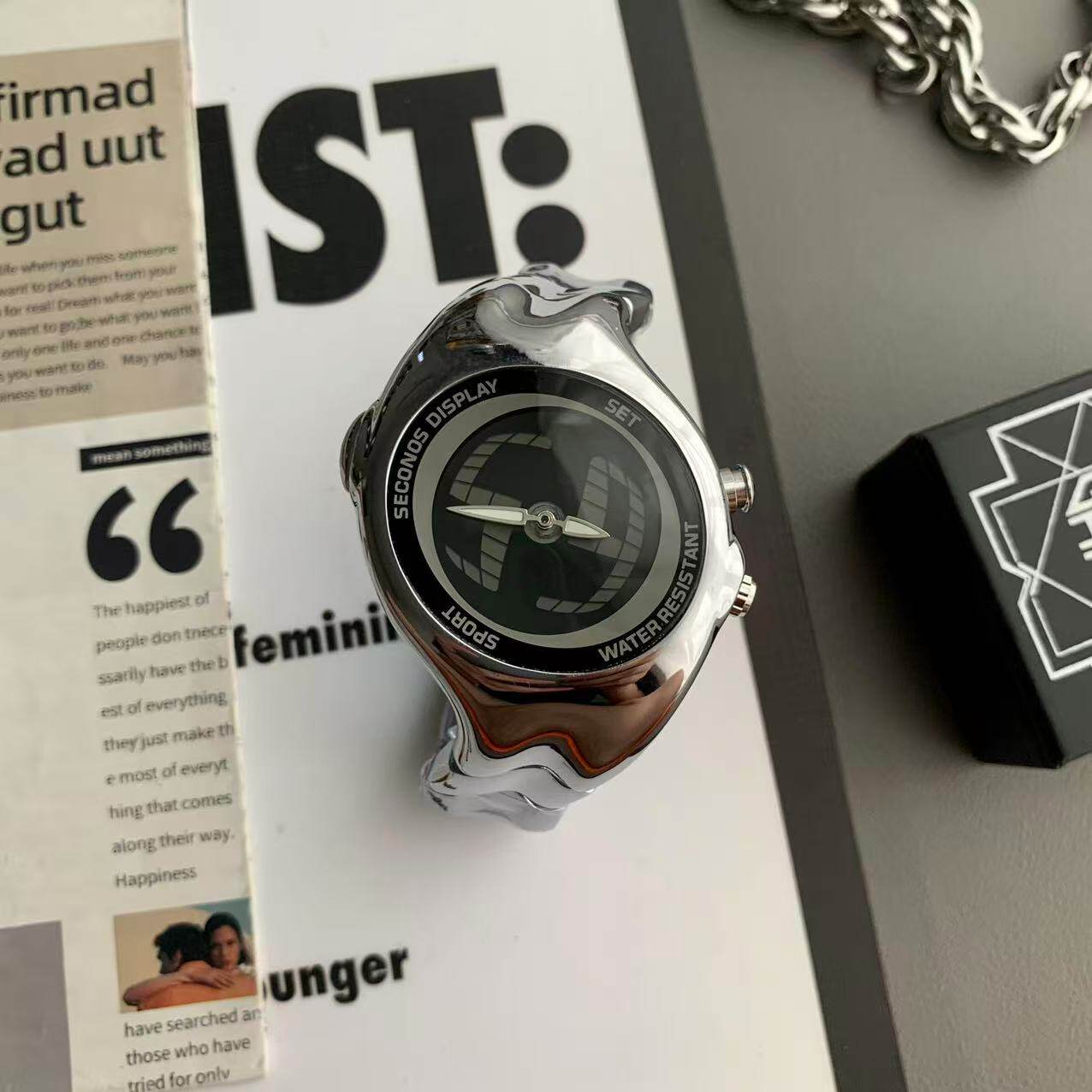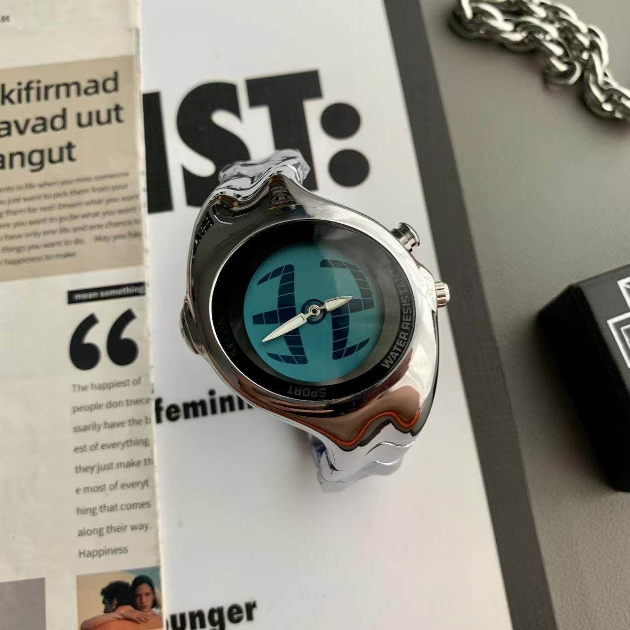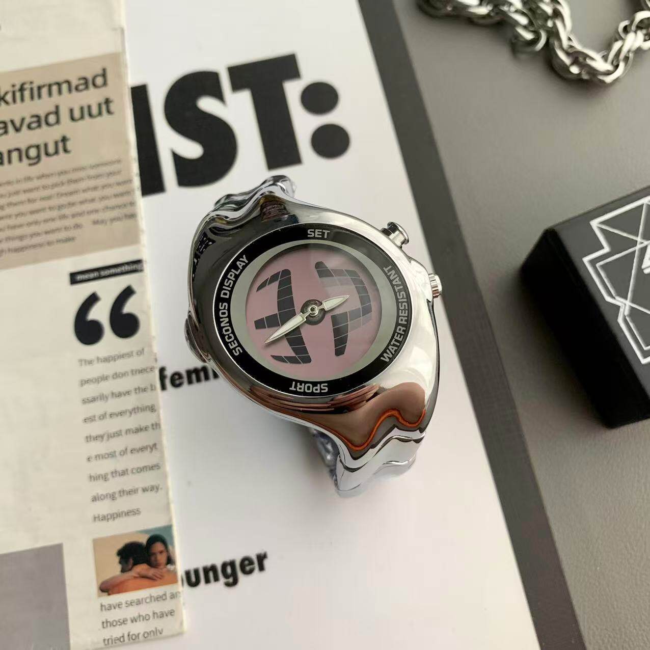 New Y2K Irregular Retro Dual-Display Watch for Men, Twisted Fashion Vintage Millennium High-End Digital Display Niche Women's Watch