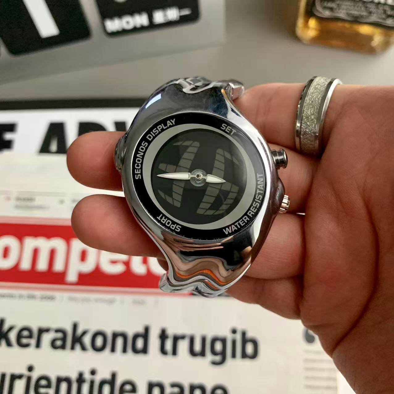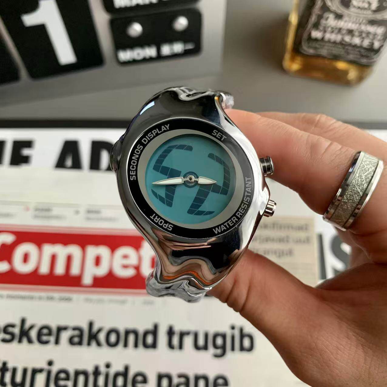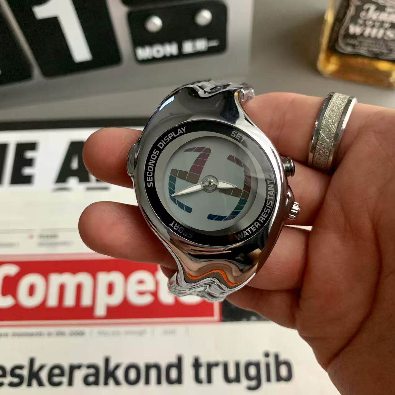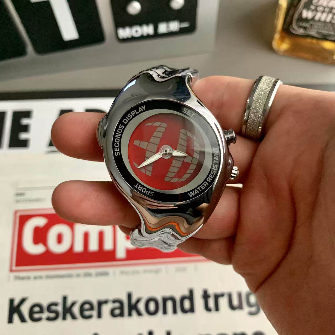 New Y2K Irregular Retro Dual-Display Watch for Men, Twisted Fashion Vintage Millennium High-End Digital Display Niche Women's Watch