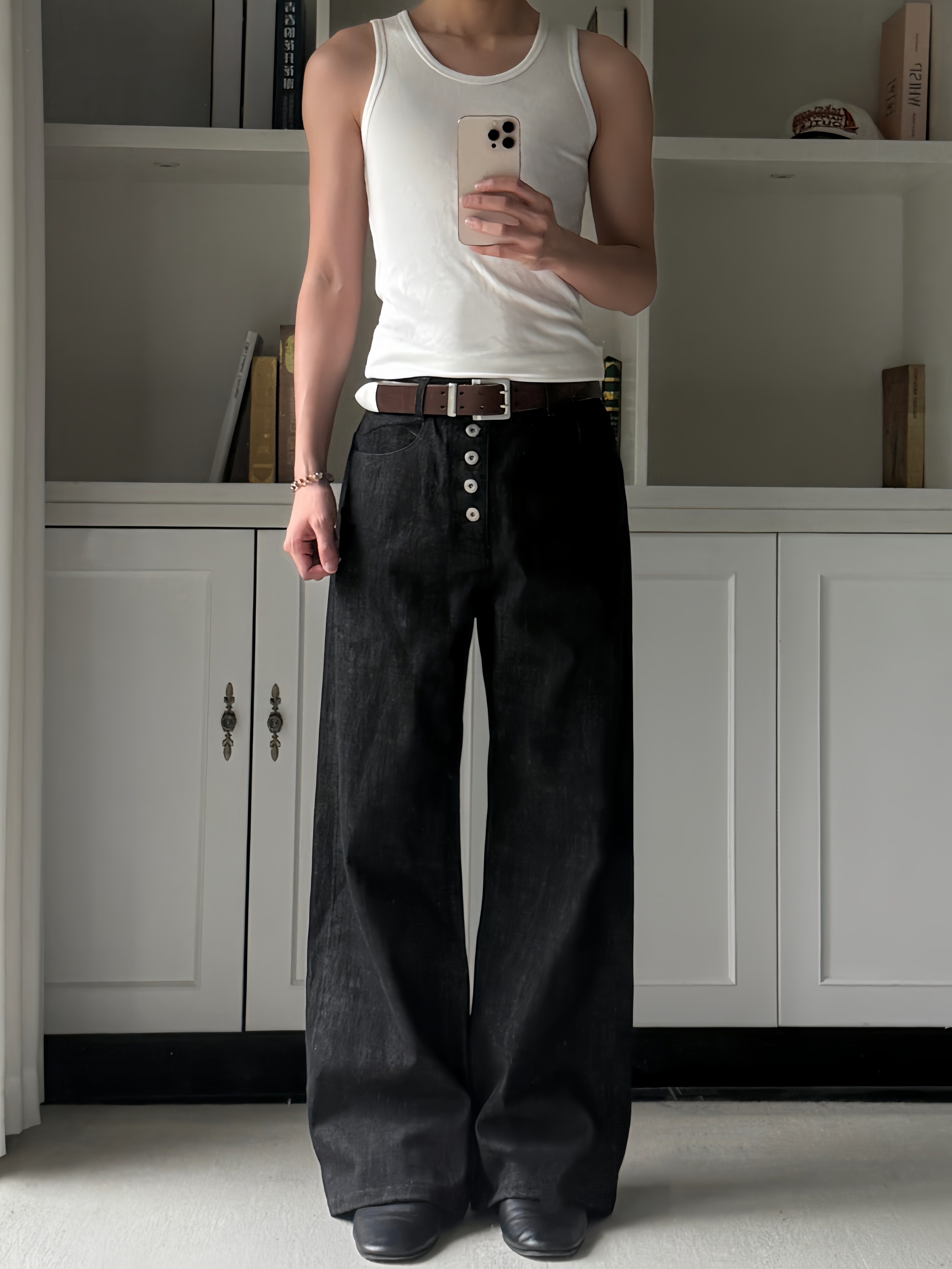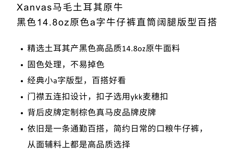 Xanvas Horsehair Turkish Raw Cowhide Black 14.8oz Natural Color A-Line Jeans Straight Wide-Leg Versatile