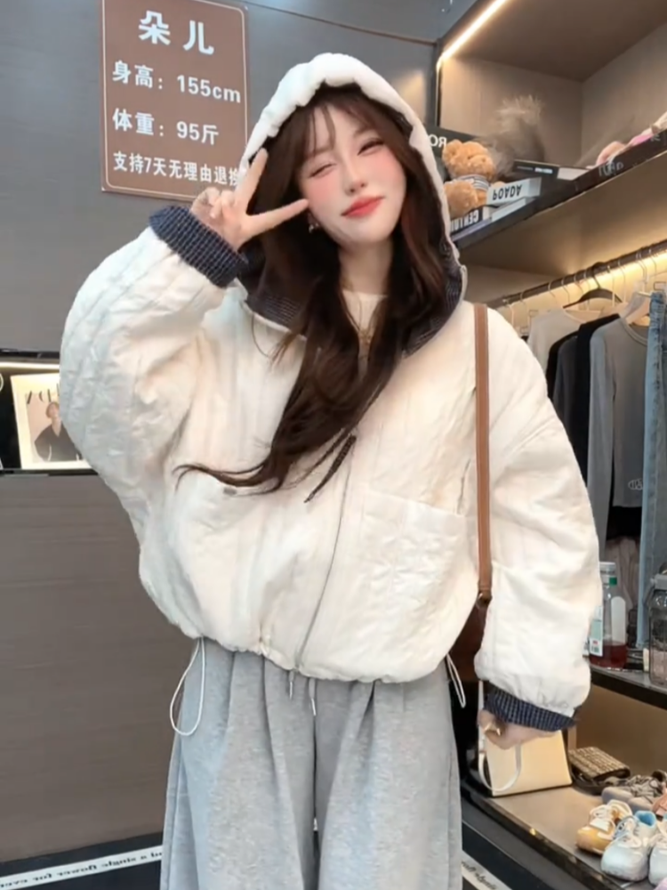 European Goods 2025 Autumn and Winter Hooded Plaid Patchwork Quilted Cotton Jacket for Women, New Fashion Versatile Casual Cotton Coat