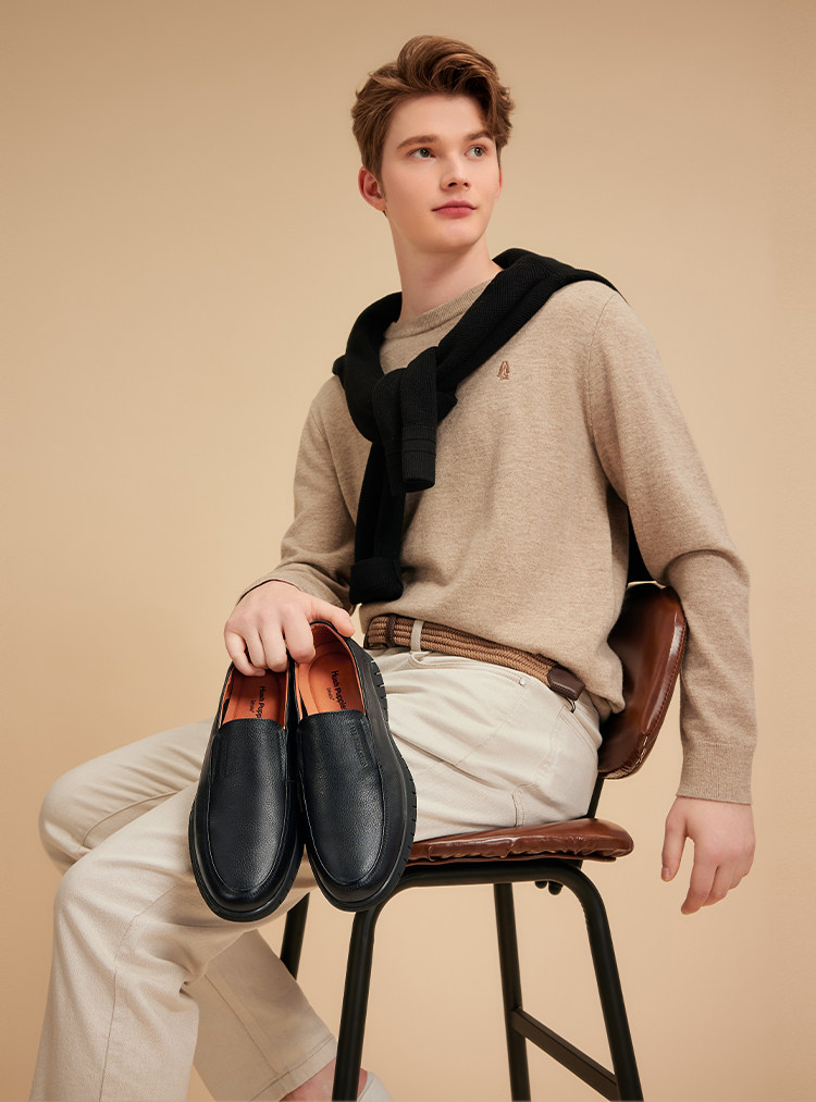 Hush Puppies Casual Leather Shoes, Spring and Autumn Style, Business Formal Genuine Leather Men's Shoes, Classic Comfortable Slip-On Loafers