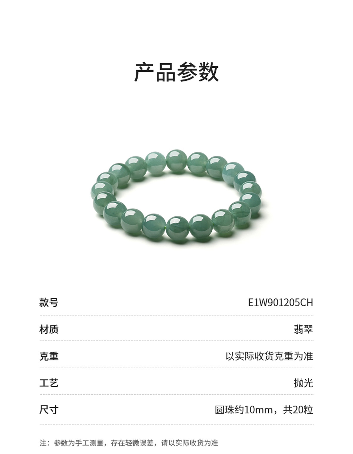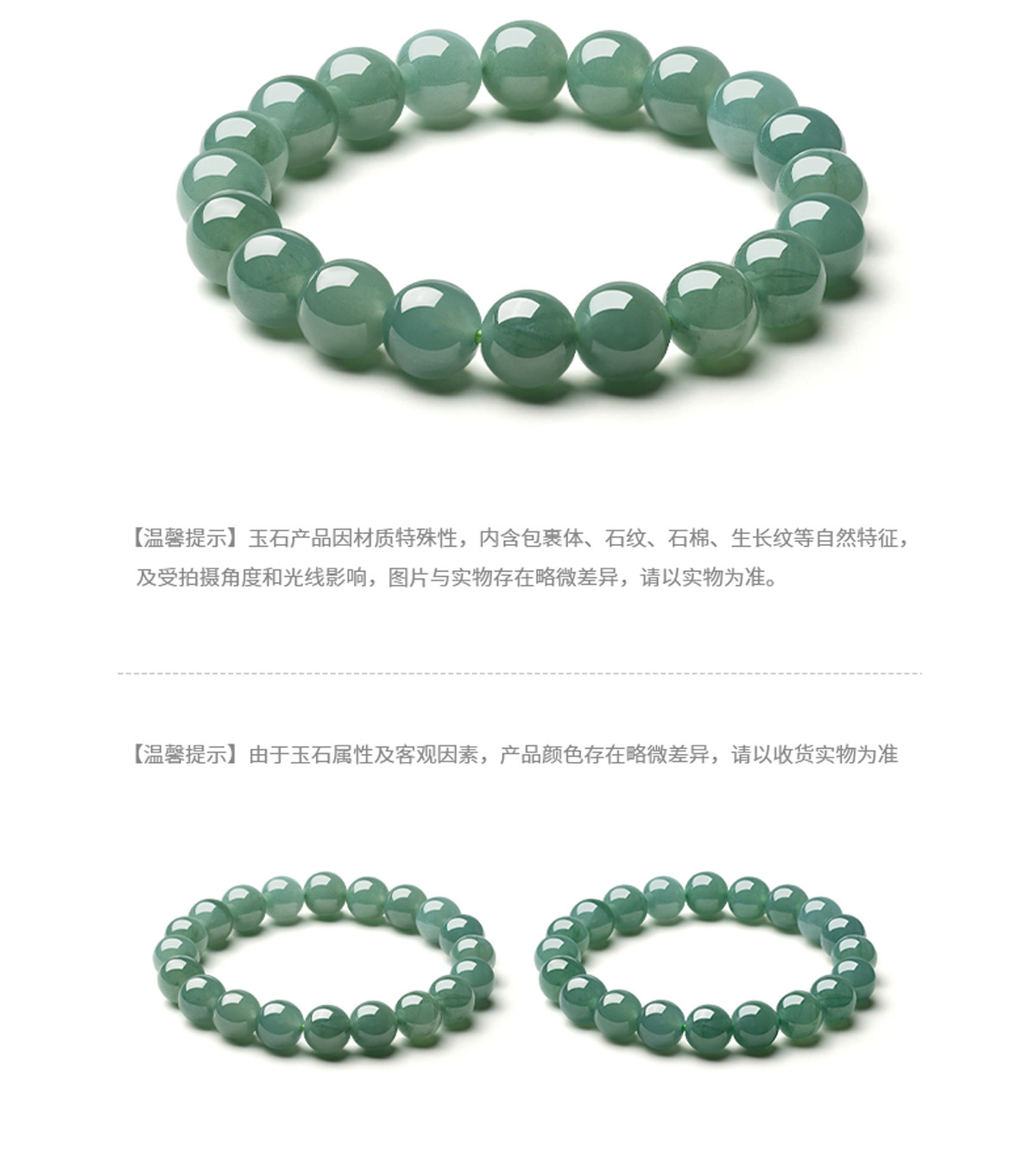 Zhou Taisheng New Chinese Style Jade Bead Bracelet for Women, Natural Genuine Ice Jade Bracelet, New Year Gift for Girlfriend